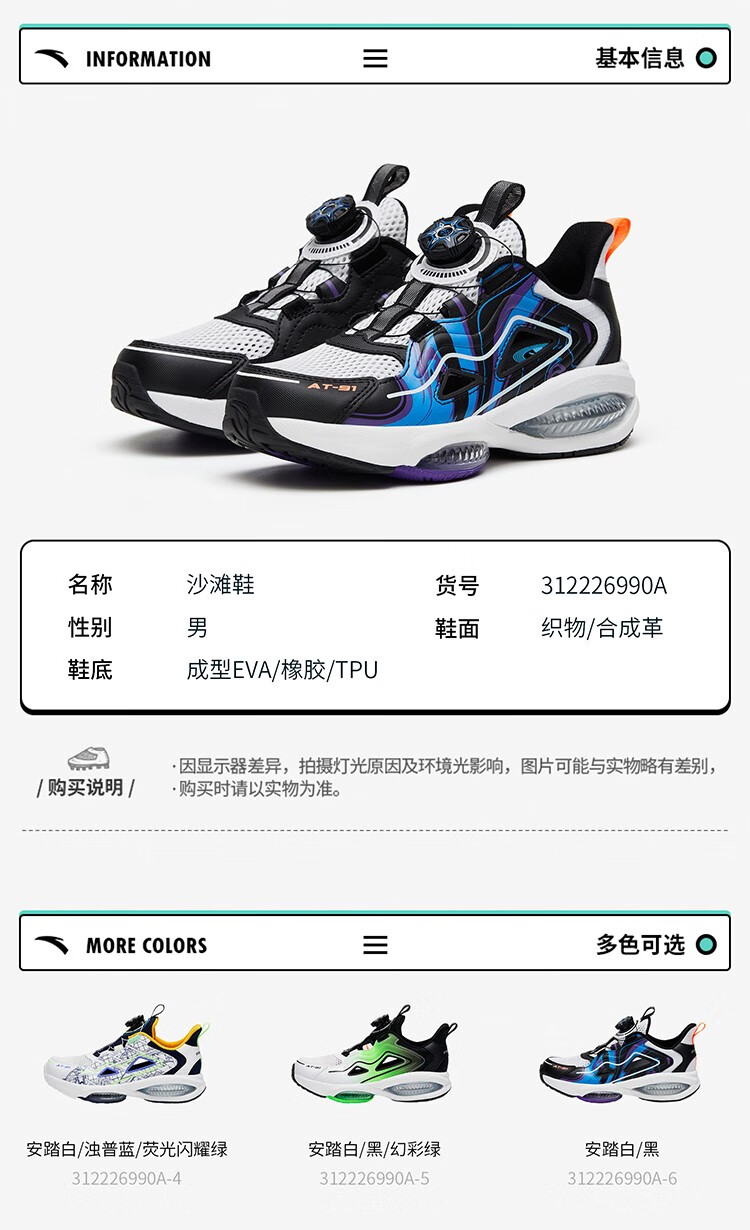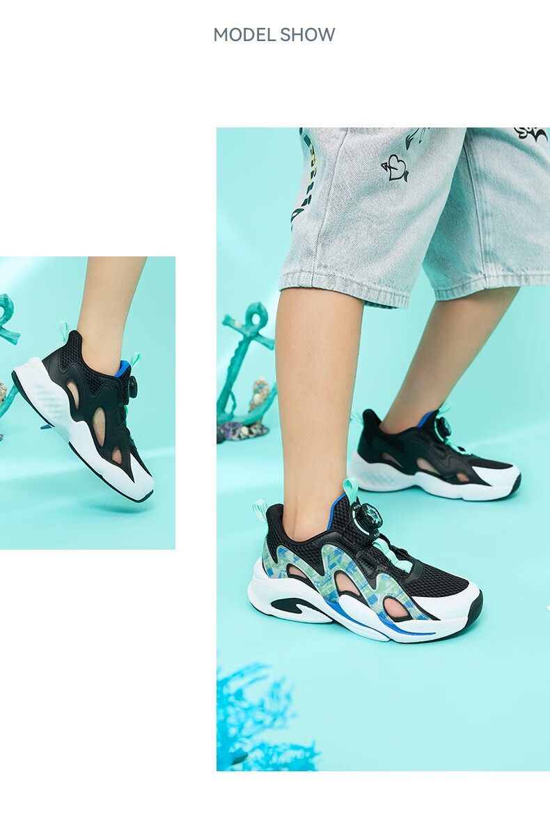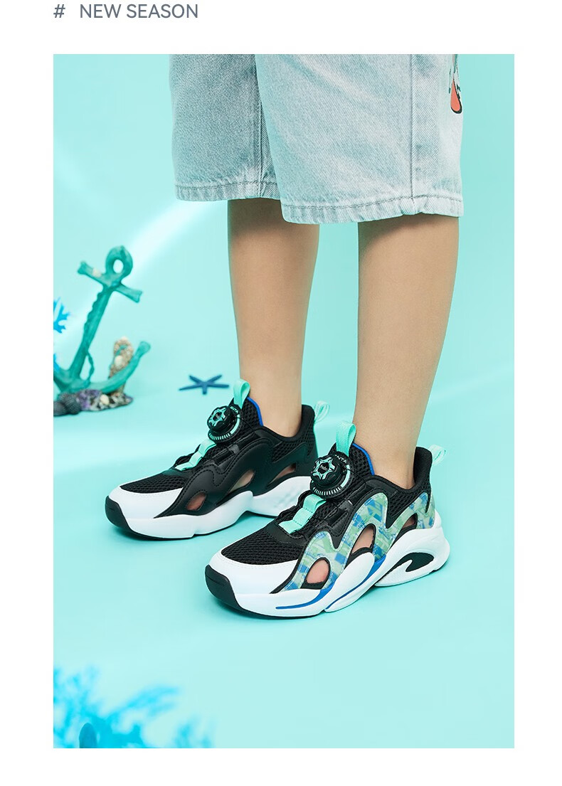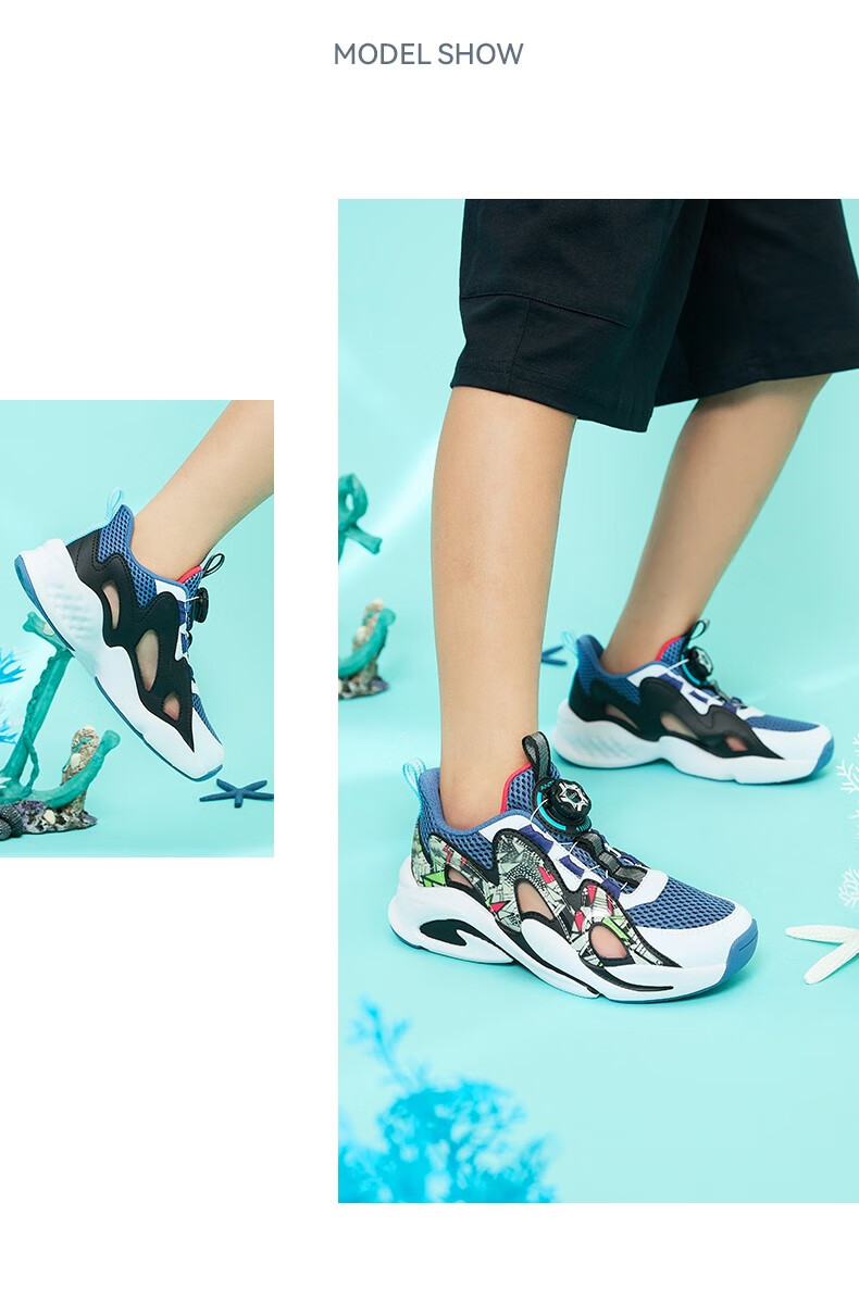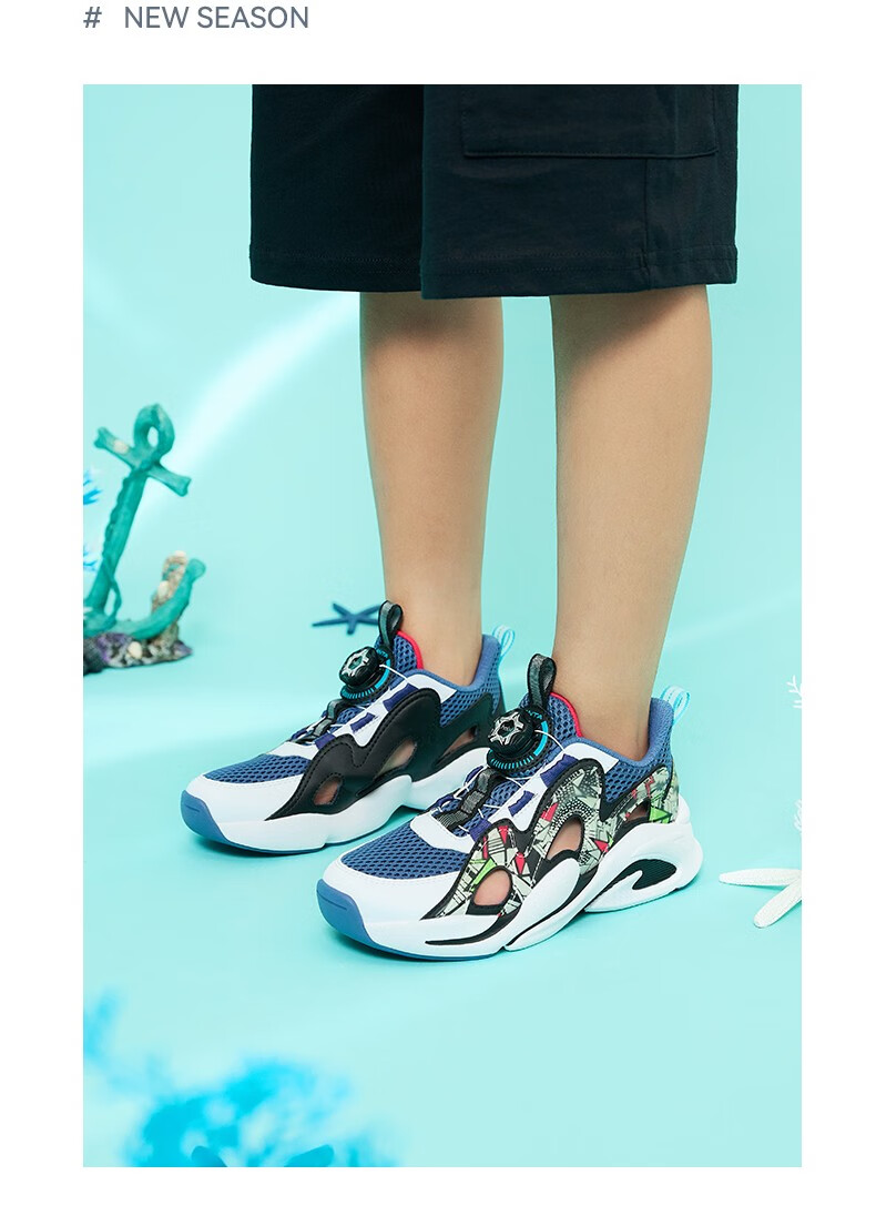 ANTA Children's Sandals Boys' Shoes 2025 Summer Big Children 6-16 Years Old Shopping Mall Same Style Overbearing Frame Shoes Beach Sandals Ice Feel Black/Anta White/Medium Blue-1 35/22cm