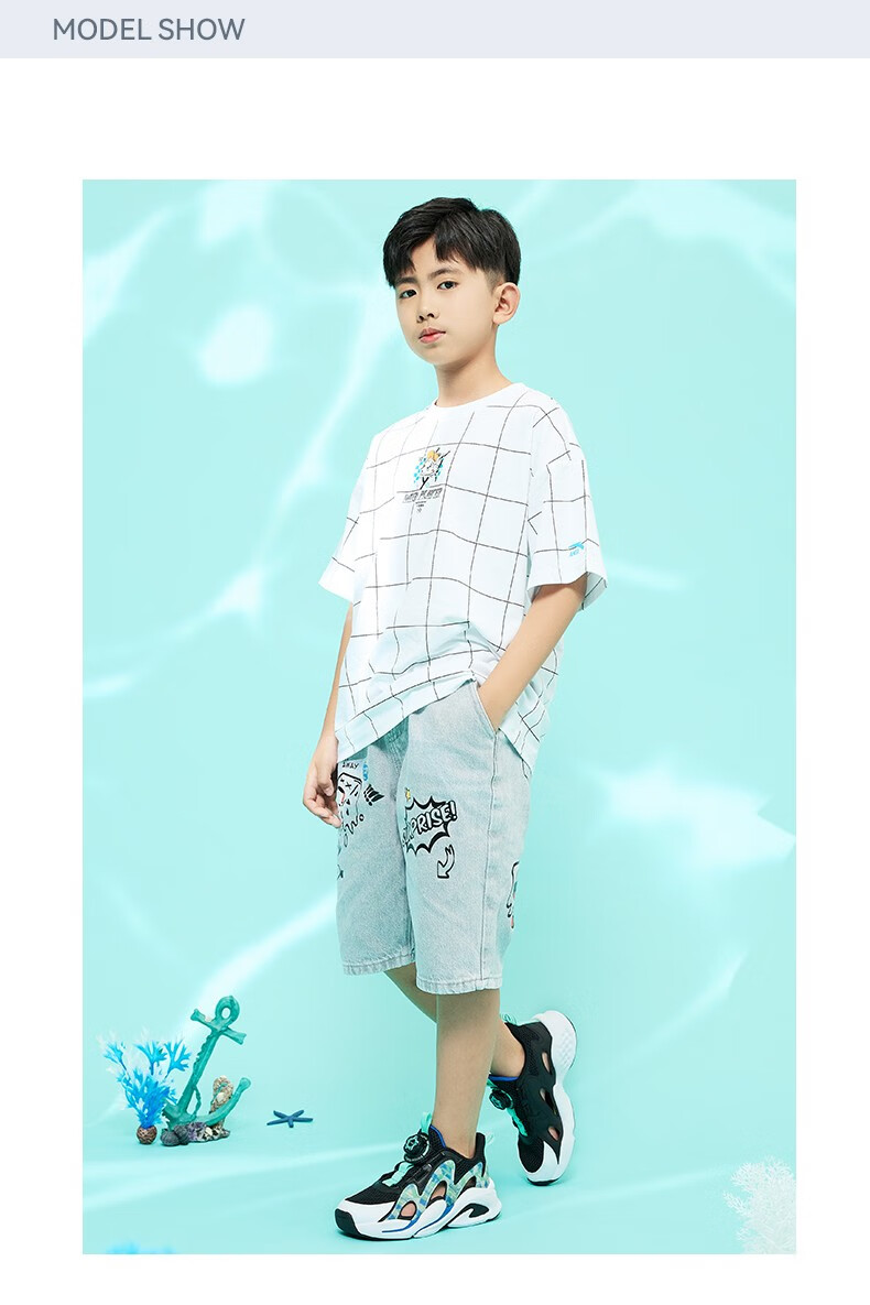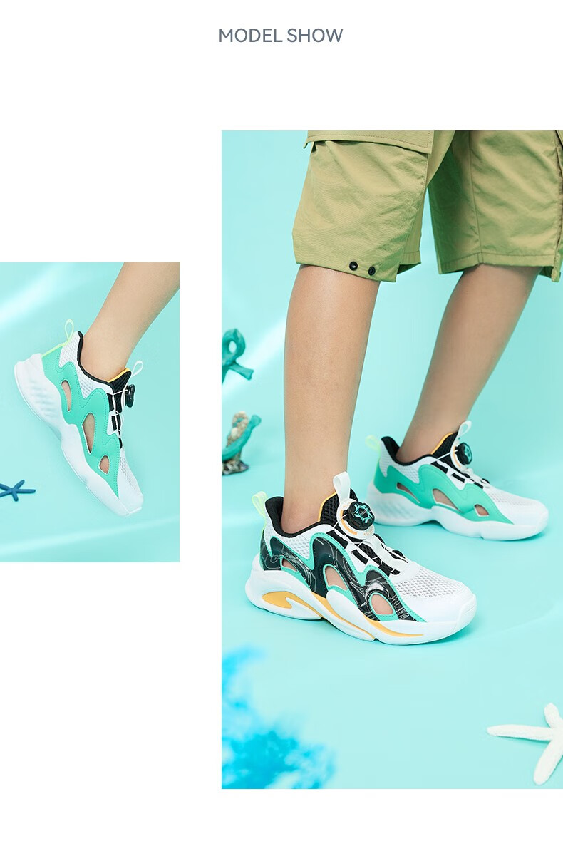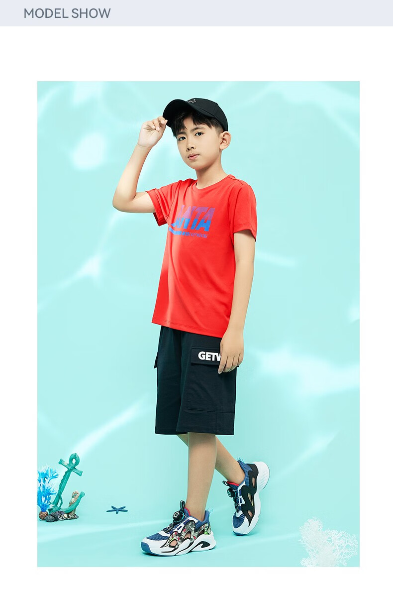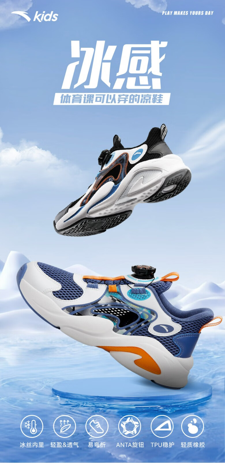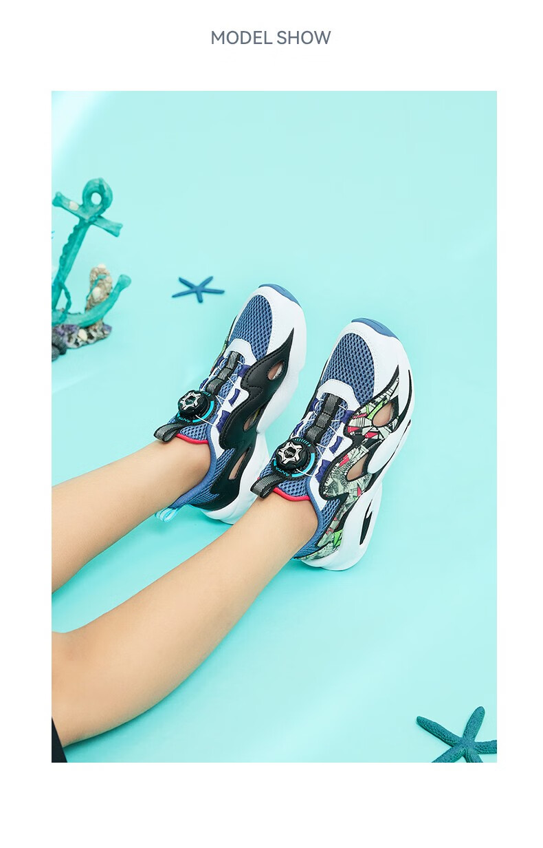 ANTA Children's Sandals Boys' Shoes 2025 Summer Big Children 6-16 Years Old Shopping Mall Same Style Overbearing Frame Shoes Beach Sandals Ice Feel Black/Anta White/Medium Blue-1 35/22cm