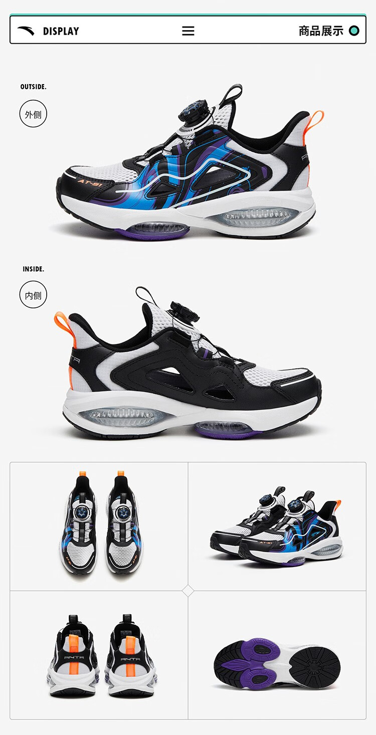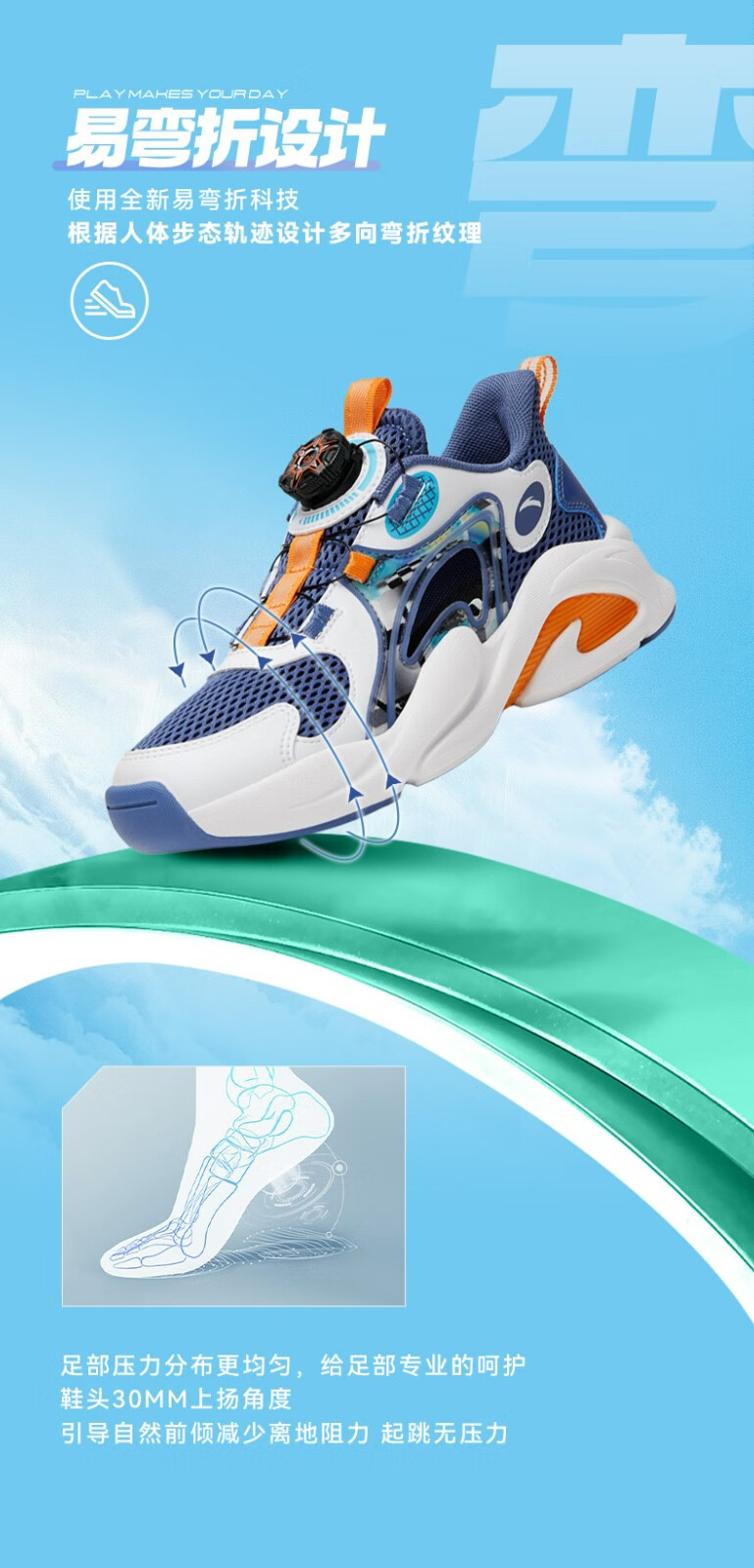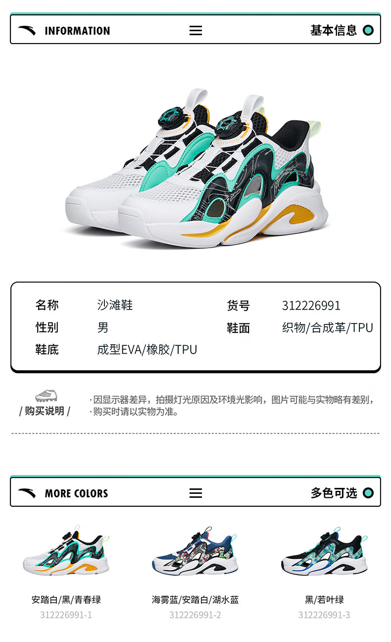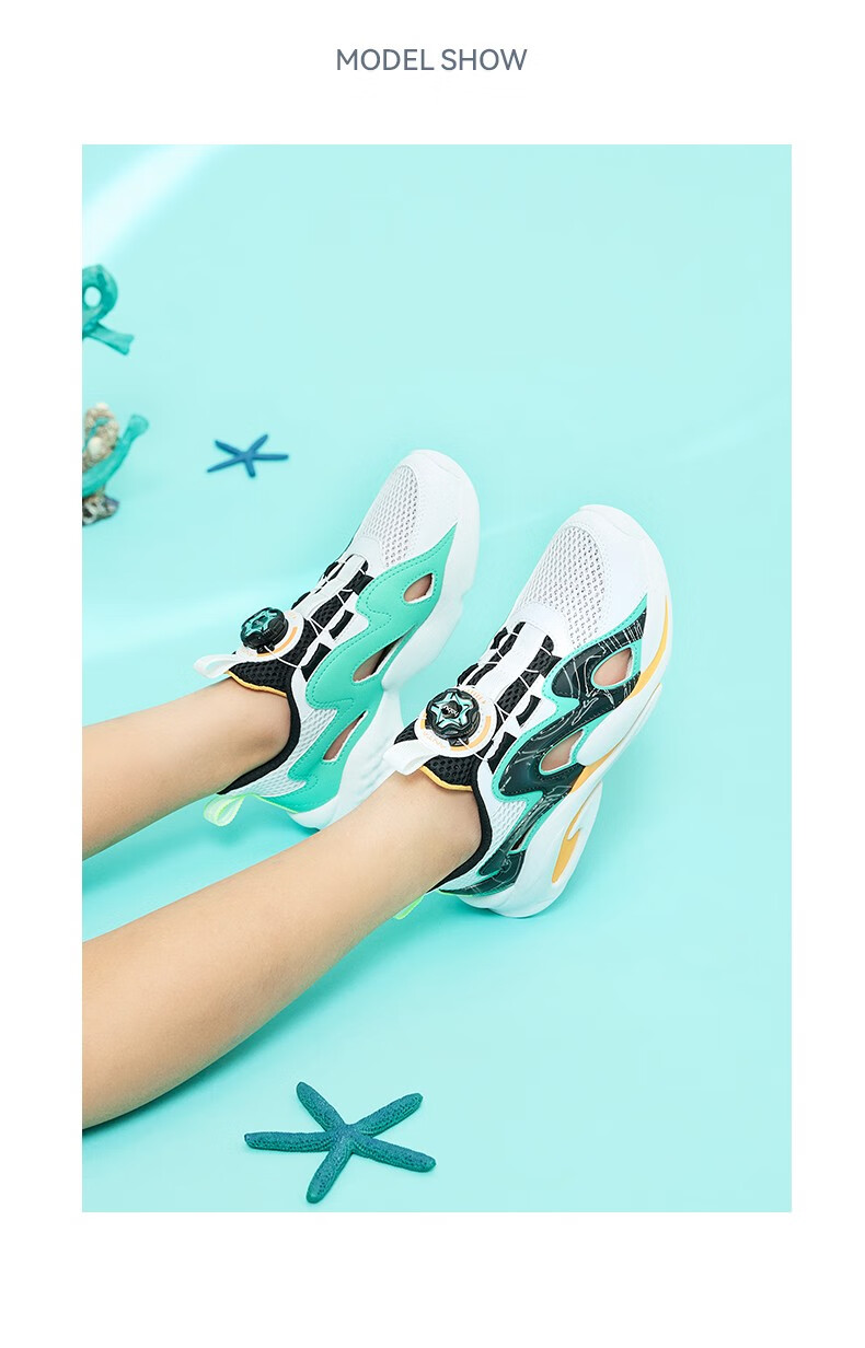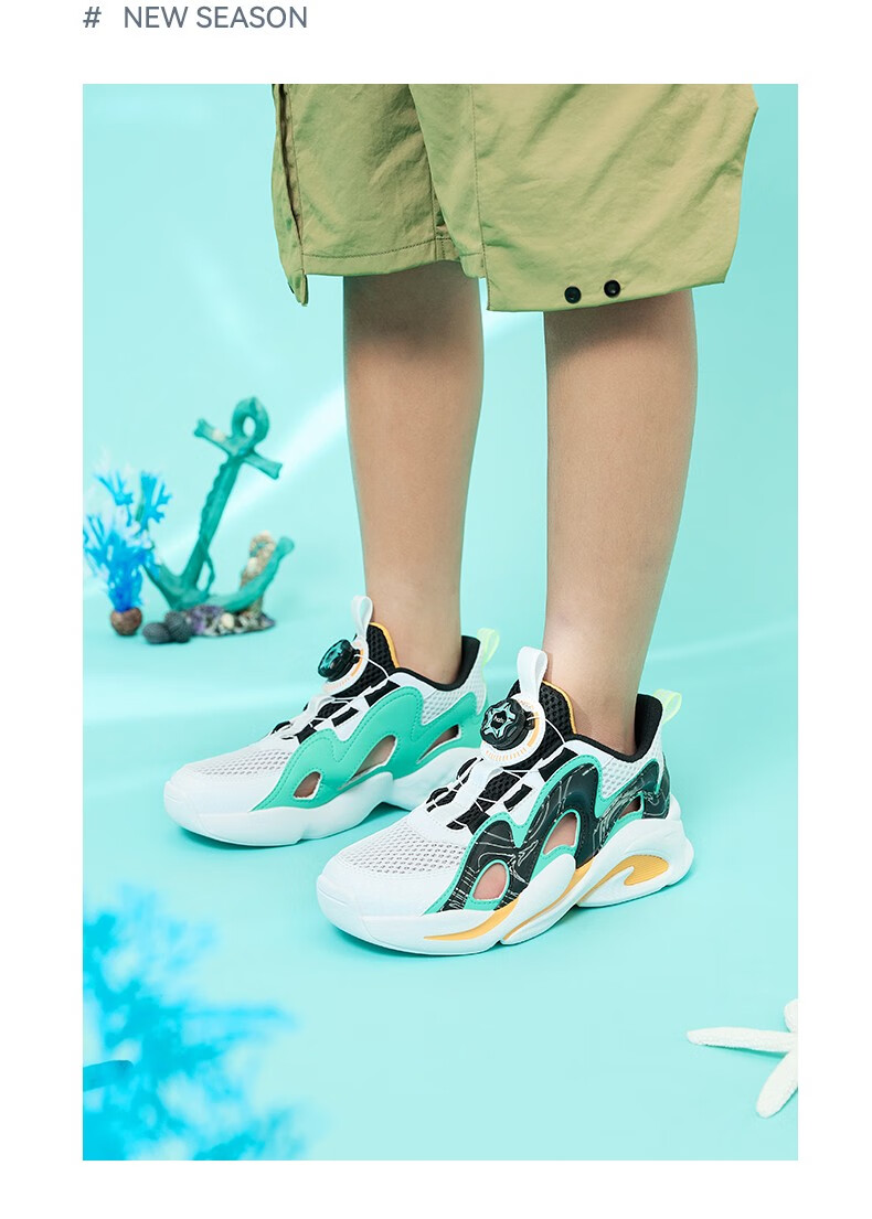 ANTA Children's Sandals Boys' Shoes 2025 Summer Big Children 6-16 Years Old Shopping Mall Same Style Overbearing Frame Shoes Beach Sandals Ice Feel Black/Anta White/Medium Blue-1 35/22cm