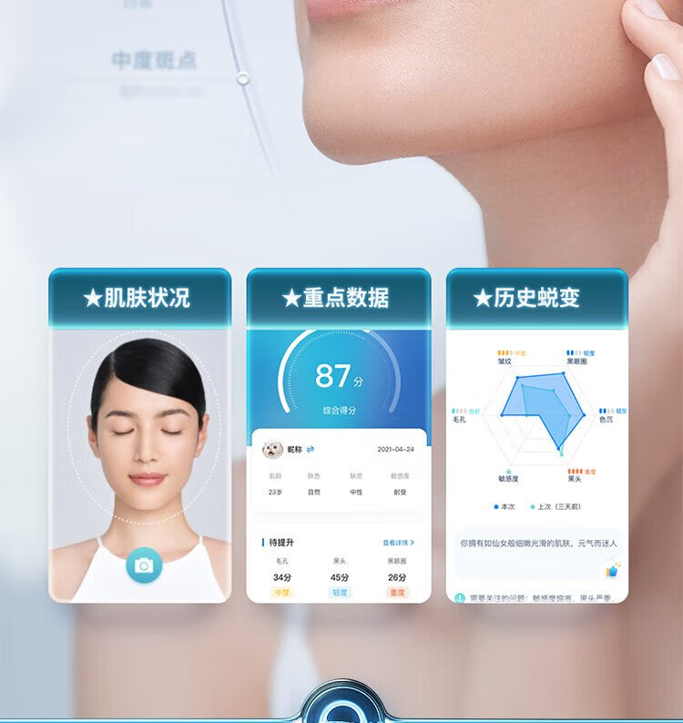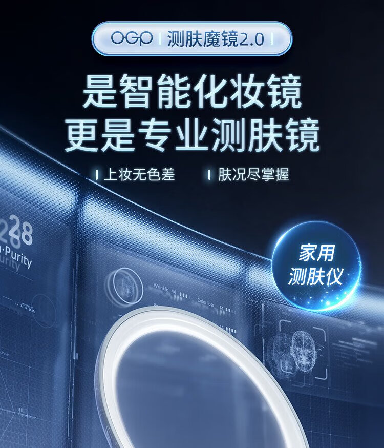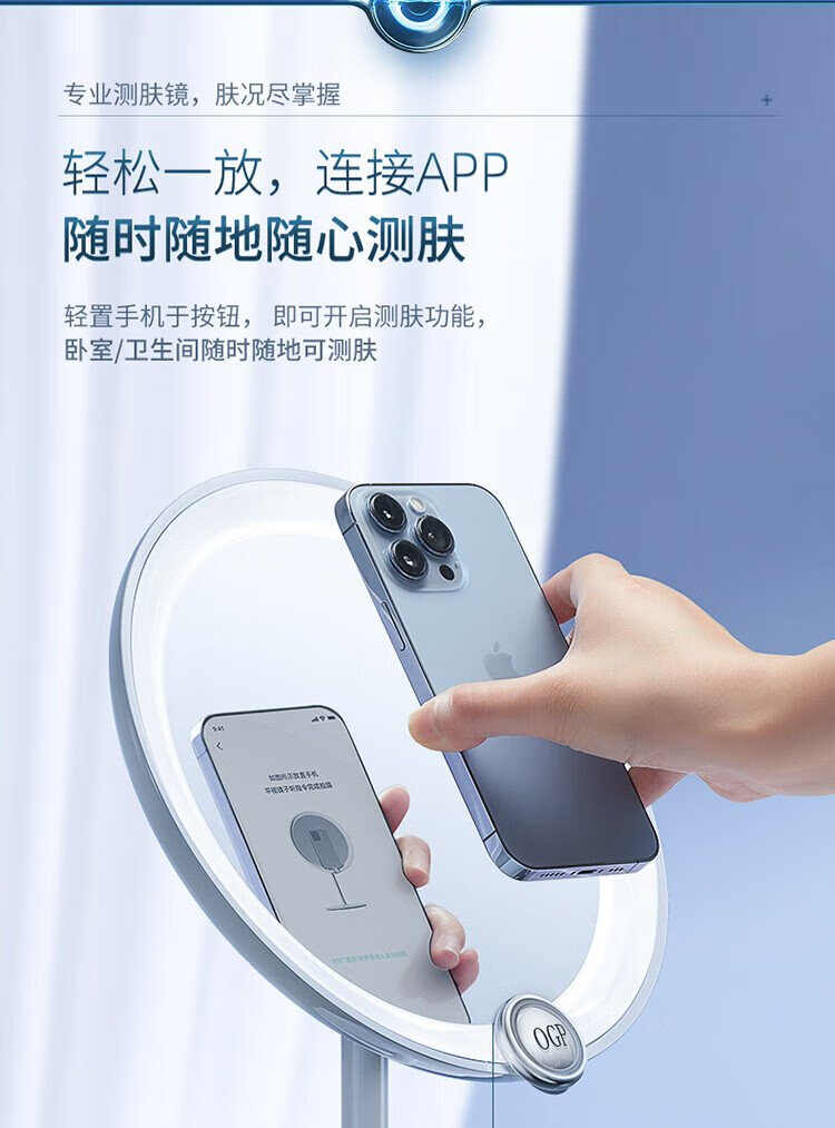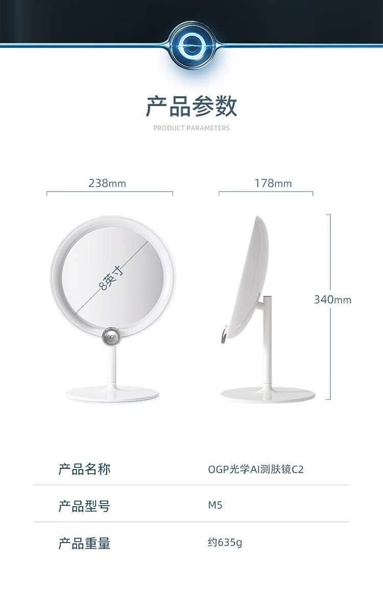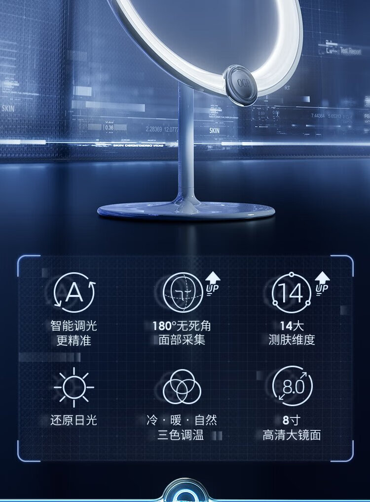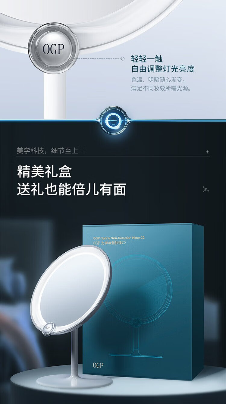 Time Skin 520 Girl Gift Time Skin Skin Test Magic Mirror 2.0/Makeup Test Desktop LED Light Portable Smart Luminous Makeup Mirror with Light for Girlfriend Birthday Gift White