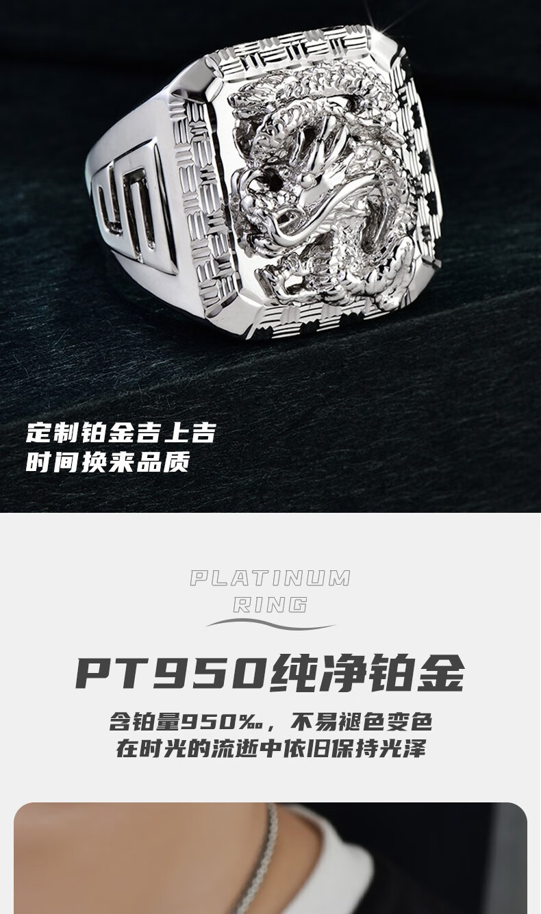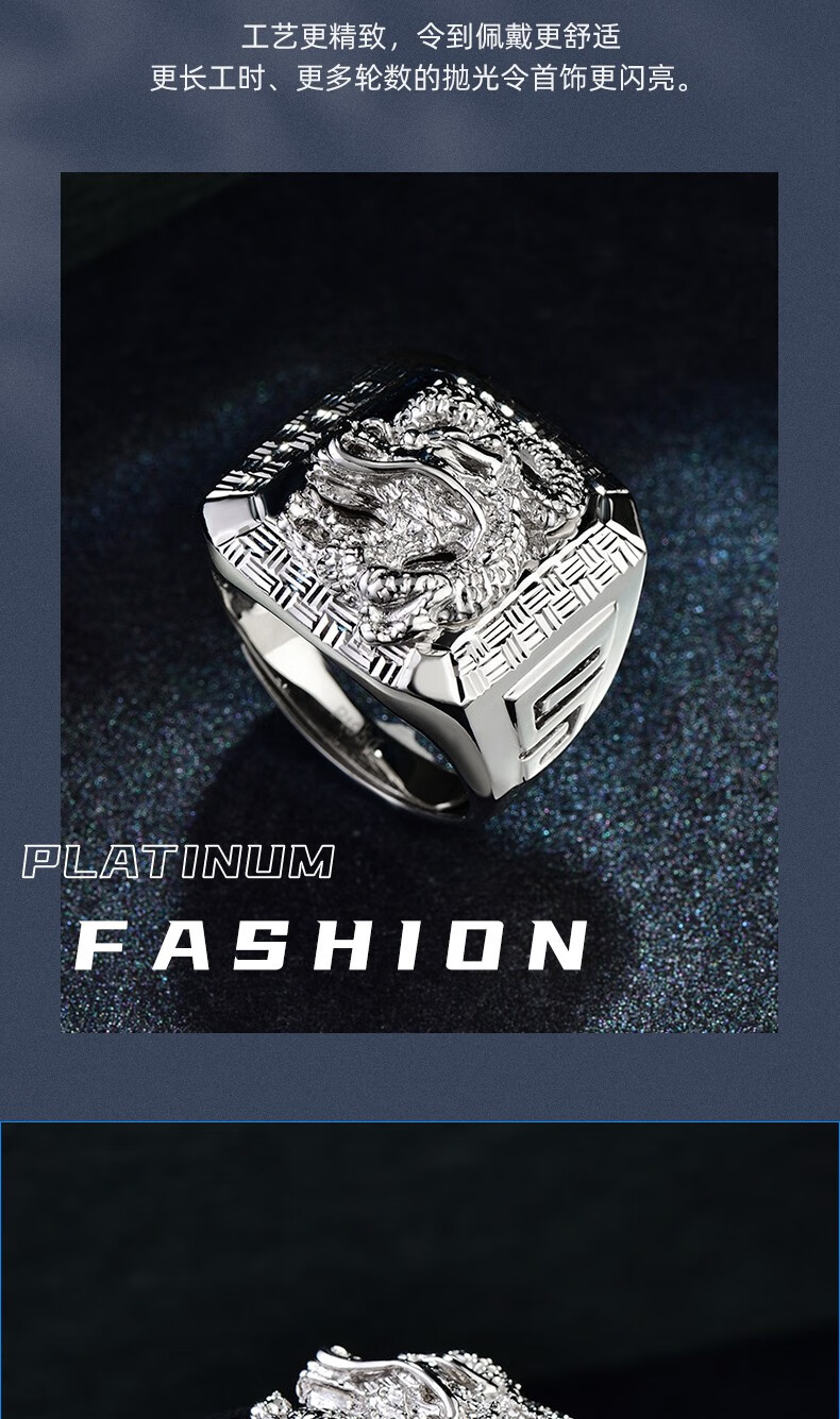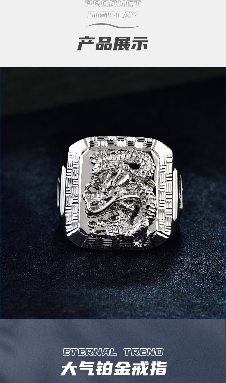 GsunG platinum ring men's PT950 dragon ring atmospheric platinum new wide-faced shiny men's ring zodiac dragon zodiac year male, priced by gram, contact customer service before bidding for gold price