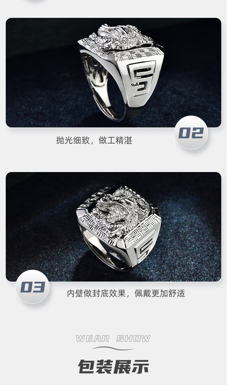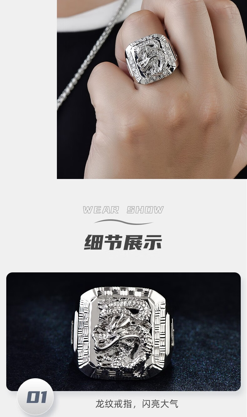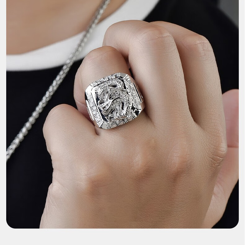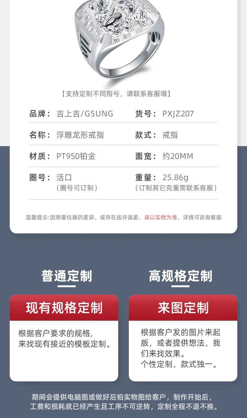 GsunG platinum ring men's PT950 dragon ring atmospheric platinum new wide-faced shiny men's ring zodiac dragon zodiac year male, priced by gram, contact customer service before bidding for gold price