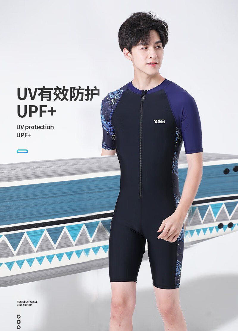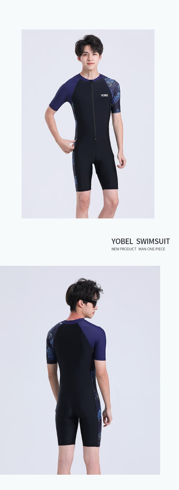 Yobel Men's Swimwear Professional One-piece Swimsuit Teenagers Sunscreen Quick-drying Plus Size Adult Surf Suit Summer Black with Blue Flowers XL Weight 110-130Jin Jin is equal to 0.5 kg