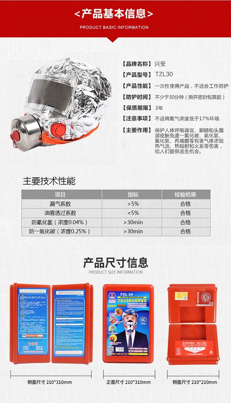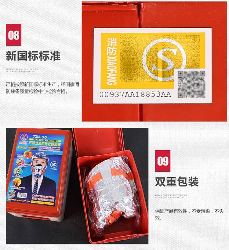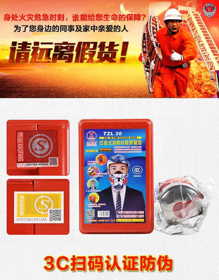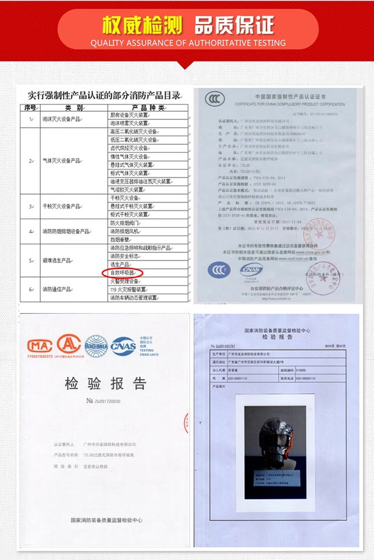 Fire gas mask, smoke mask, fire escape self-rescue respirator, hotel household mask 3C certification Xing'an mask-national standard 3C