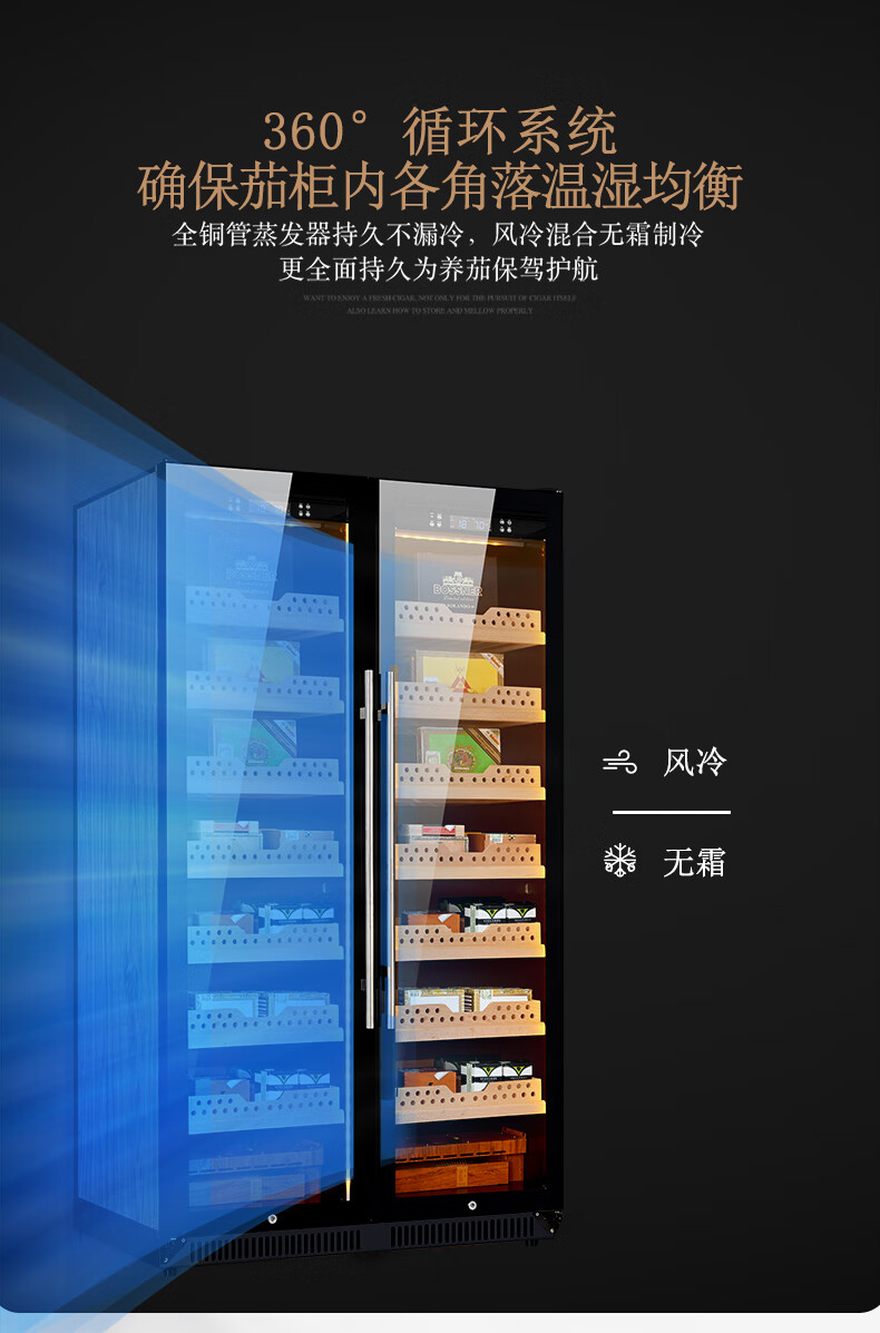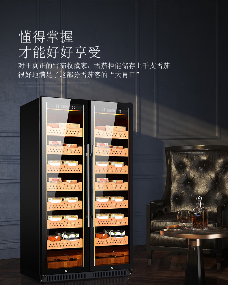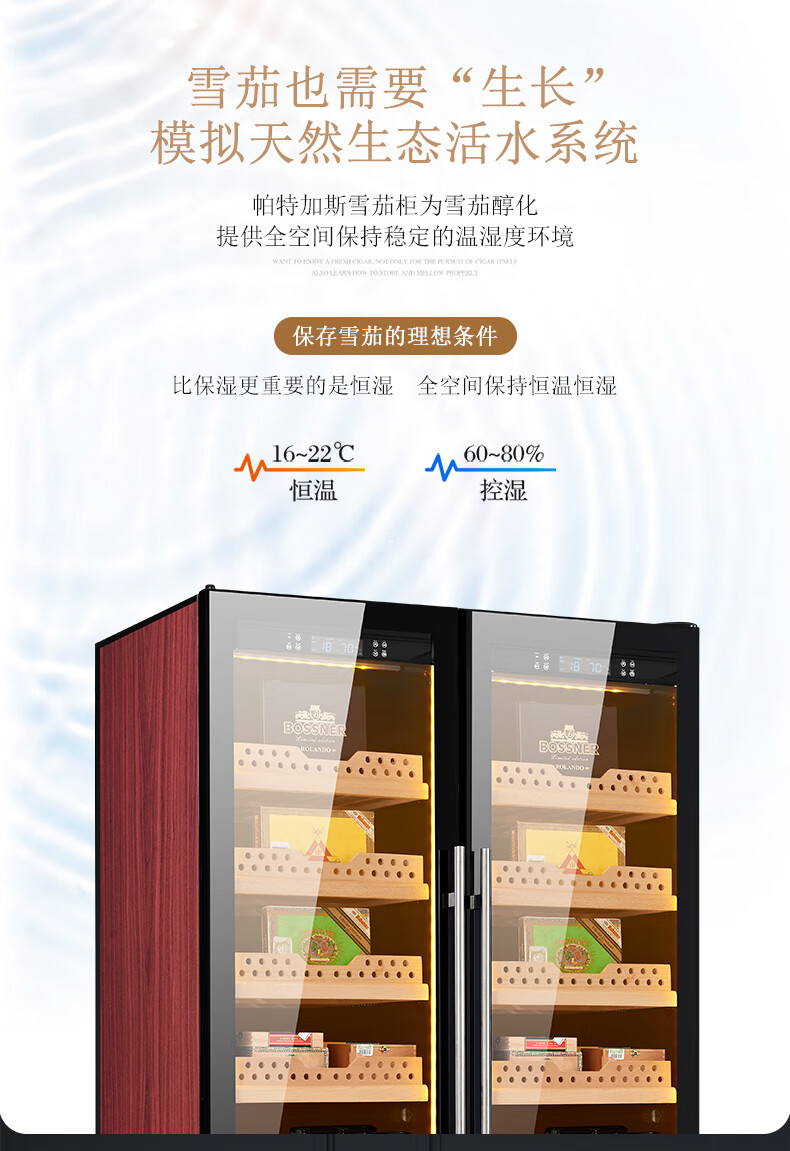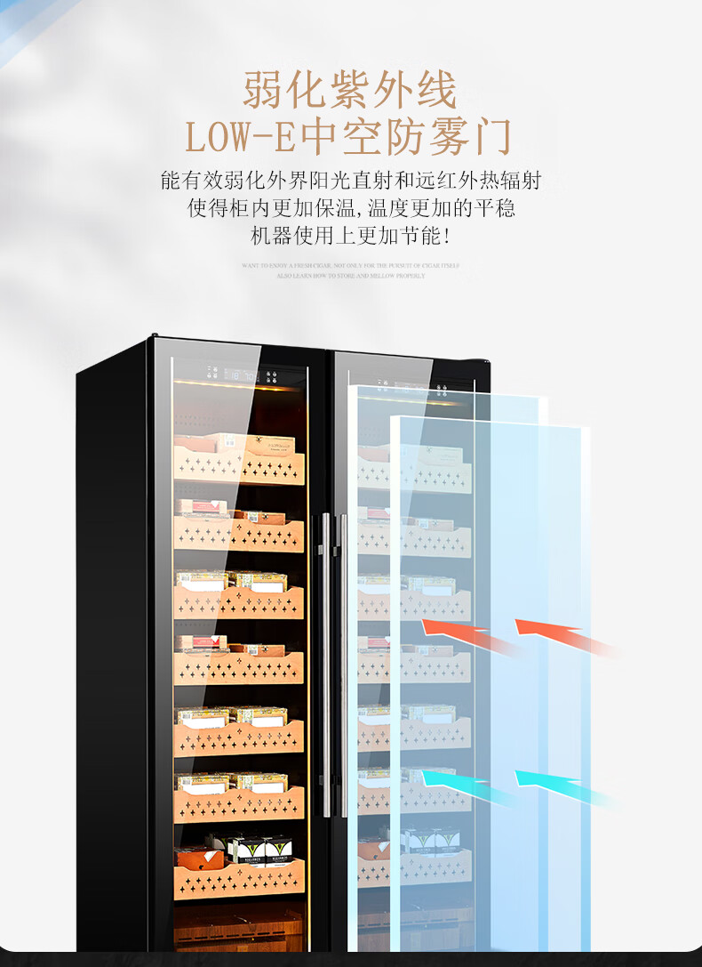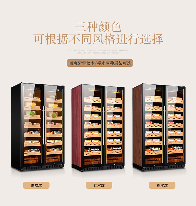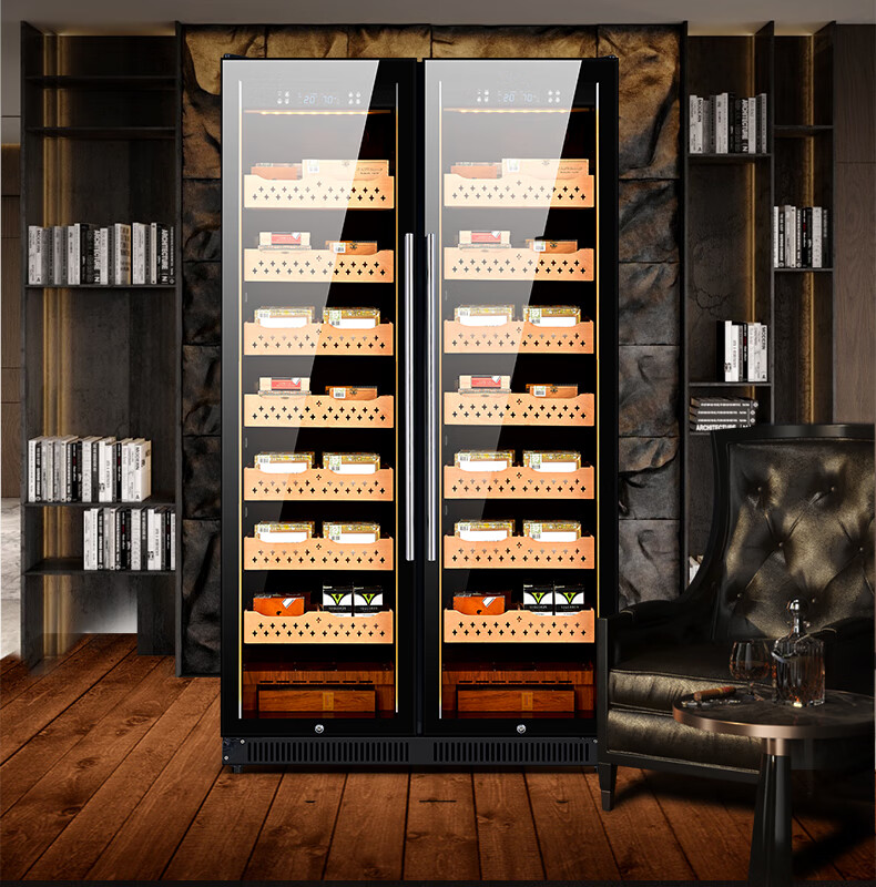 Partagas double-door cigar cabinet with constant temperature and humidity control for tomato cultivation, constant temperature and humidity dual control system compressor, household humidifier with constant temperature and humidity control, cedar wood shelf, thick section 1.8M high/black leather grain/cedar wood 860L