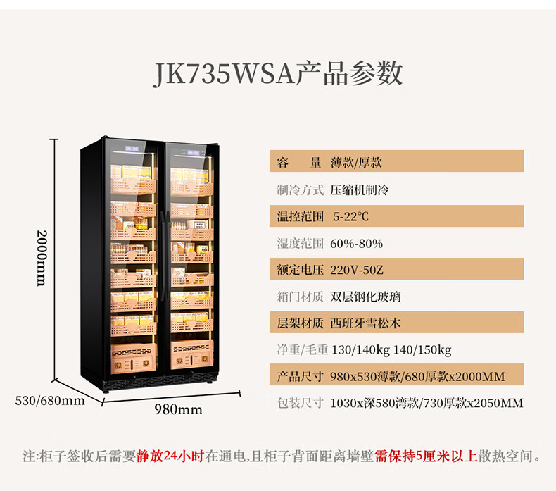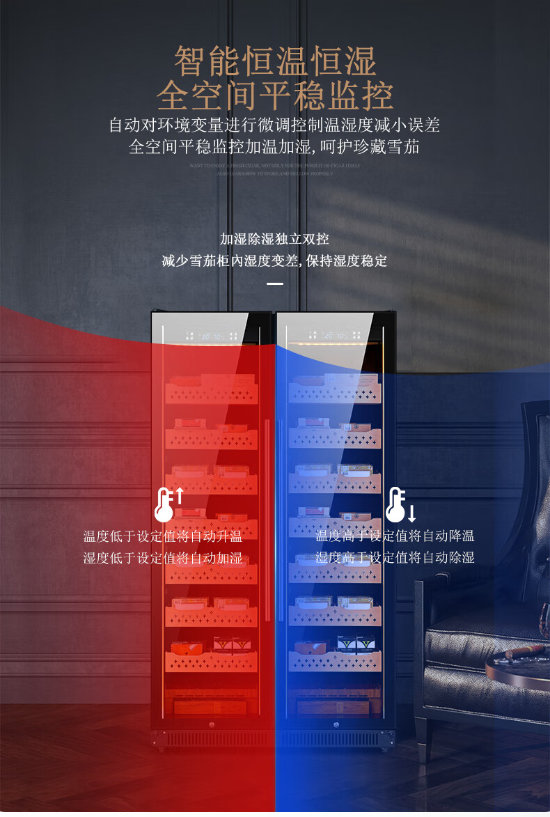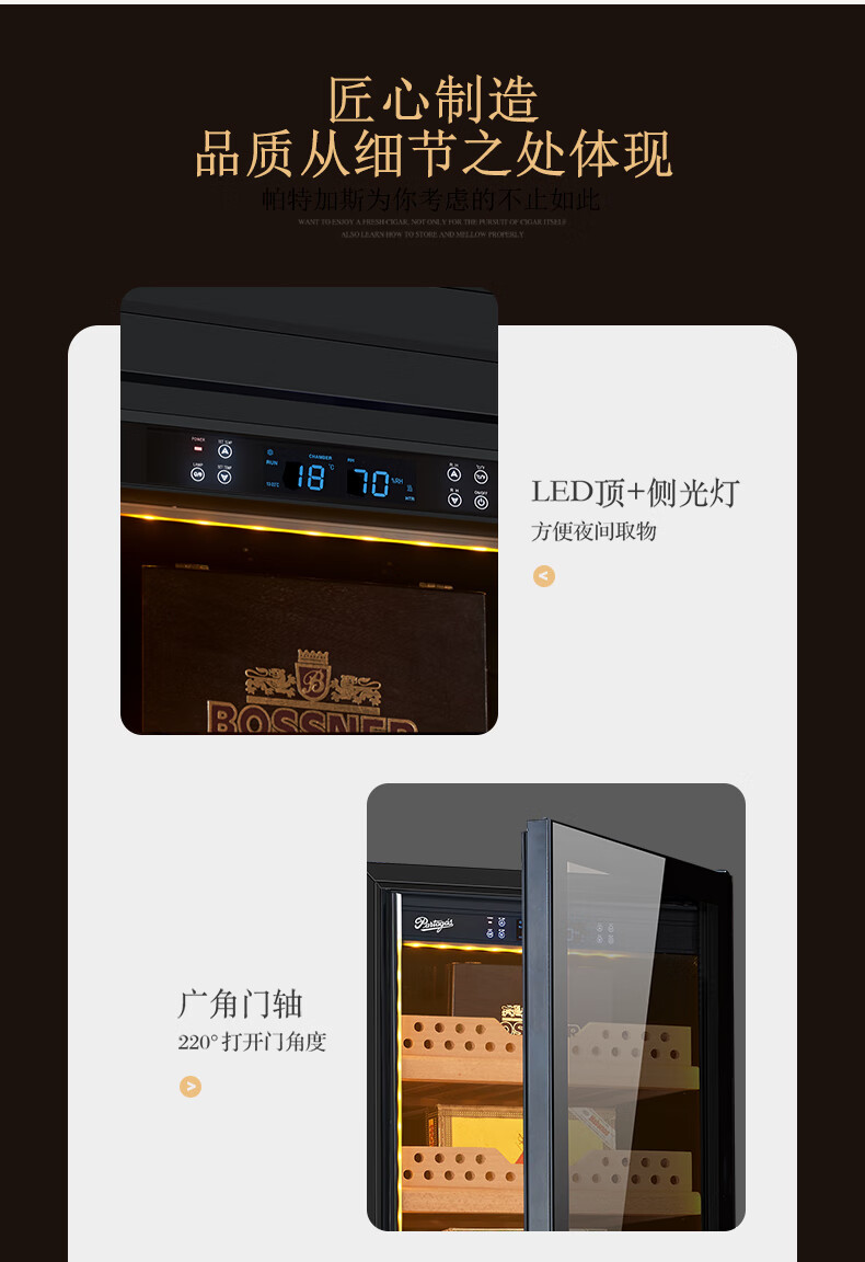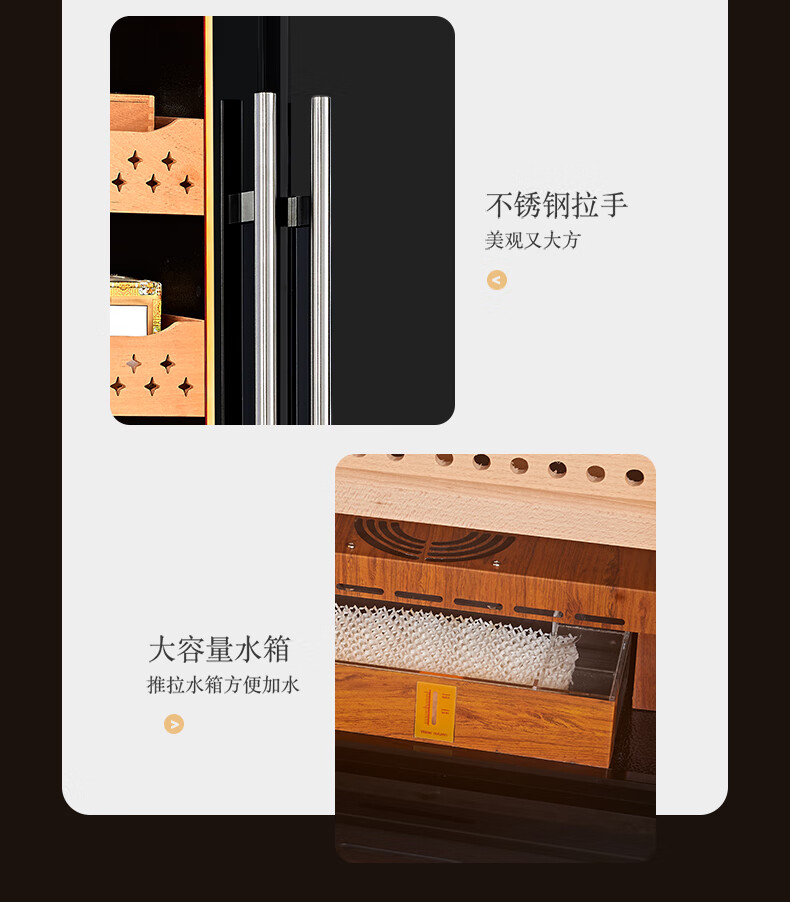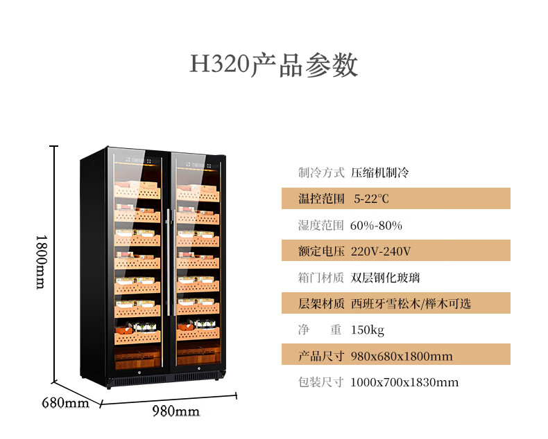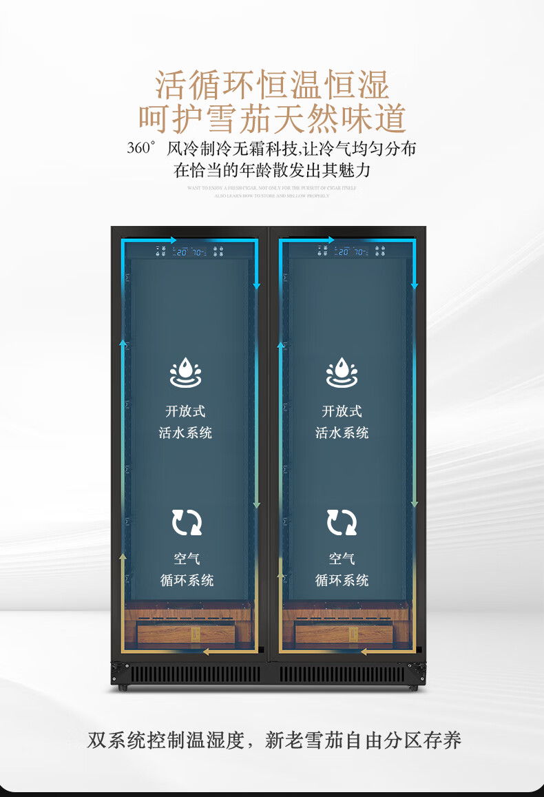 Partagas double-door cigar cabinet with constant temperature and humidity control for tomato cultivation, constant temperature and humidity dual control system compressor, household humidifier with constant temperature and humidity control, cedar wood shelf, thick section 1.8M high/black leather grain/cedar wood 860L