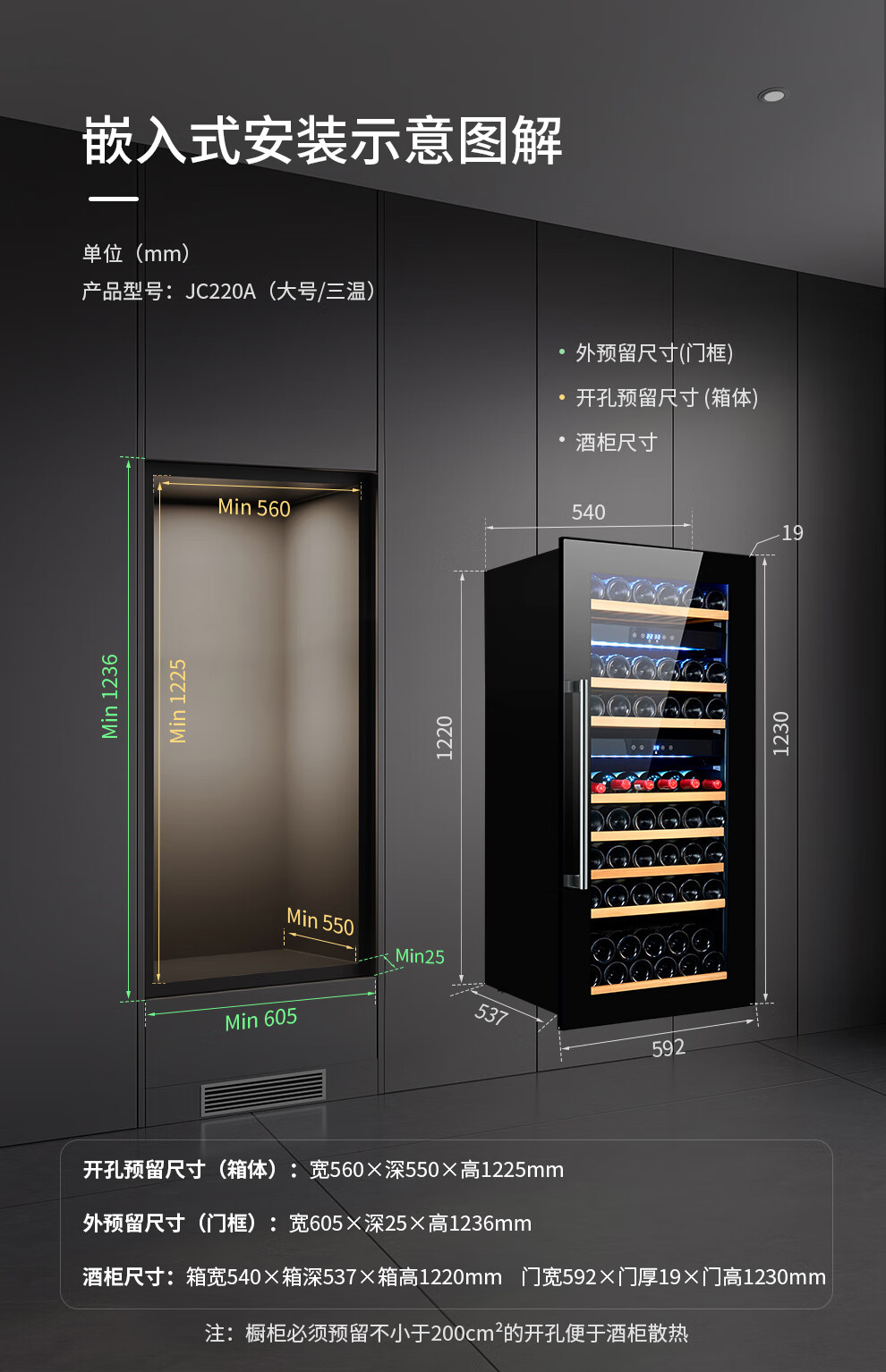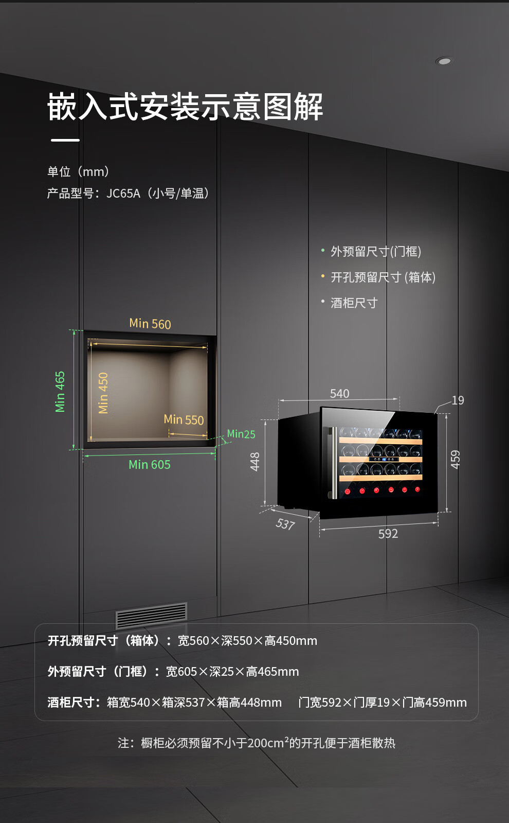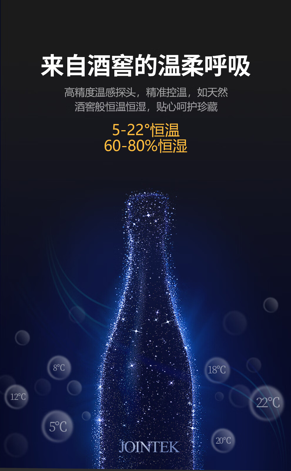 Jointtek Seamless Fully Embedded Wine Cabinet Ultra-Thin Household Refrigerator Cabinet Constant Temperature and Humidity Compressor Embedded Wall Fresh Cabinet JC65A/Small Single Temperature/Black 24 Bottles