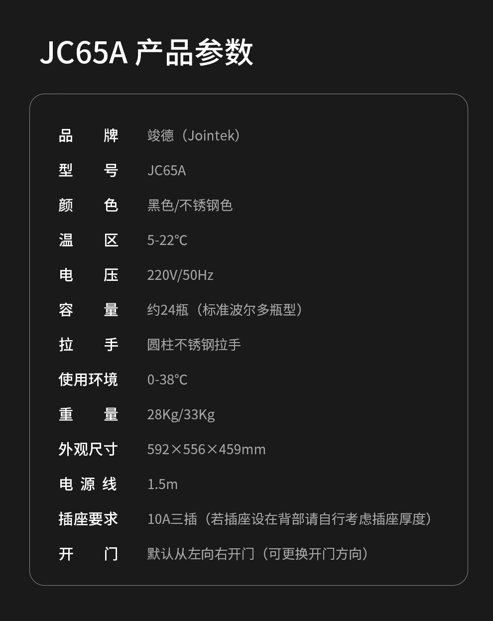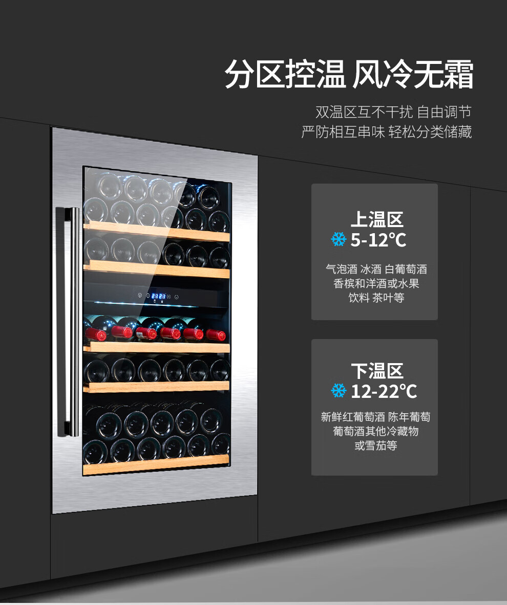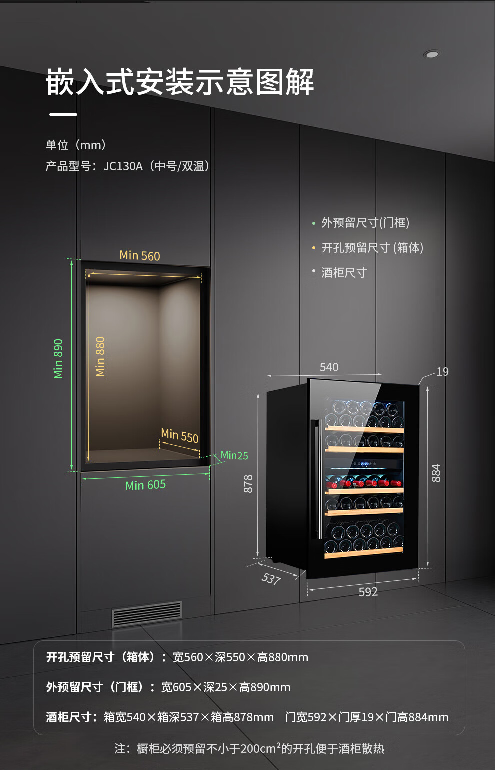 Jointtek Seamless Fully Embedded Wine Cabinet Ultra-Thin Household Refrigerator Cabinet Constant Temperature and Humidity Compressor Embedded Wall Fresh Cabinet JC65A/Small Single Temperature/Black 24 Bottles