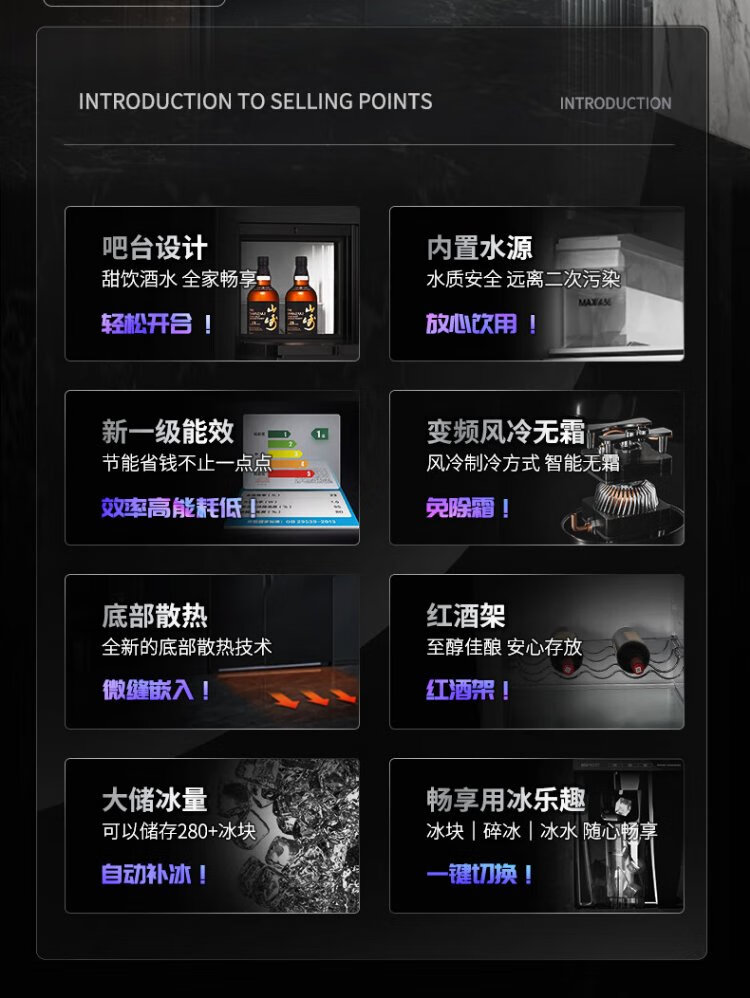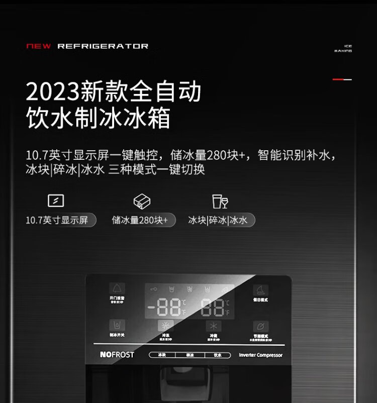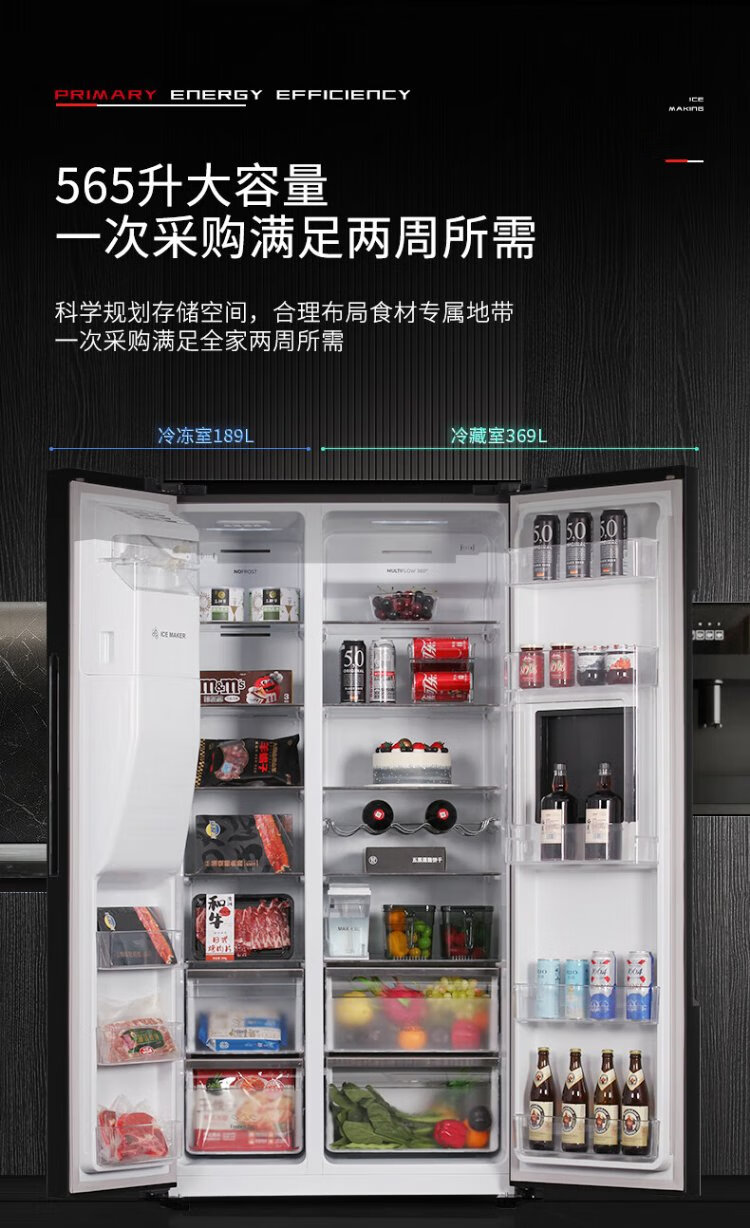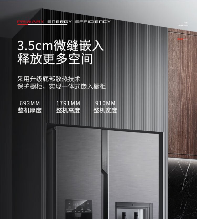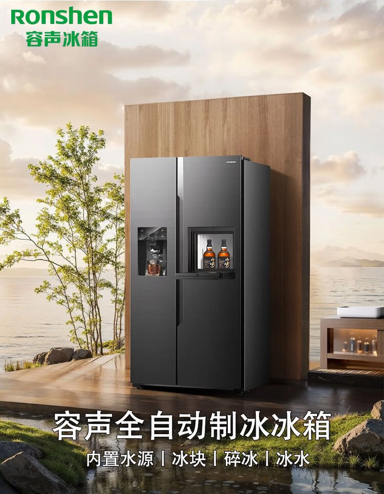 Ronshen Ice Making Refrigerator Frequency Converter Level 1 Energy Efficiency Fully Automatic Ice Making All-in-One Function Air-cooled Frost-free Embedded Double Door Refrigerator Hail BCD-565WFS1HP Ice Making Refrigerator (Art Bar)