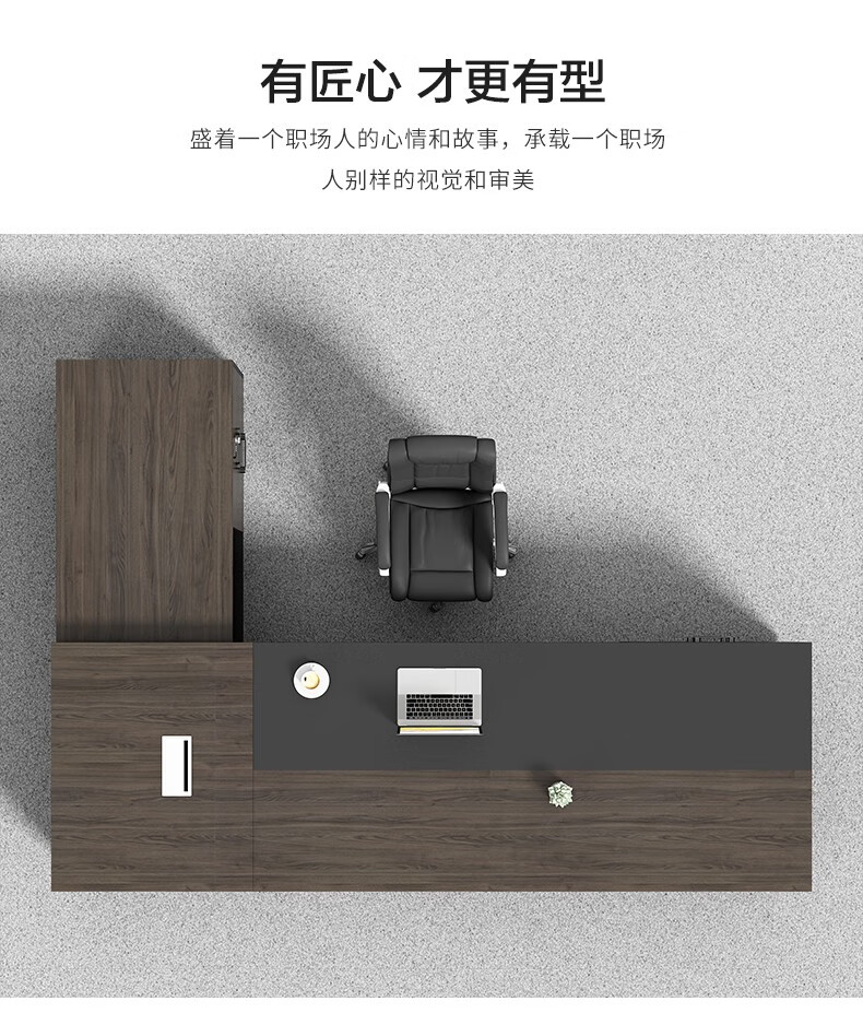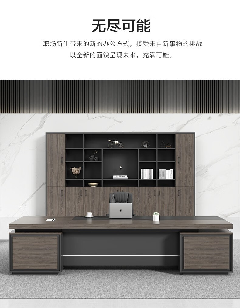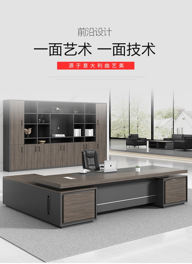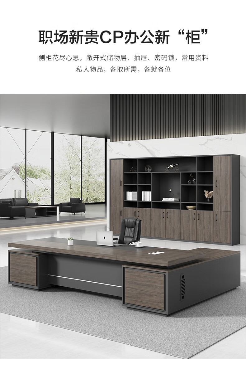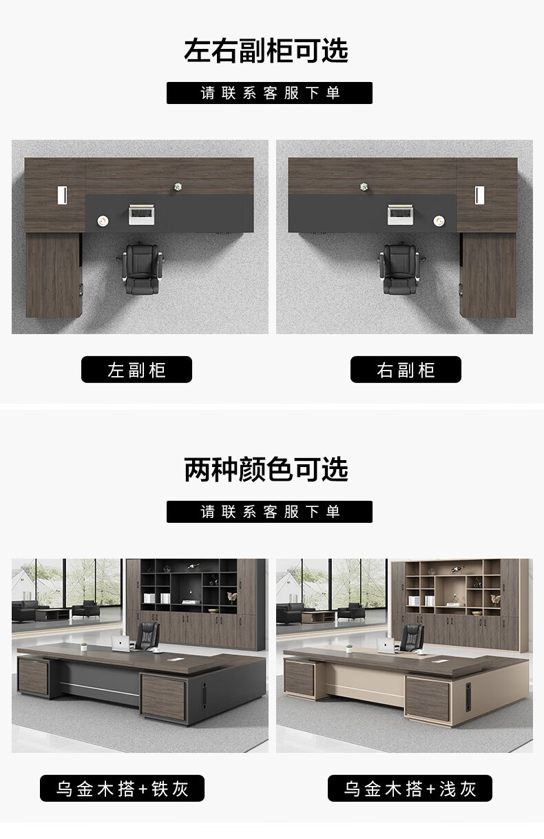 Dilin boss desk desk supervisor manager desk simple modern office furniture leadership table and chair combination single executive desk ebony wood with iron gray (long cabinet on the right) 2 meters including double side cabinets + chairs + 2.4 meters bookcase