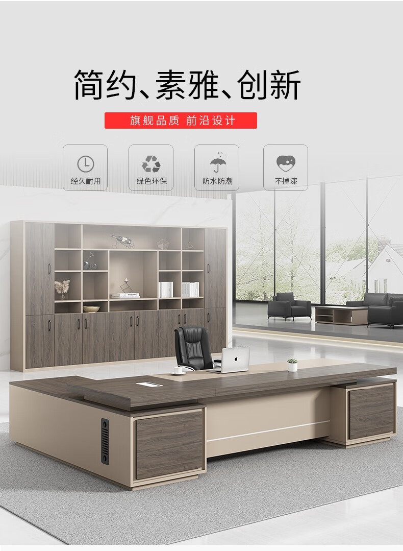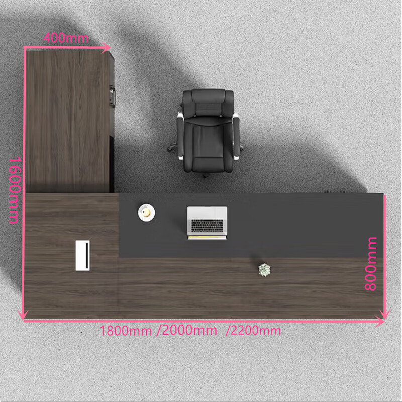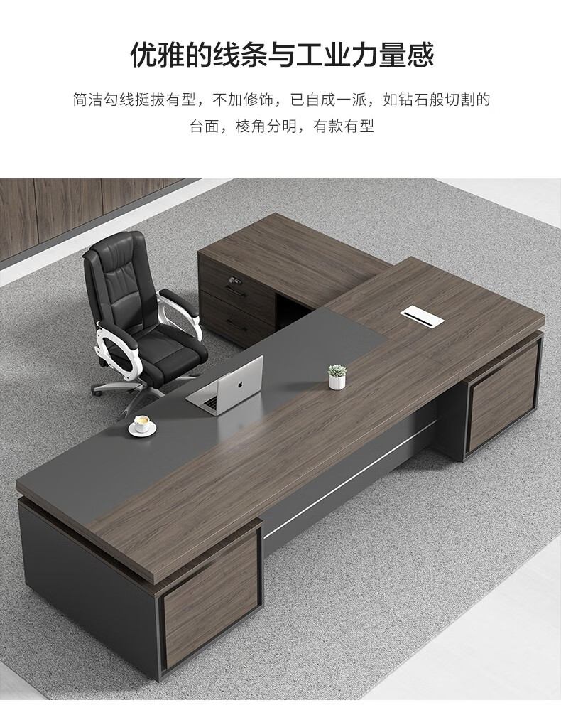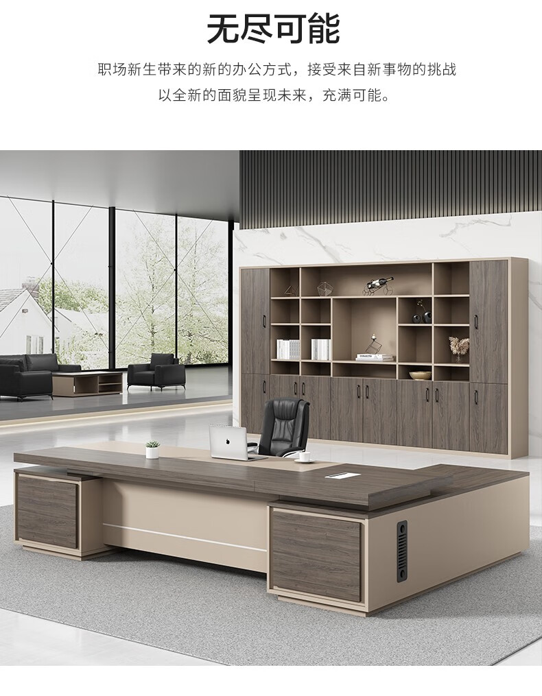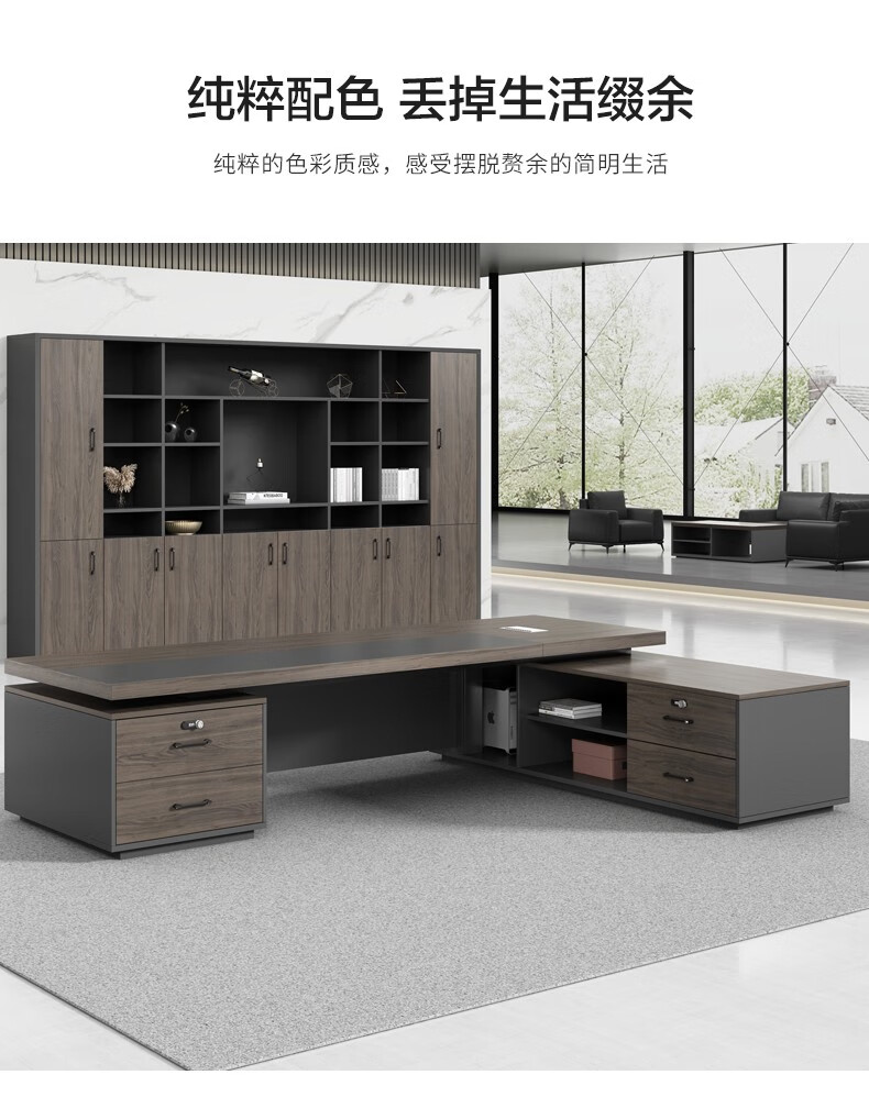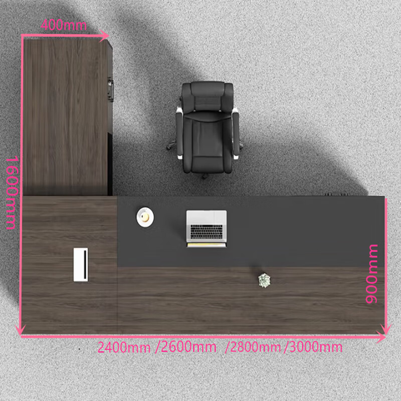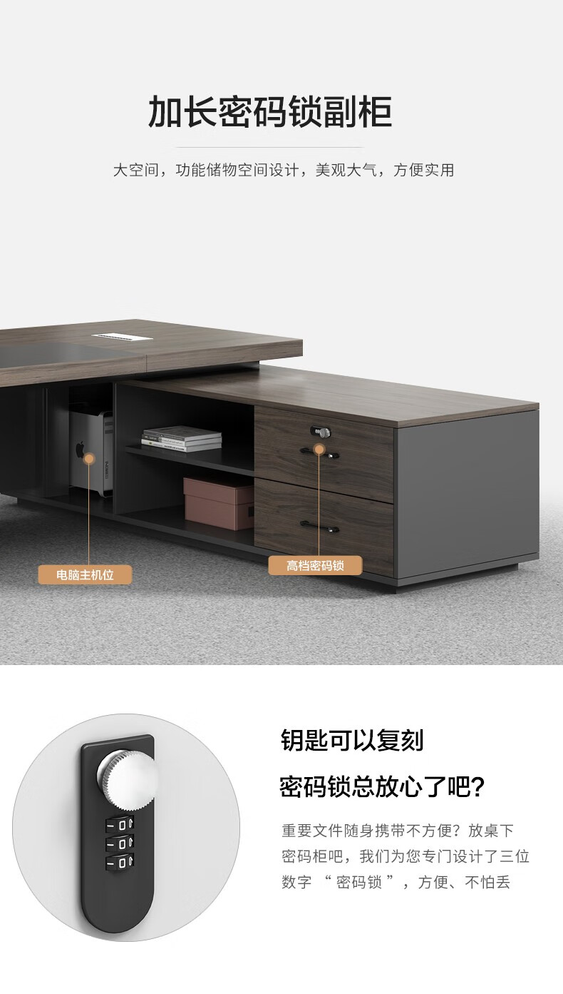 Dilin boss desk desk supervisor manager desk simple modern office furniture leadership table and chair combination single executive desk ebony wood with iron gray (long cabinet on the right) 2 meters including double side cabinets + chairs + 2.4 meters bookcase