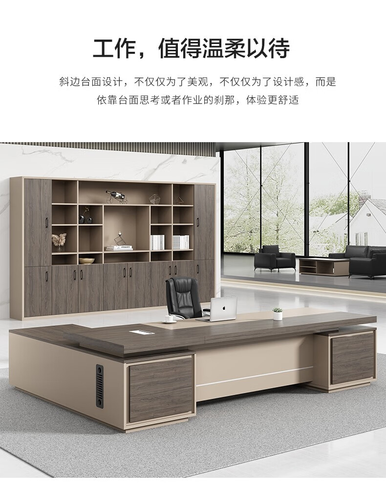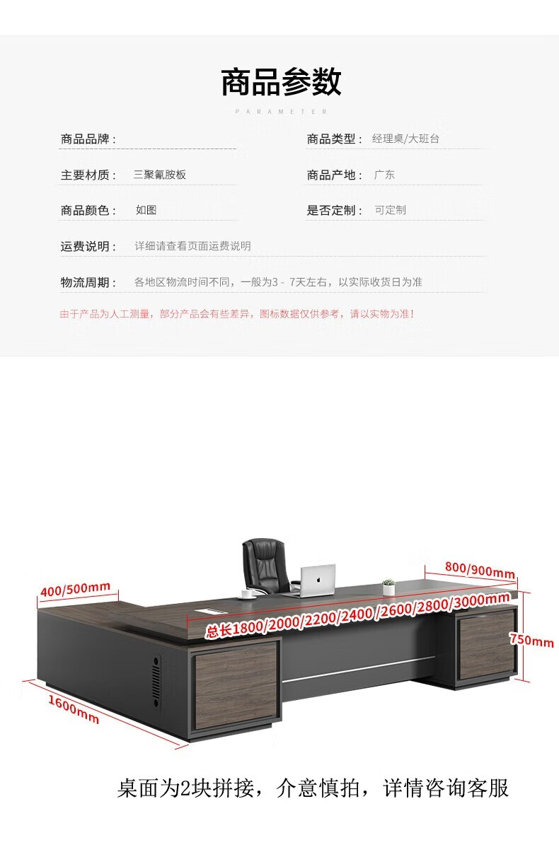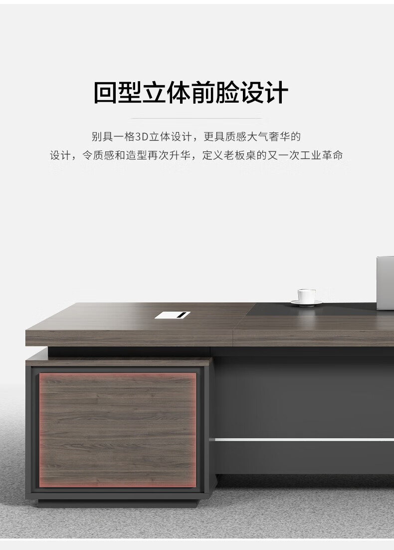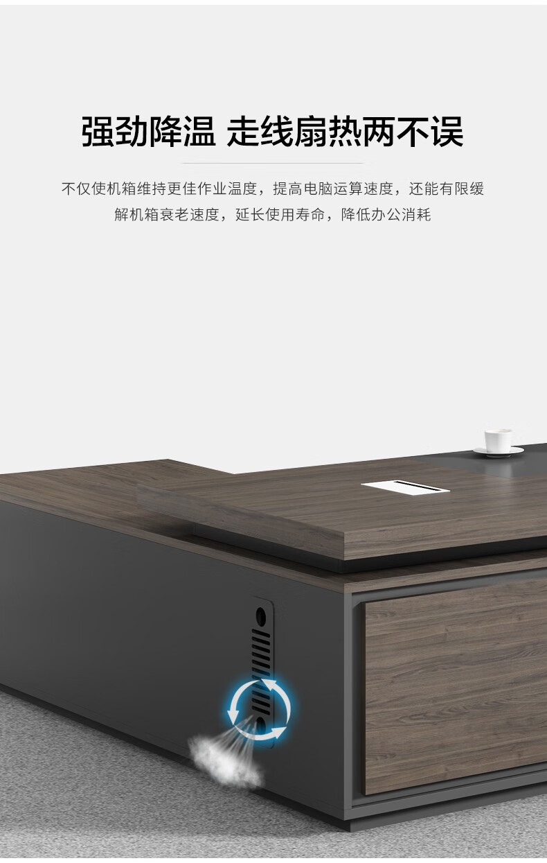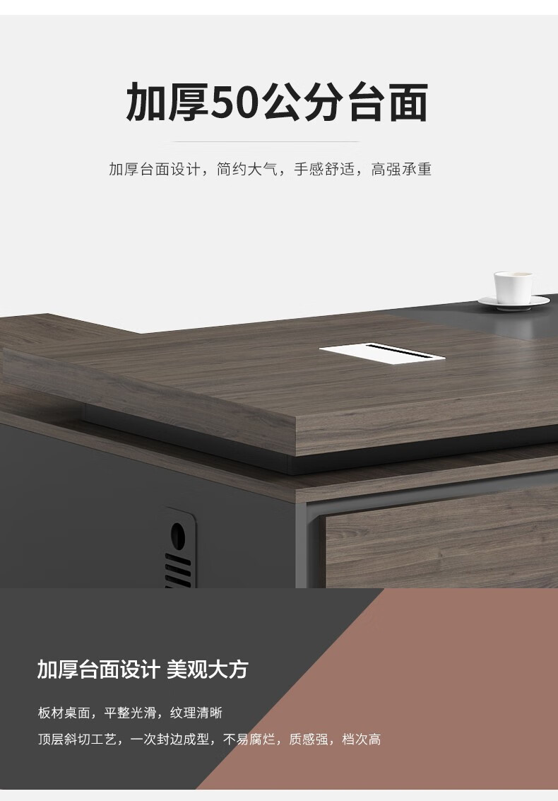 Dilin boss desk desk supervisor manager desk simple modern office furniture leadership table and chair combination single executive desk ebony wood with iron gray (long cabinet on the right) 2 meters including double side cabinets + chairs + 2.4 meters bookcase