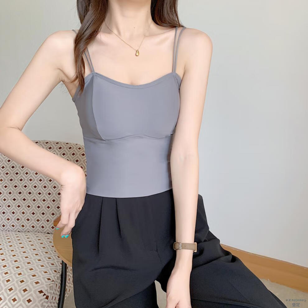 Kending (KENDING) ice silk seamless vest with breast pads and thickened camisole for women with big U beautiful back tube top push-up sports base bra white (thin cup 1.5cm) one size fits all