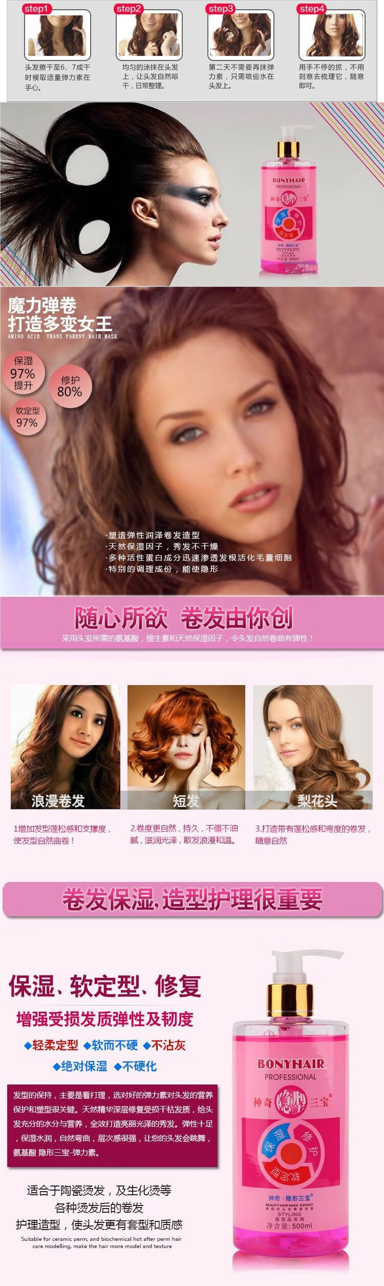 Invisible Sambo Elastin Styling Gel for Curly Hair Moisturizing Soft Styling No-Rinse Perm 500ml 1 Bottle