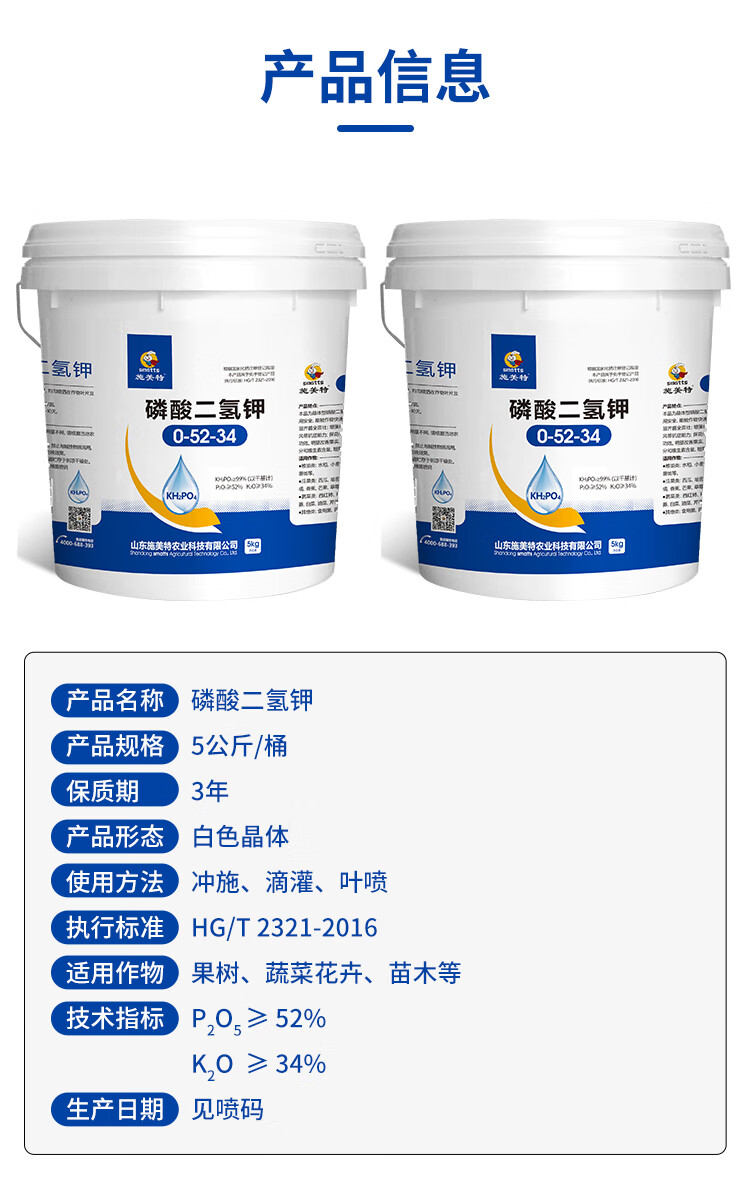Schmet Schmet 99% дигидрофосфат калия высокой чистоты, сельскохозяйственное листовое удобрение, 5 кг, большая упаковка, водорастворимое удобрение, дигидрофосфат калия, 5 кг * 1 бочка