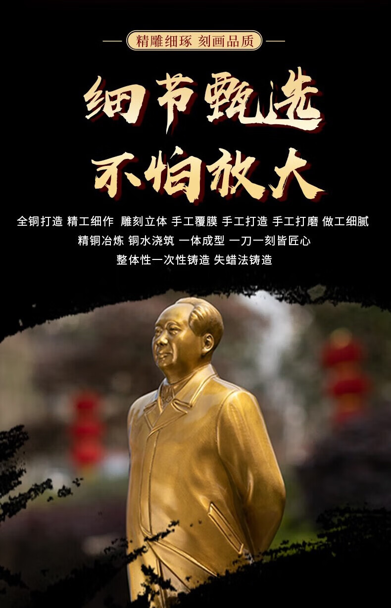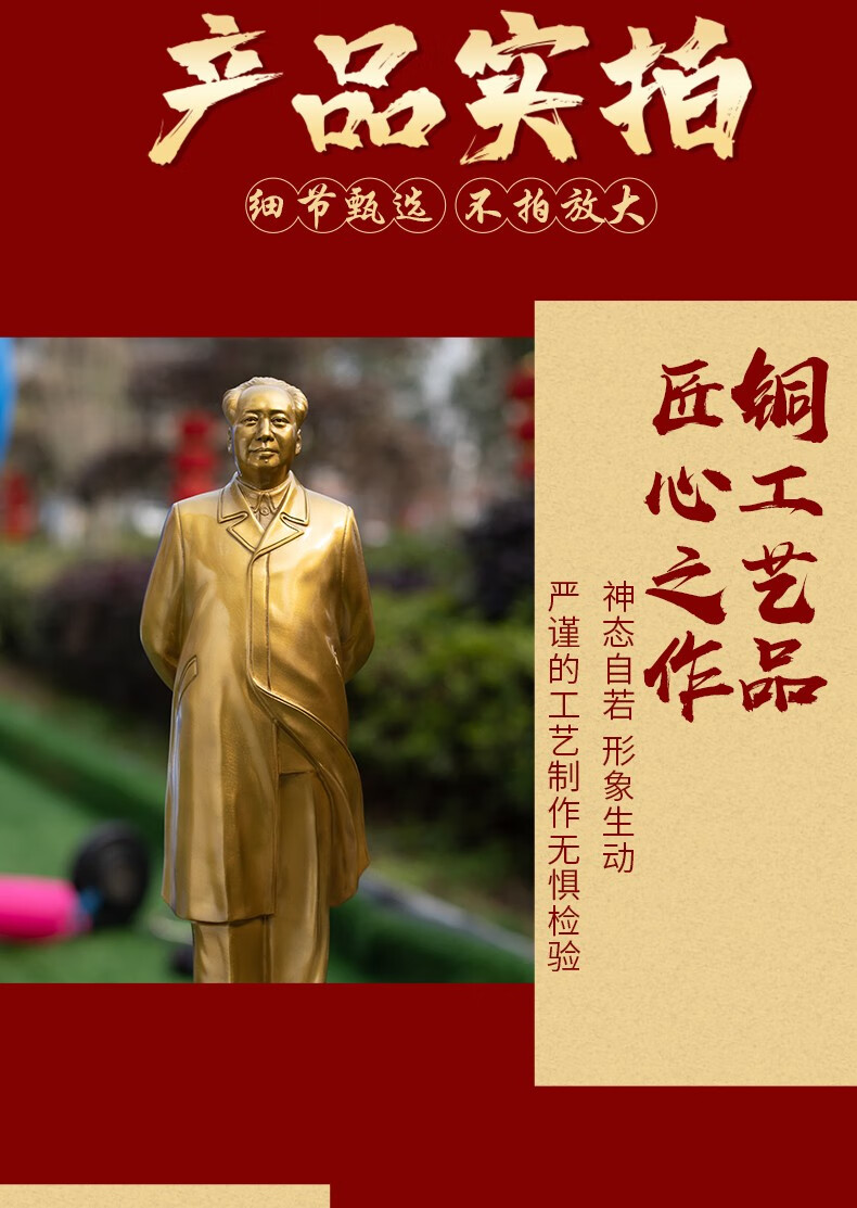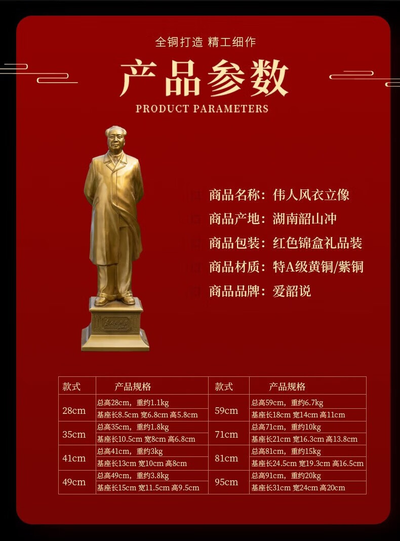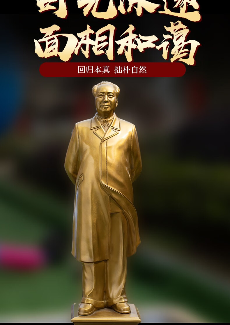Ai Shao talks about pure brass Chairman Mao's windbreaker like a great man bronze statue living room housewarming gift office study sculpture ornaments 40.8cm back hand like red velvet back cover