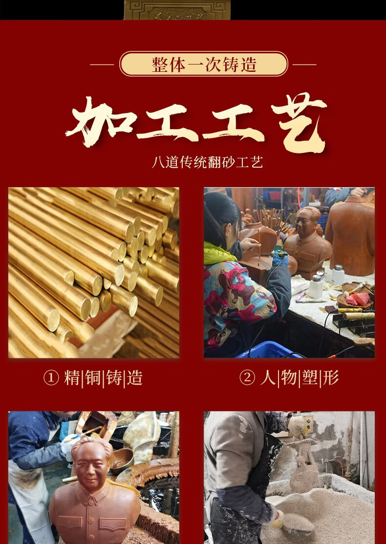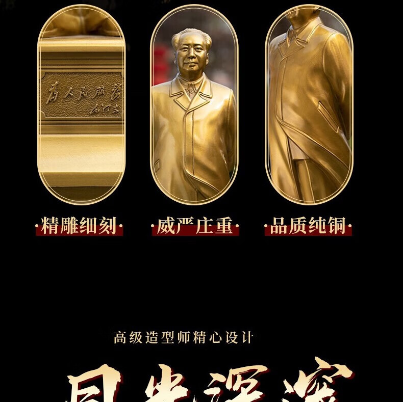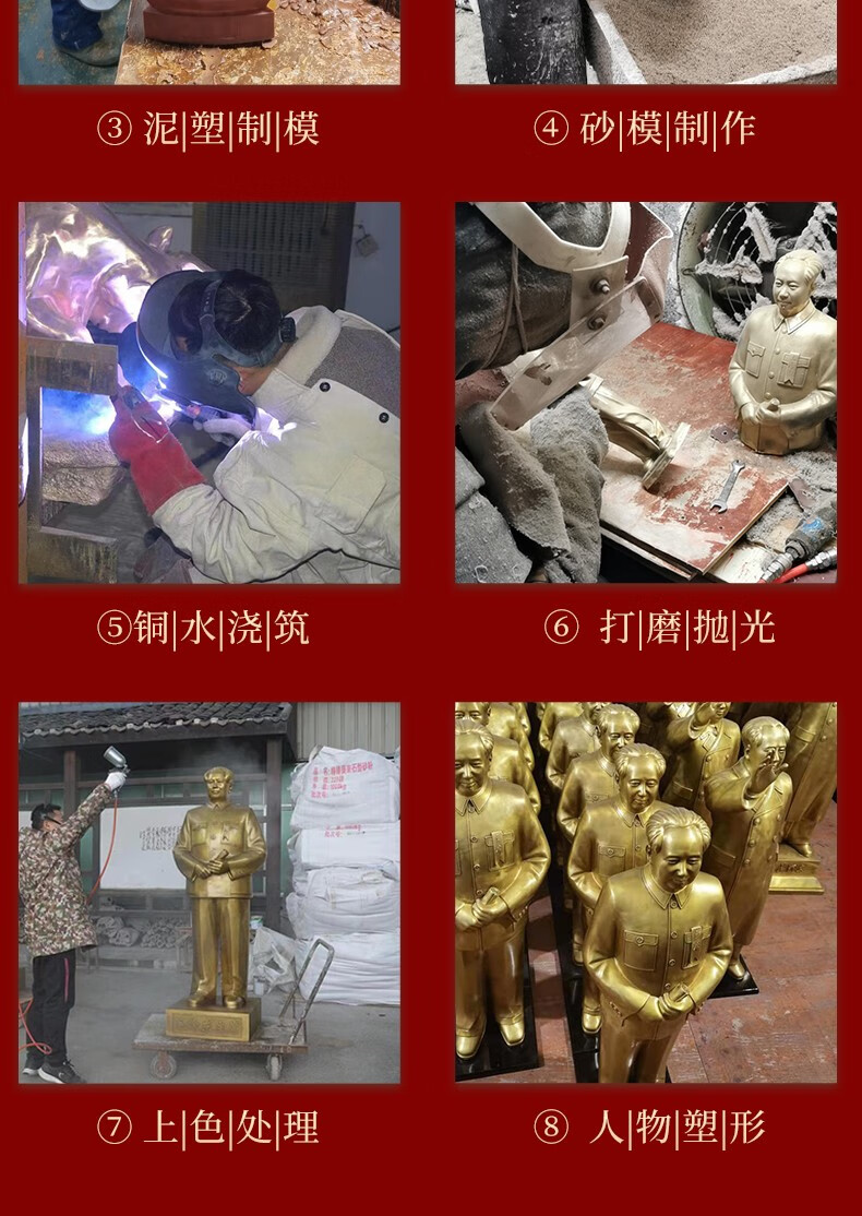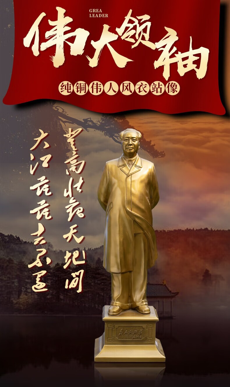 Ai Shao talks about pure brass Chairman Mao's windbreaker like a great man bronze statue living room housewarming gift office study sculpture ornaments 40.8cm back hand like red velvet back cover