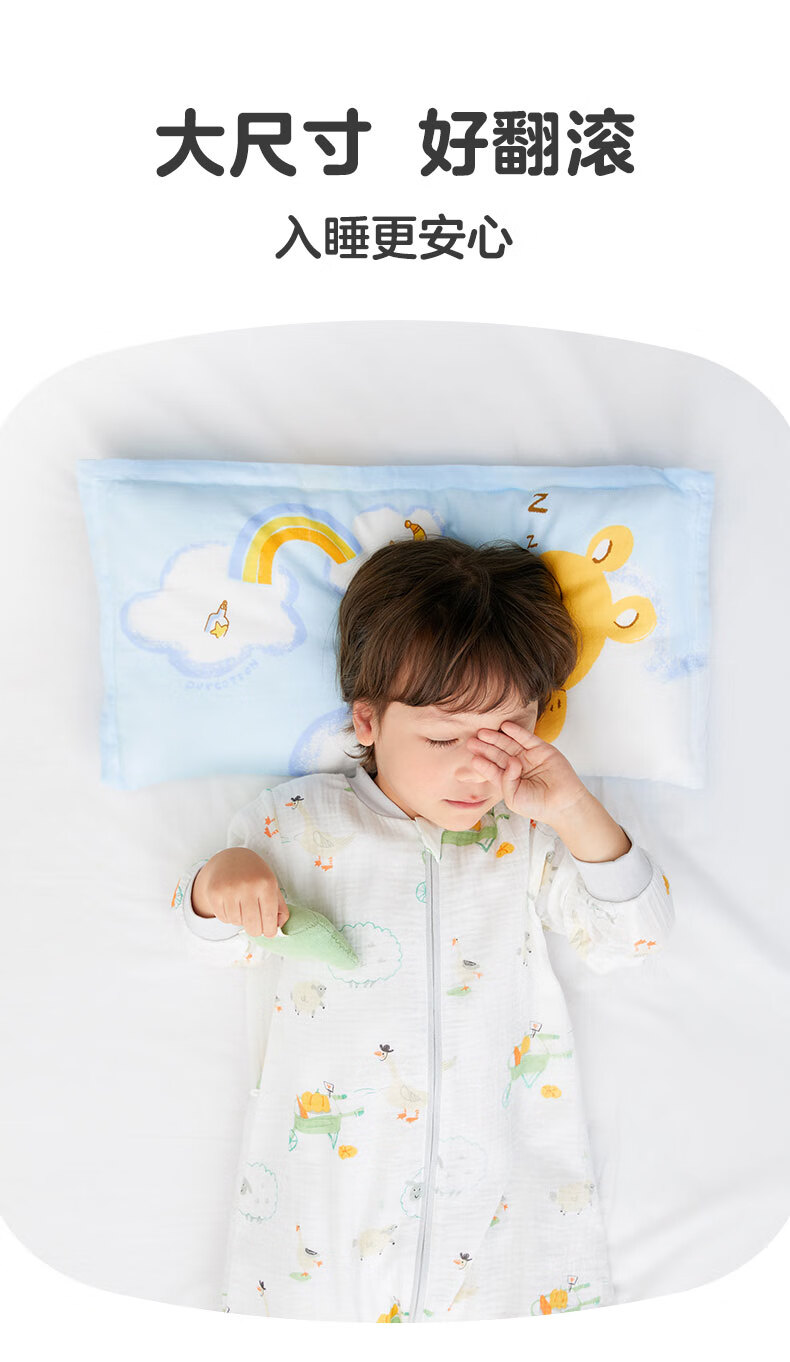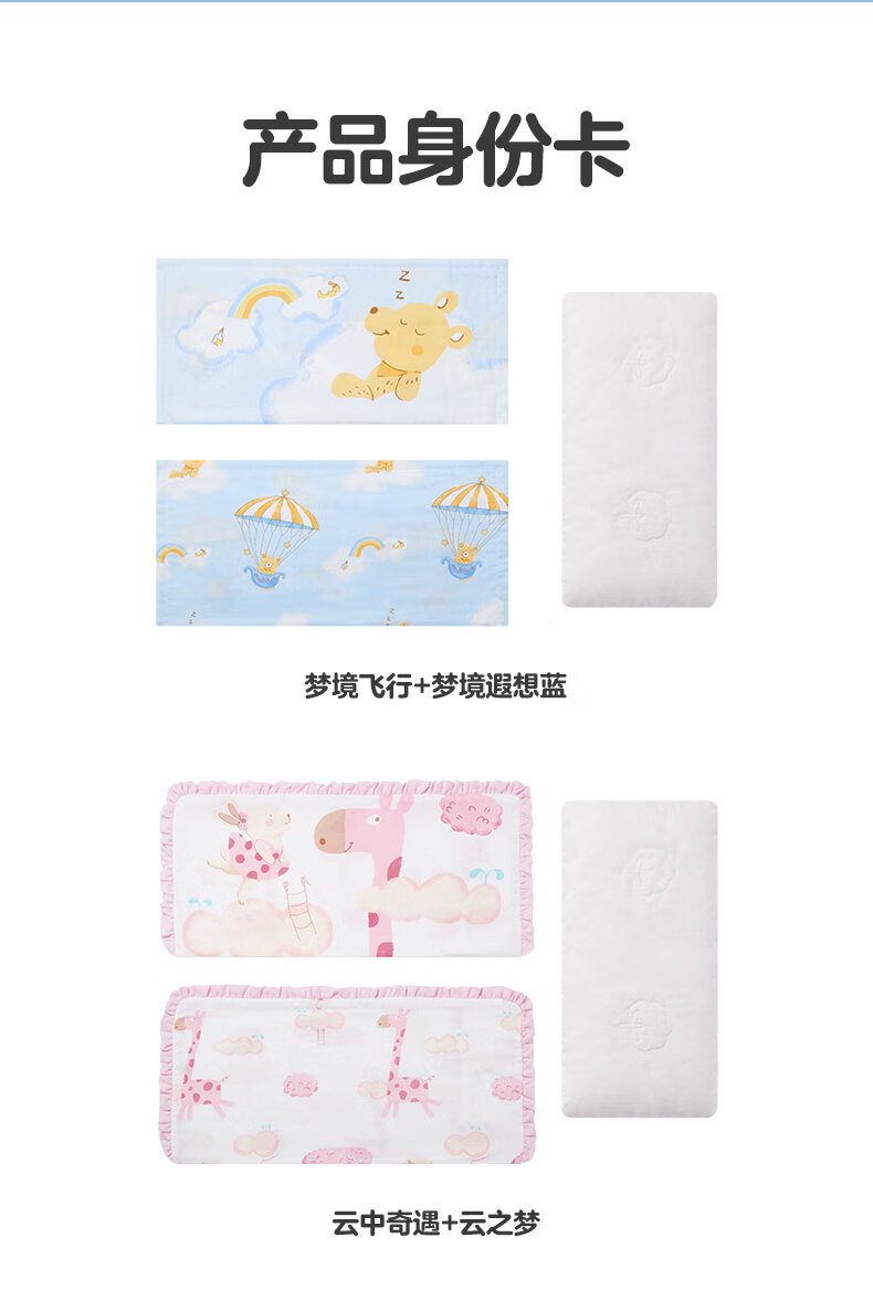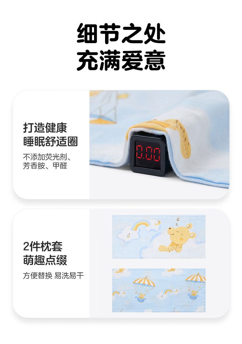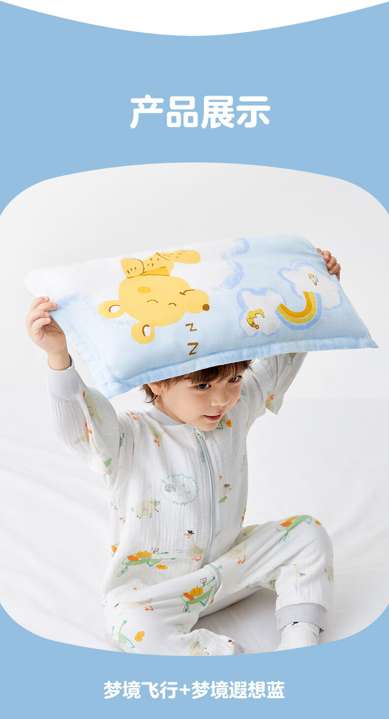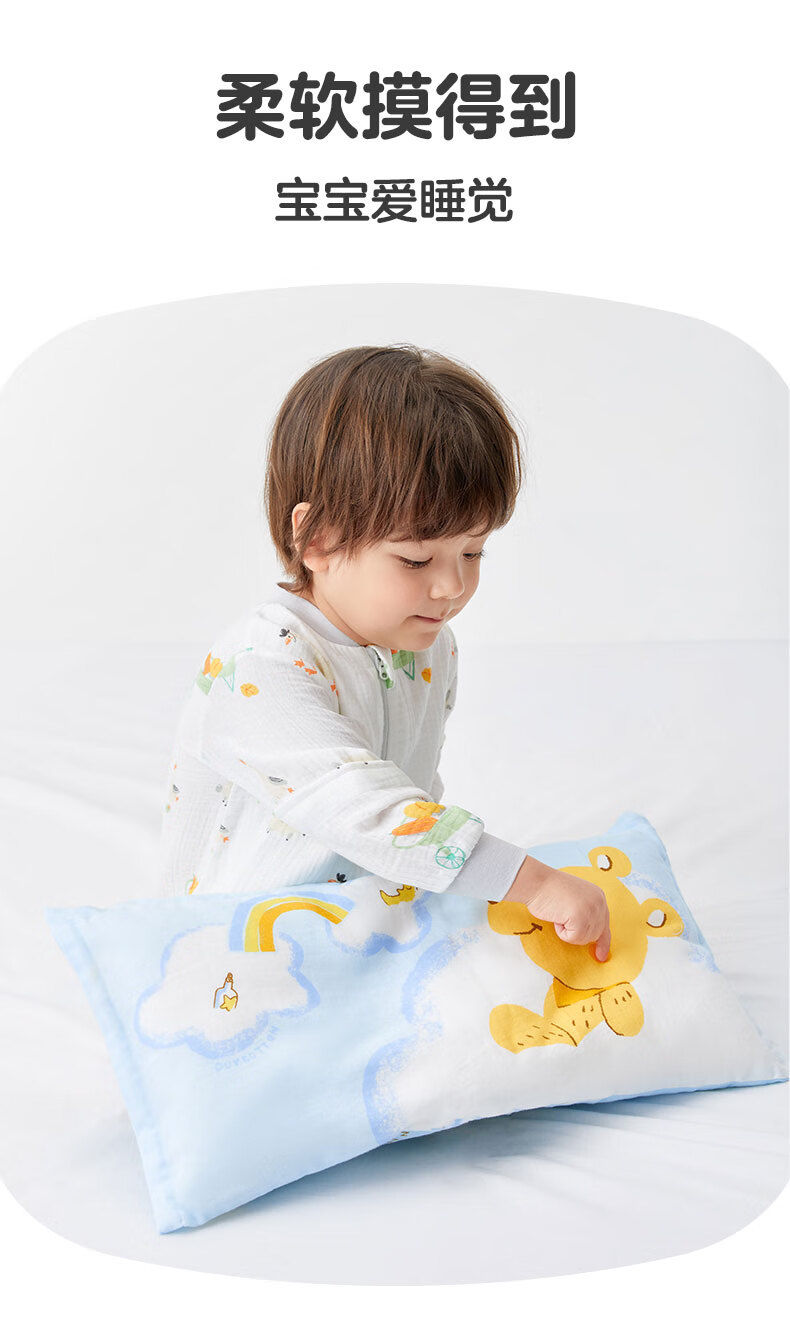 Cotton Era Baby Gauze Square Pillow Combination Baby Pillow Set Four Seasons Children's Pillowcase*2+Pillow Core*1 Pillow Core Not Washable Vanilla Yellow & Bear Afternoon Tea 25cm 50cm