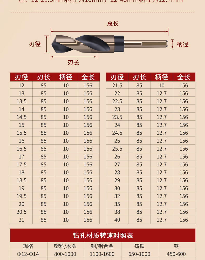 TIANGONG 4341 small shank drill and equal shank drill bit, cobalt-containing metal drilling high-speed steel shrinking shank twist drill stainless steel special 16mm