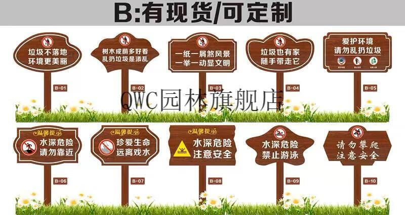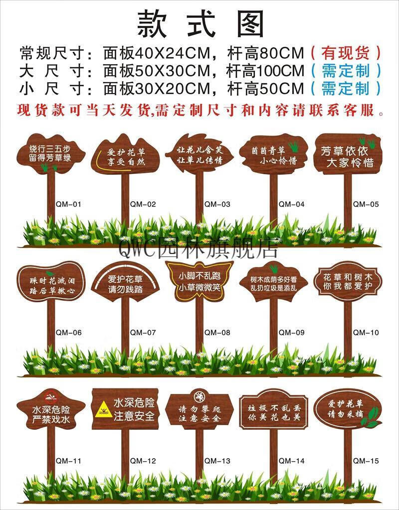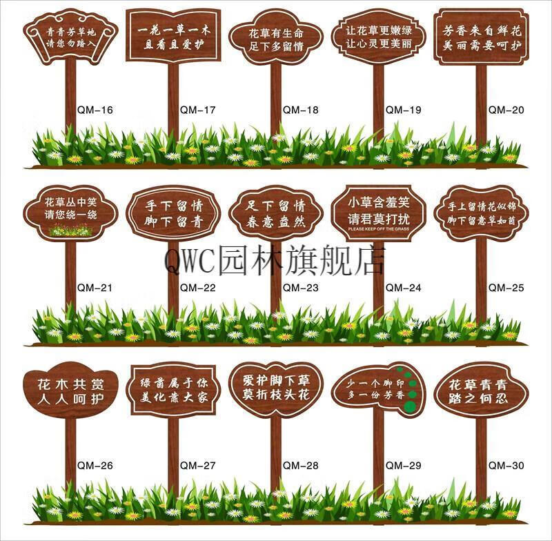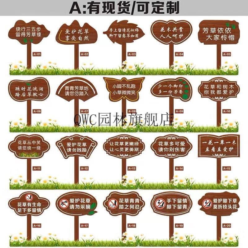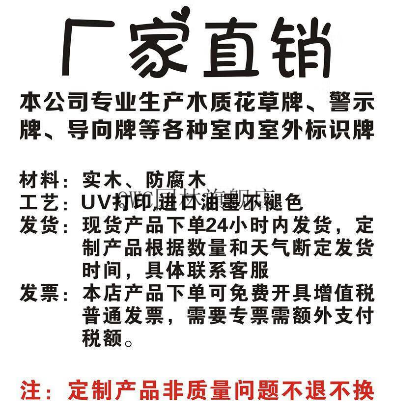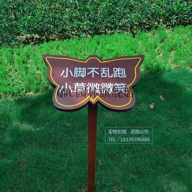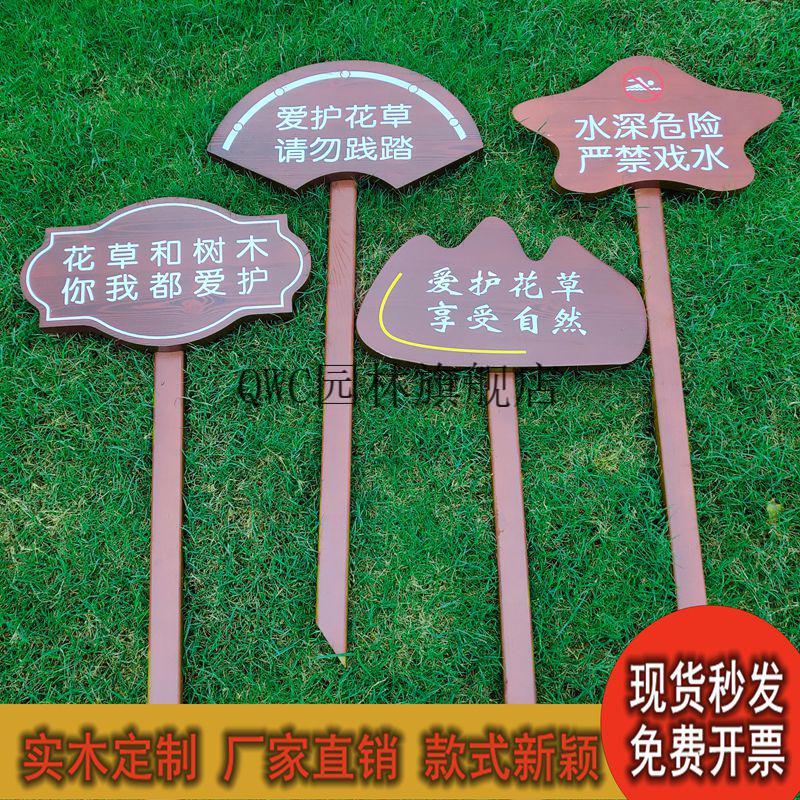 Solid wood care for flowers and grass warning sign, garden greening and ground sign, grass lawn prompt sign, advertising placard customization, small size 30X20cm, pole height 50cm, place an order