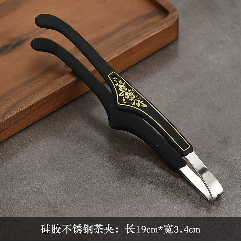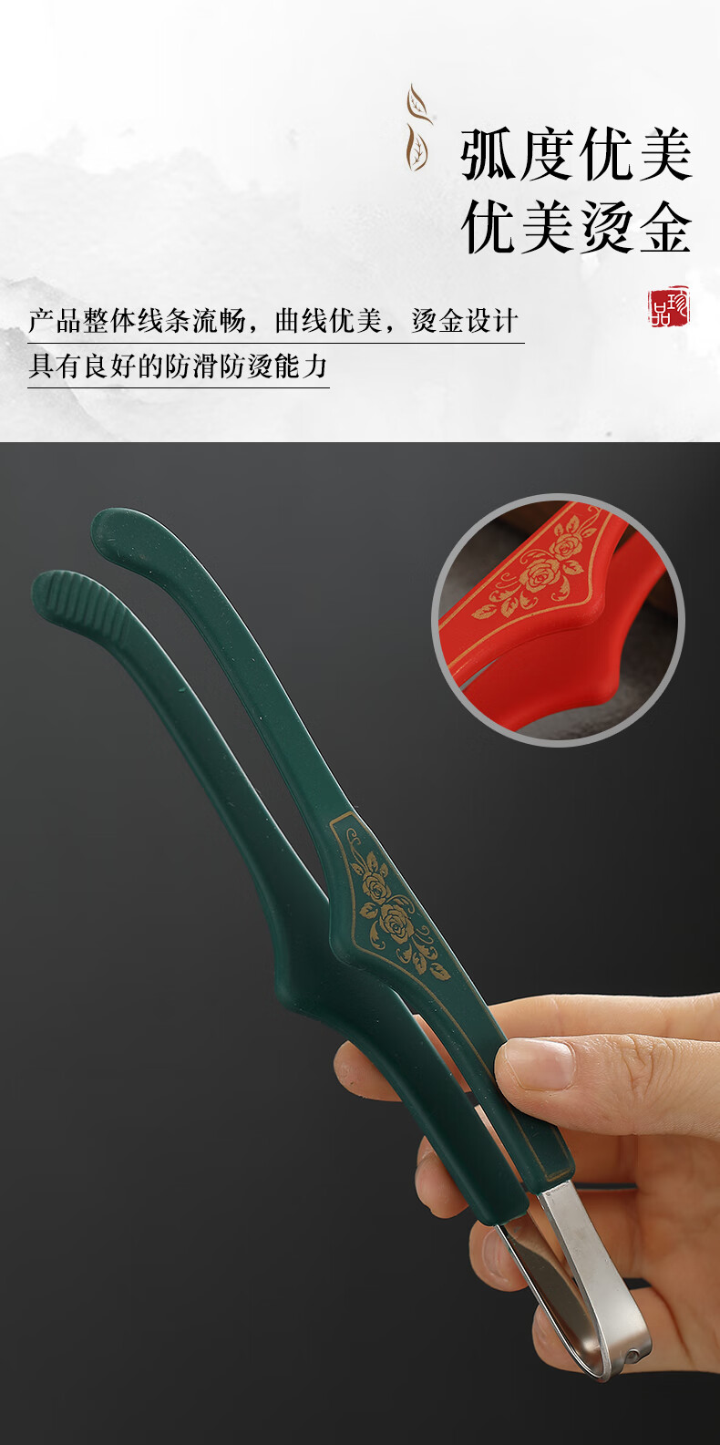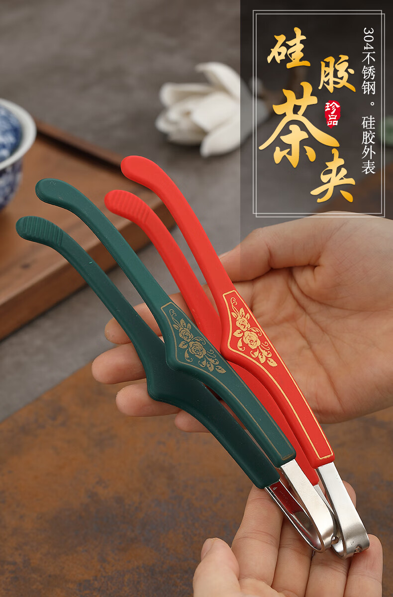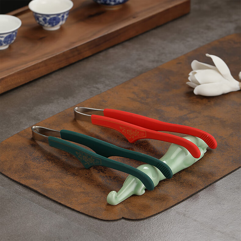 Bifa silicone high-grade stainless steel tea clip non-slip tea cup clip household kung fu tea tweezers tea set accessories set silicone stainless steel tea clip - green