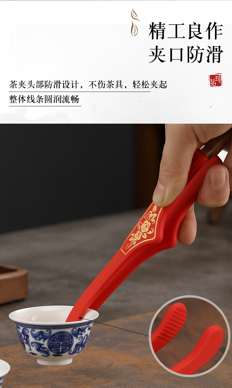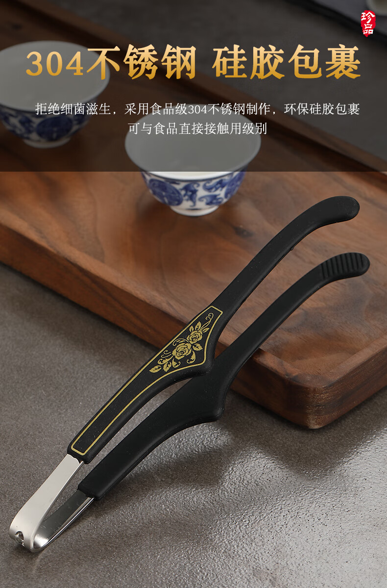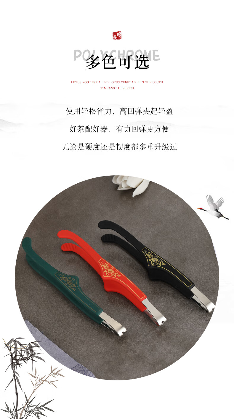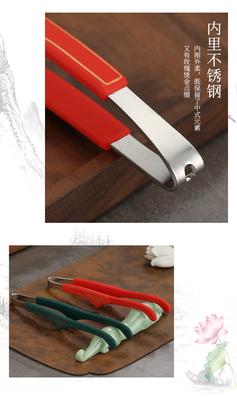 Bifa silicone high-grade stainless steel tea clip non-slip tea cup clip household kung fu tea tweezers tea set accessories set silicone stainless steel tea clip - green