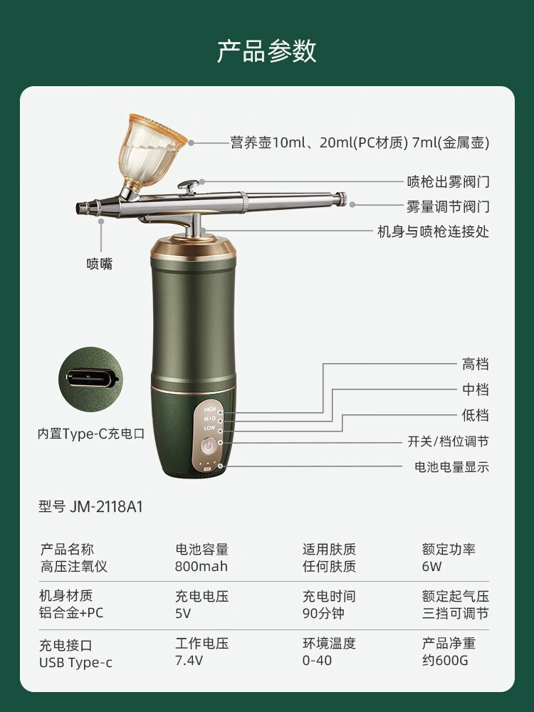 Magoli oxygen meter handheld household nano spray hydration special facial essence water high pressure oxygen water oxygen meter March 8th Goddess Day Valentine's Day girlfriend birthday gift green