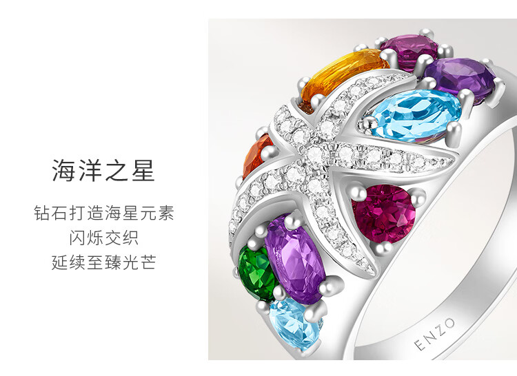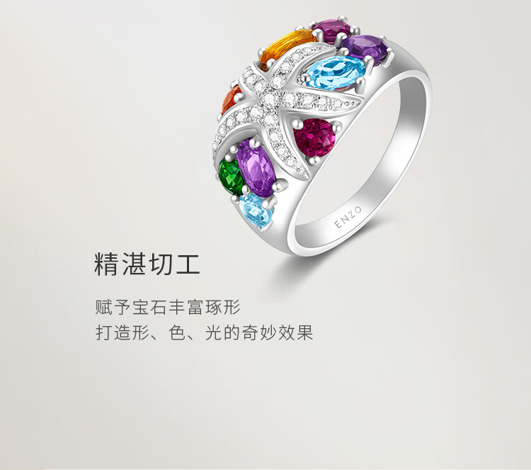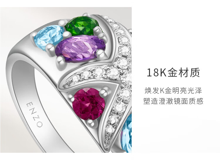Chow Tai Fook ENZO Ocean Series 18K Gold Colorful Gemstone Diamond Ring Women EZV3734 Birthday Gift No. 13