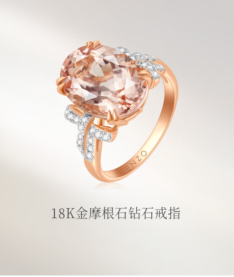 Chow Tai Fook ENZO Classic Colorful 18K Gold Morganite Diamond Ring for Women EZV6512 Birthday Gift No. 11