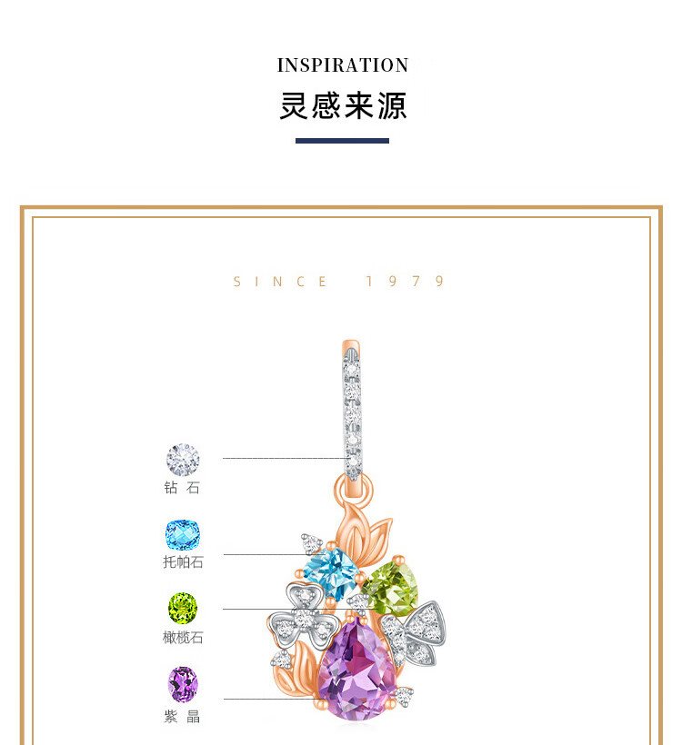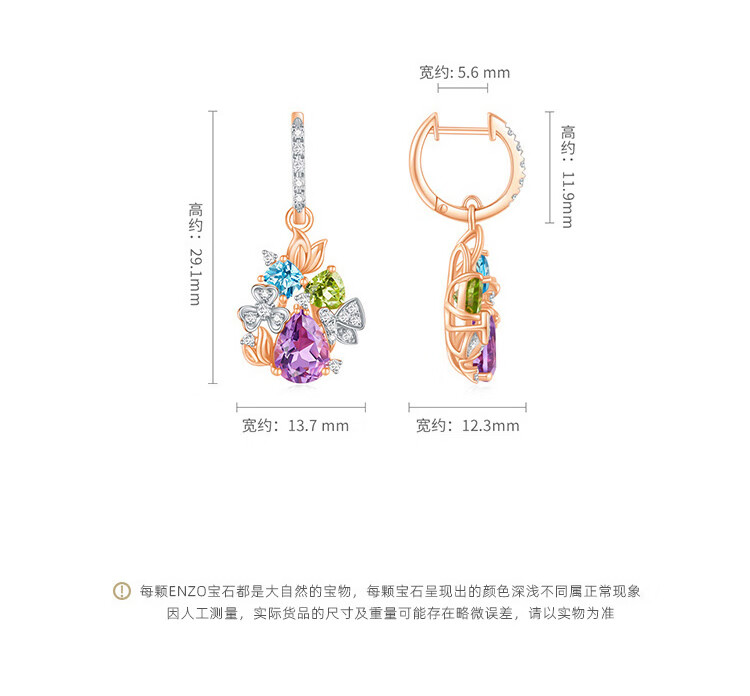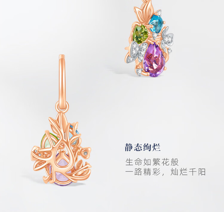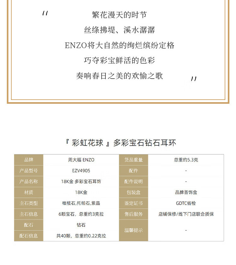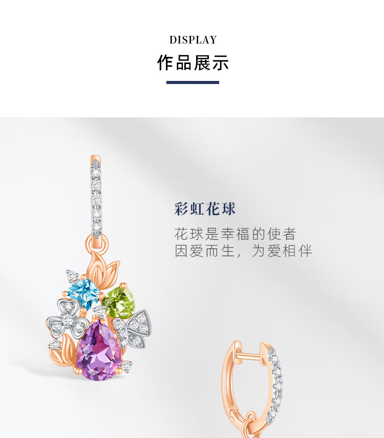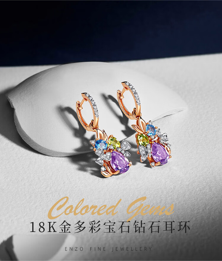 Chow Tai Fook ENZO Rainbow Flower Ball 18K Gold Colorful Gemstone Diamond Earrings for Women EZV4905 Birthday Gift EZV4905