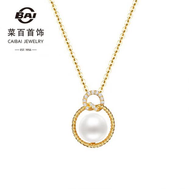 Cai Bai Jewelry 18K gold inlaid pearl pendant Light luxury niche 18K gold braided ring pearl necklace pendant for women ZZ white 18K (yellow) gold pearl pendant