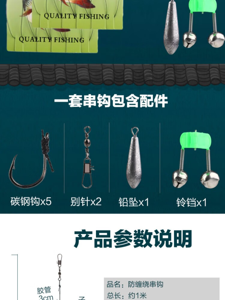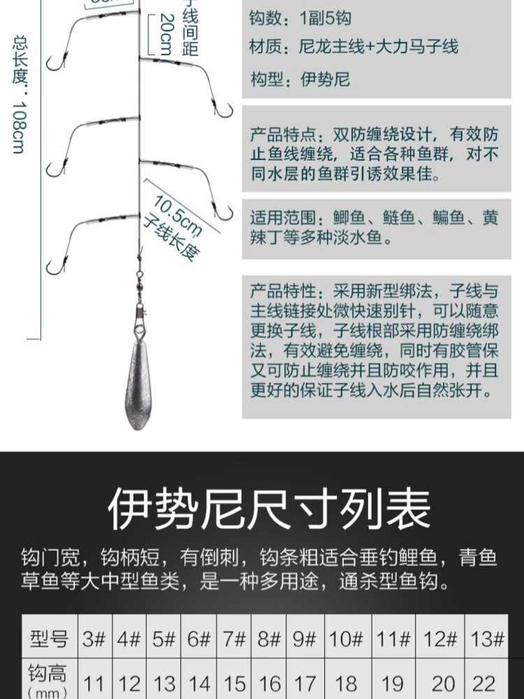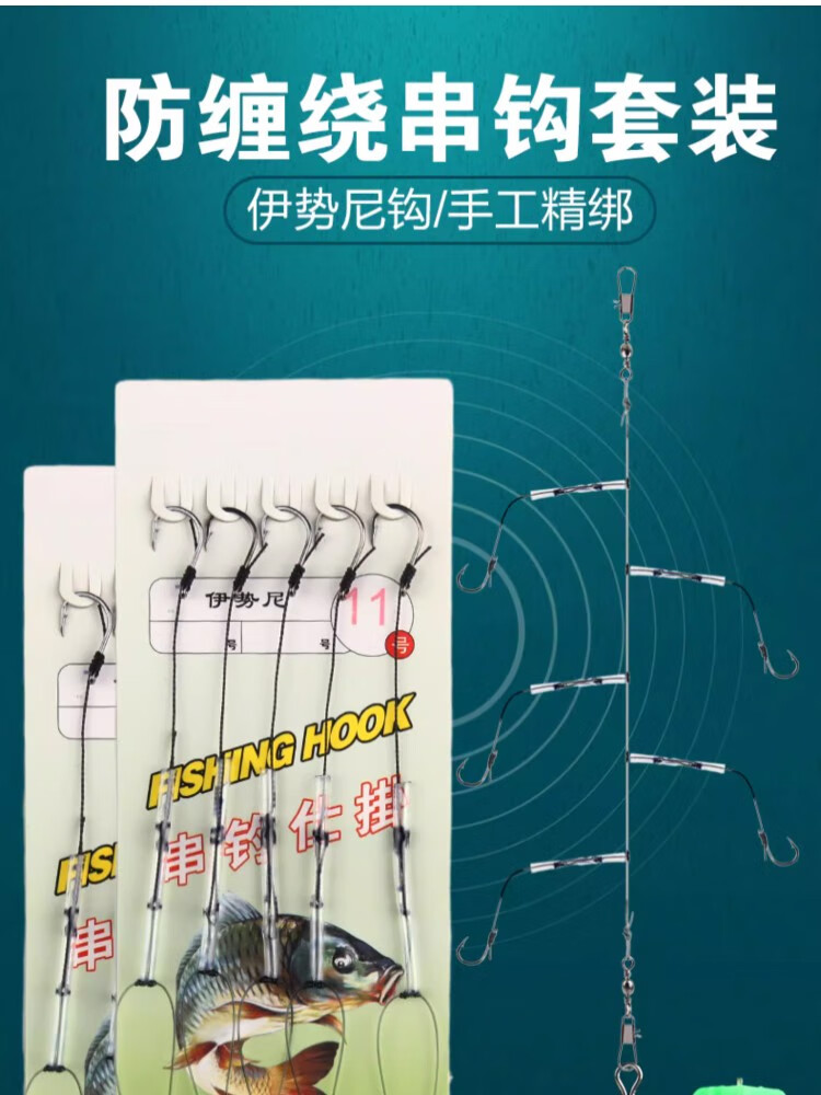 Katsumaru Anti-Tangle String Hook Fishing Line Set Fishhook Dense Horse Line String Fishing Set Throwing Rod Sea Rod Hose String Hook Crucian Carp Hook 5 Pack (No Accessories) No. 7