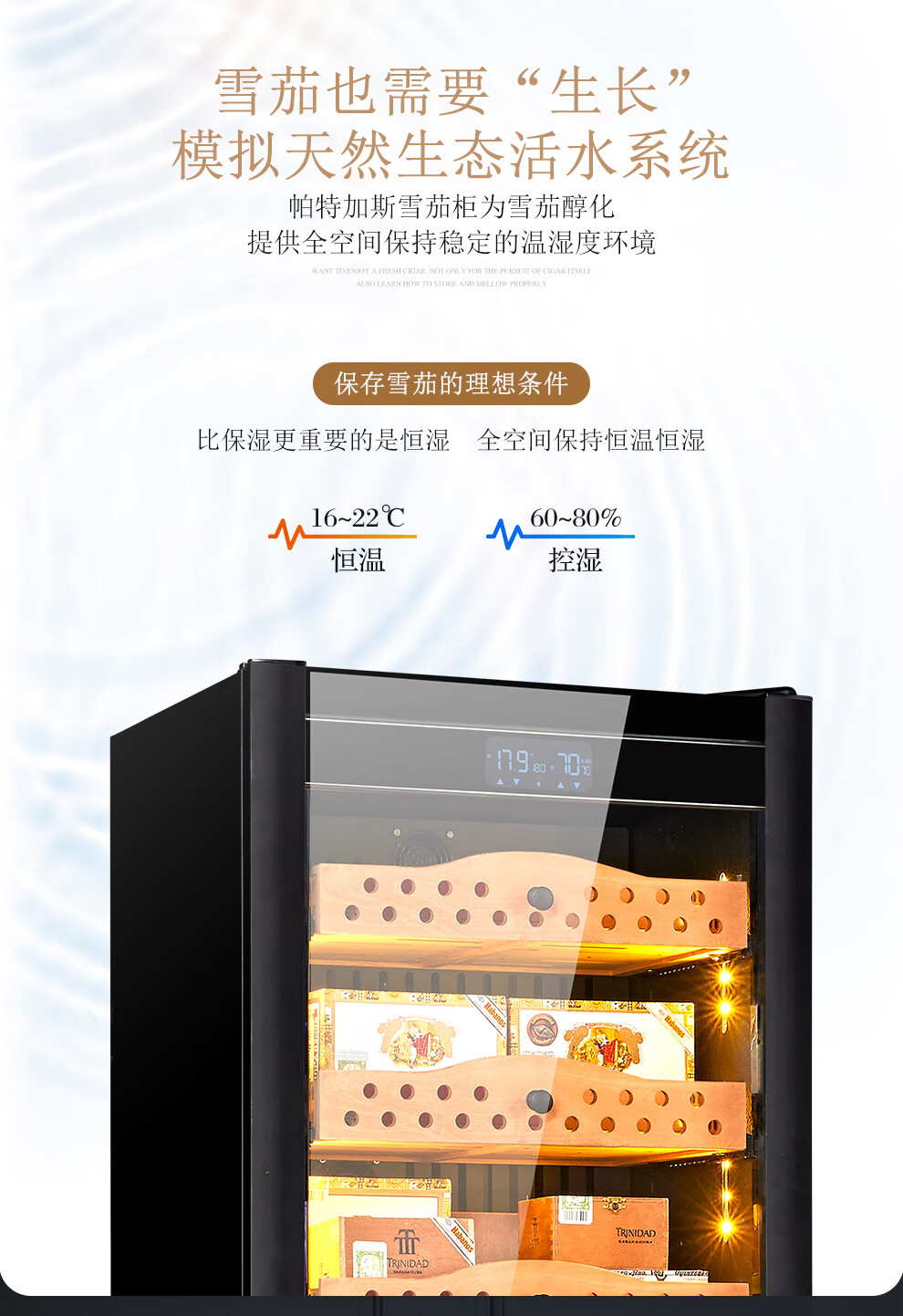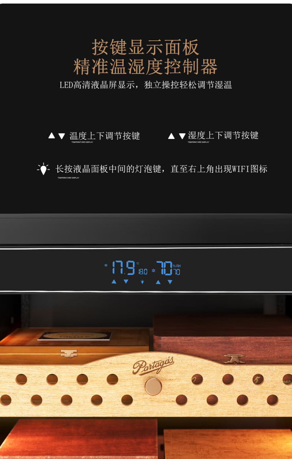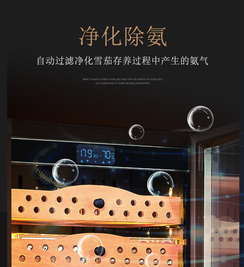Partagas Constant Temperature and Humidity Humidor Cabinet Home Temperature and Humidity Control Humidification Cabinet Purification and Ammonia Removal for Eggplant Raising Spanish Cedar Wooden Box Raising Naked 1260MM High/Black 191L