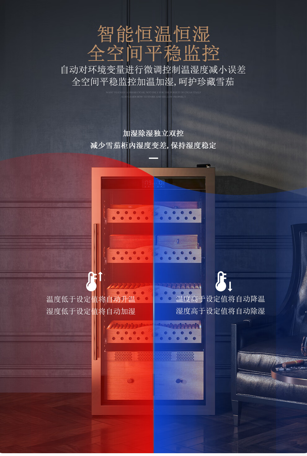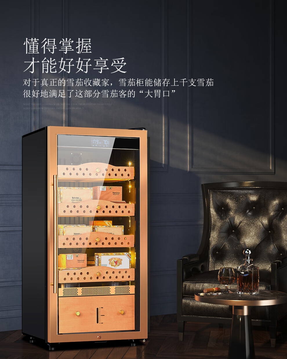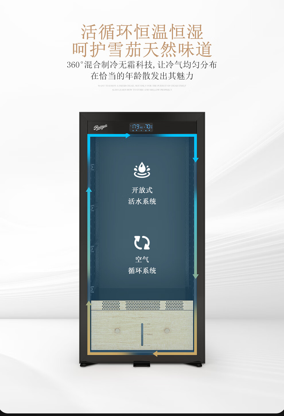 Partagas Constant Temperature and Humidity Humidor Cabinet Home Temperature and Humidity Control Humidification Cabinet Purification and Ammonia Removal for Eggplant Raising Spanish Cedar Wooden Box Raising Naked 1260MM High/Black 191L