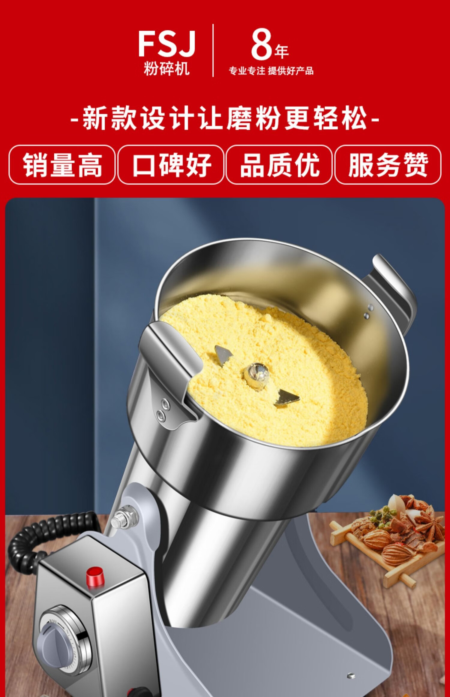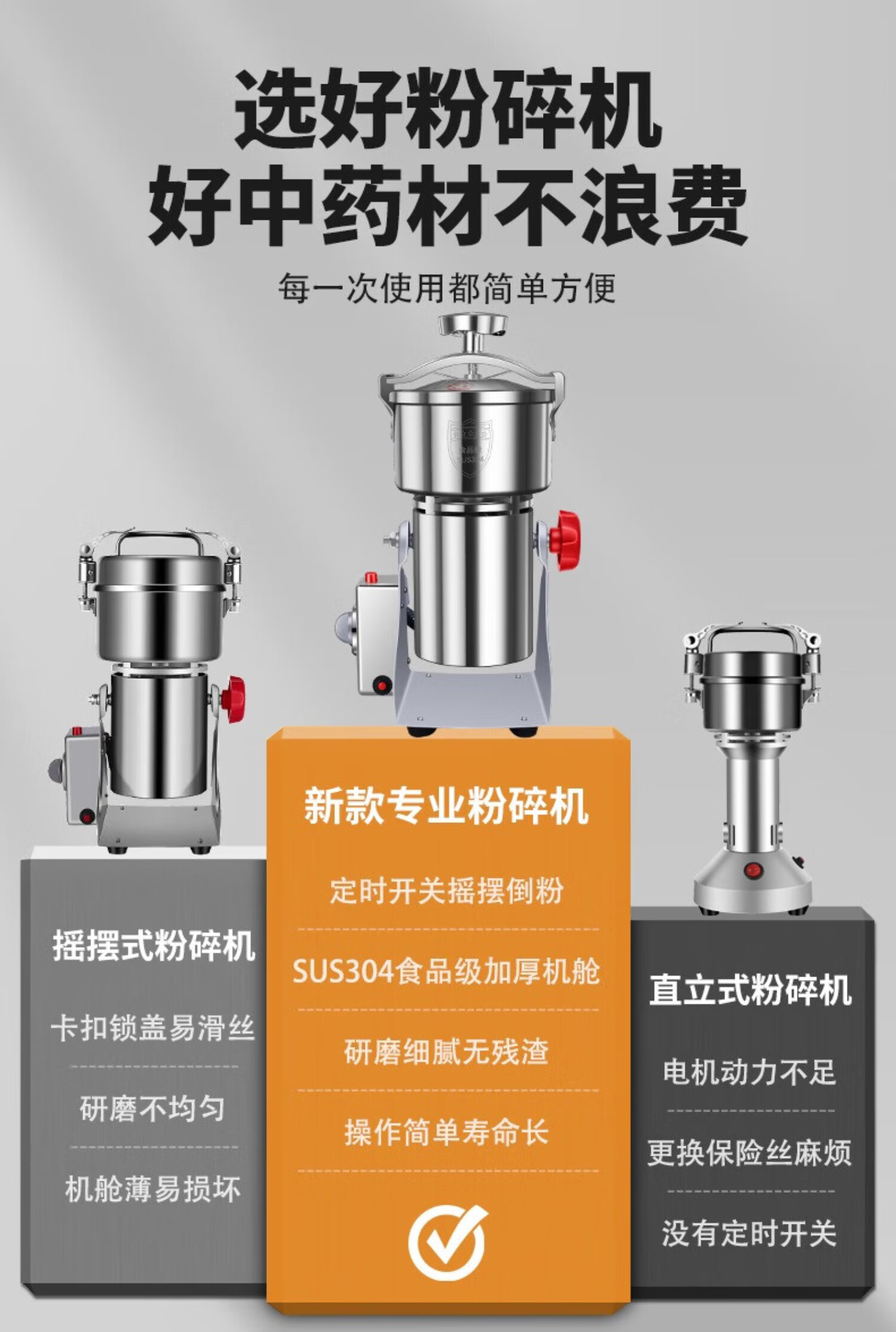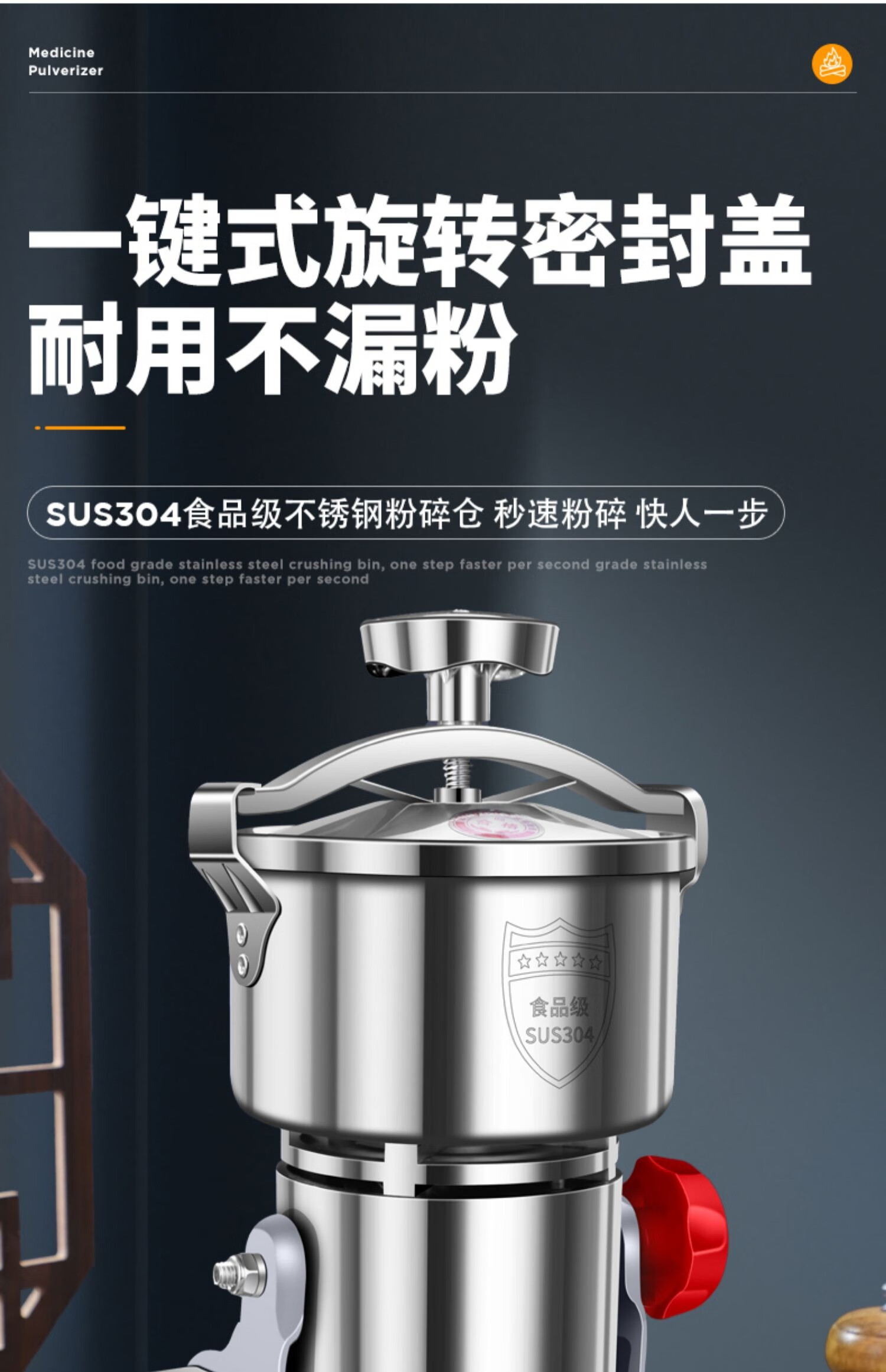 Jingyan traditional Chinese medicine grinder household grinder ultra-fine grinder multi-functional grain grinder notoginseng medicinal grinder pepper corn seasoning grinder electric commercial high power swing 1000A seal upgrade/304 stainless steel