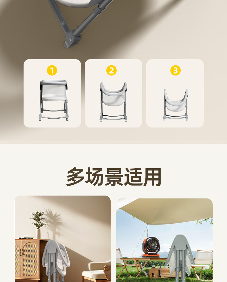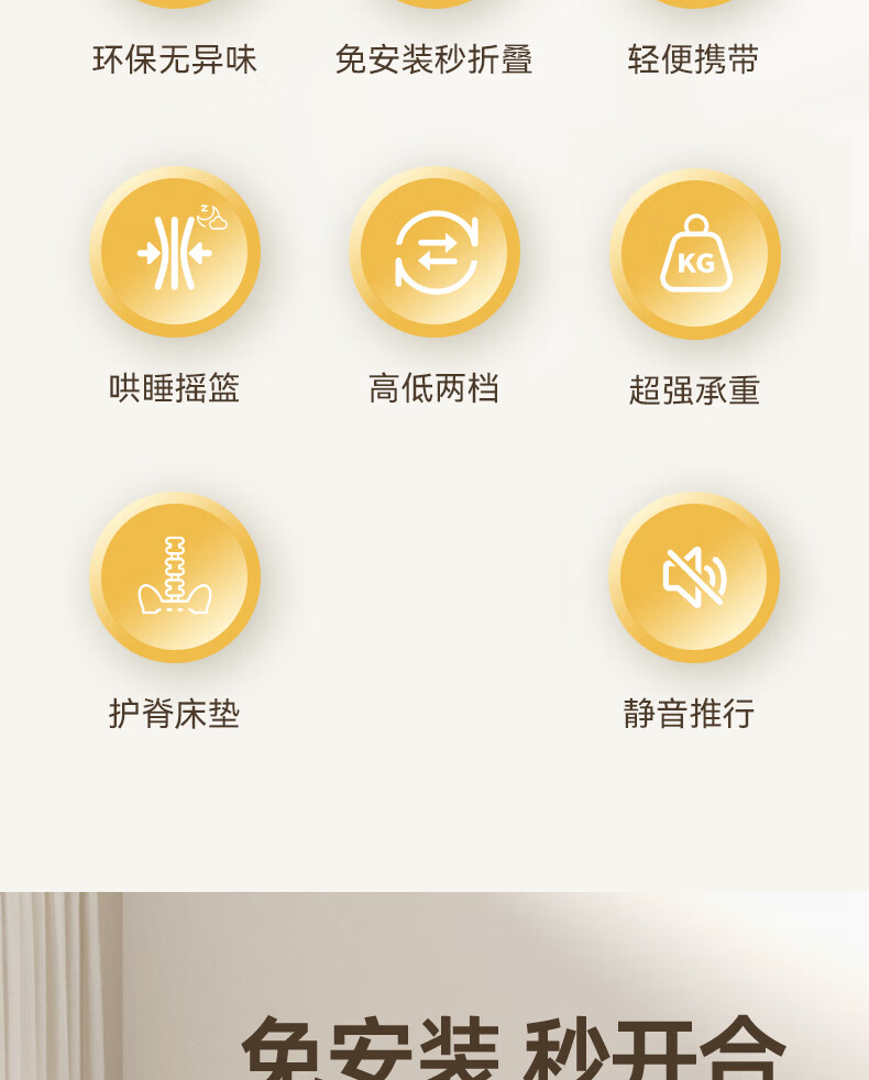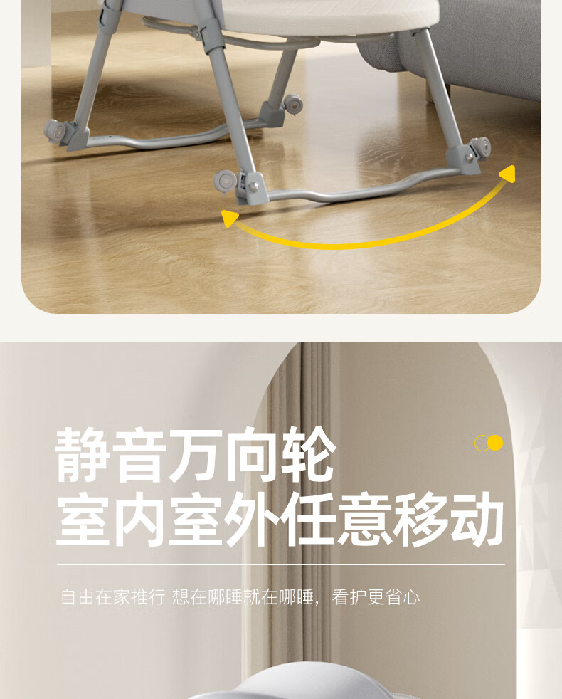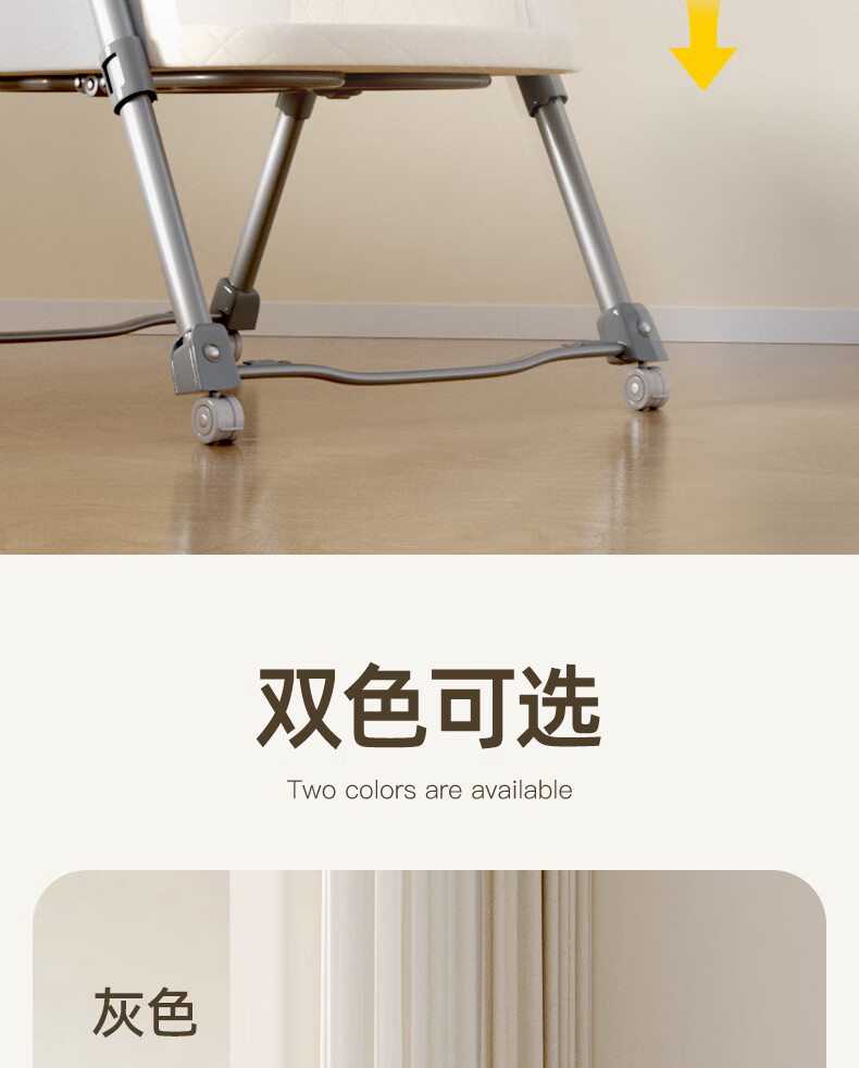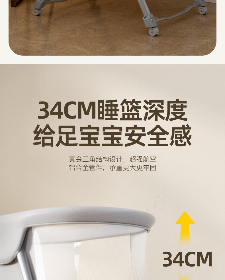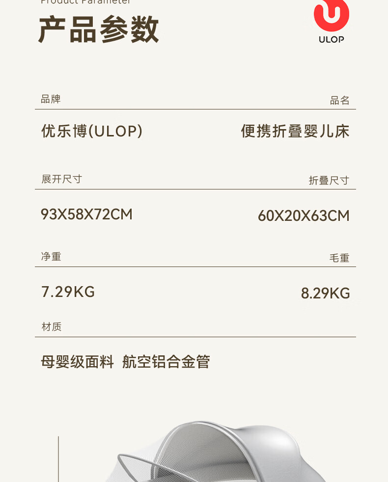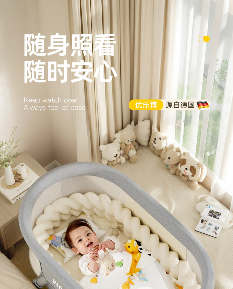 ULOP crib multi-functional mobile baby cradle one-click folding newborn bb rocking bed portable sleep artifact free installation nap bed + mosquito net + mattress khaki