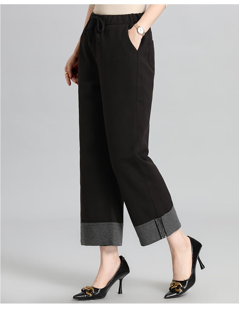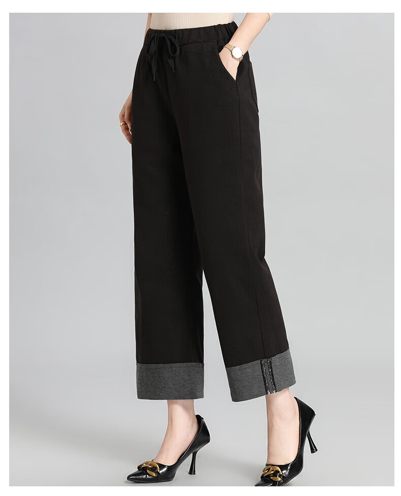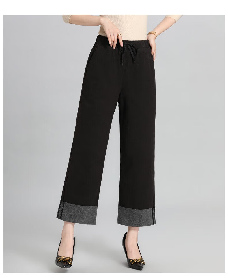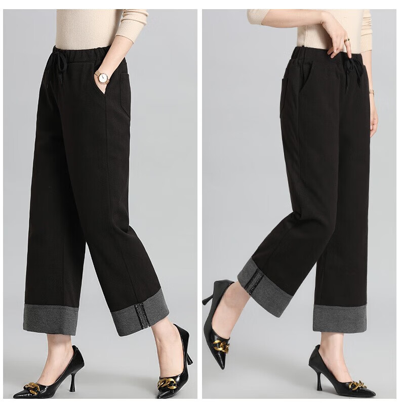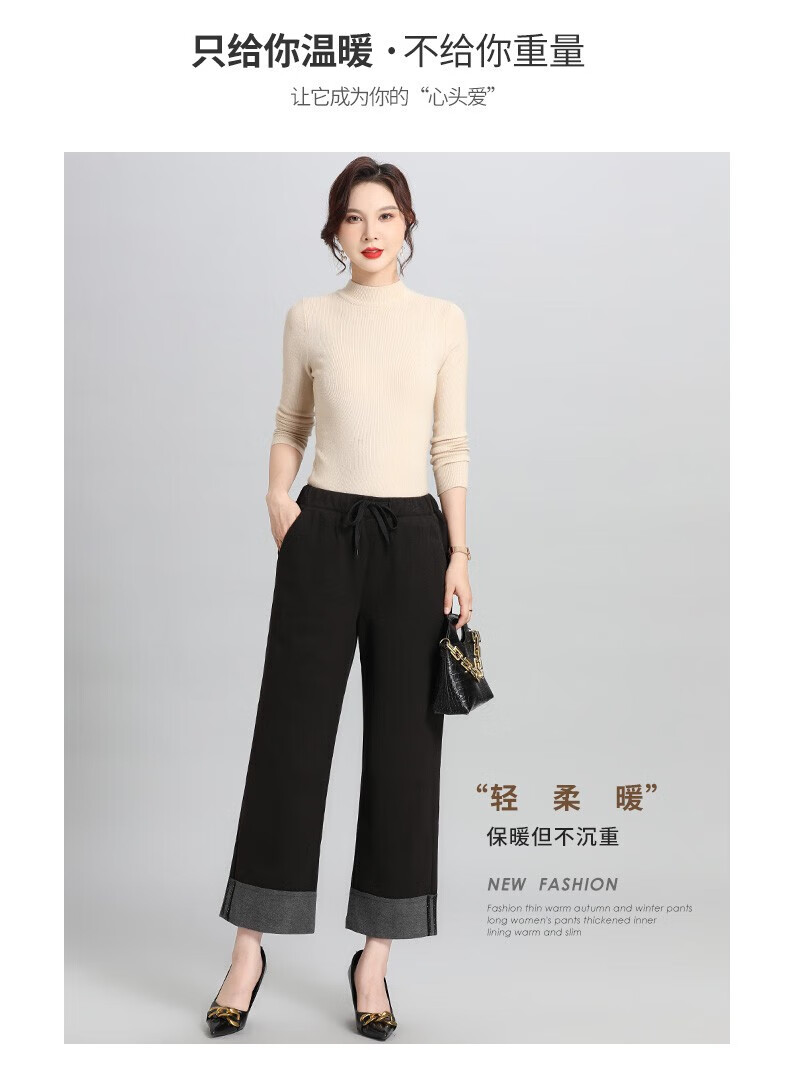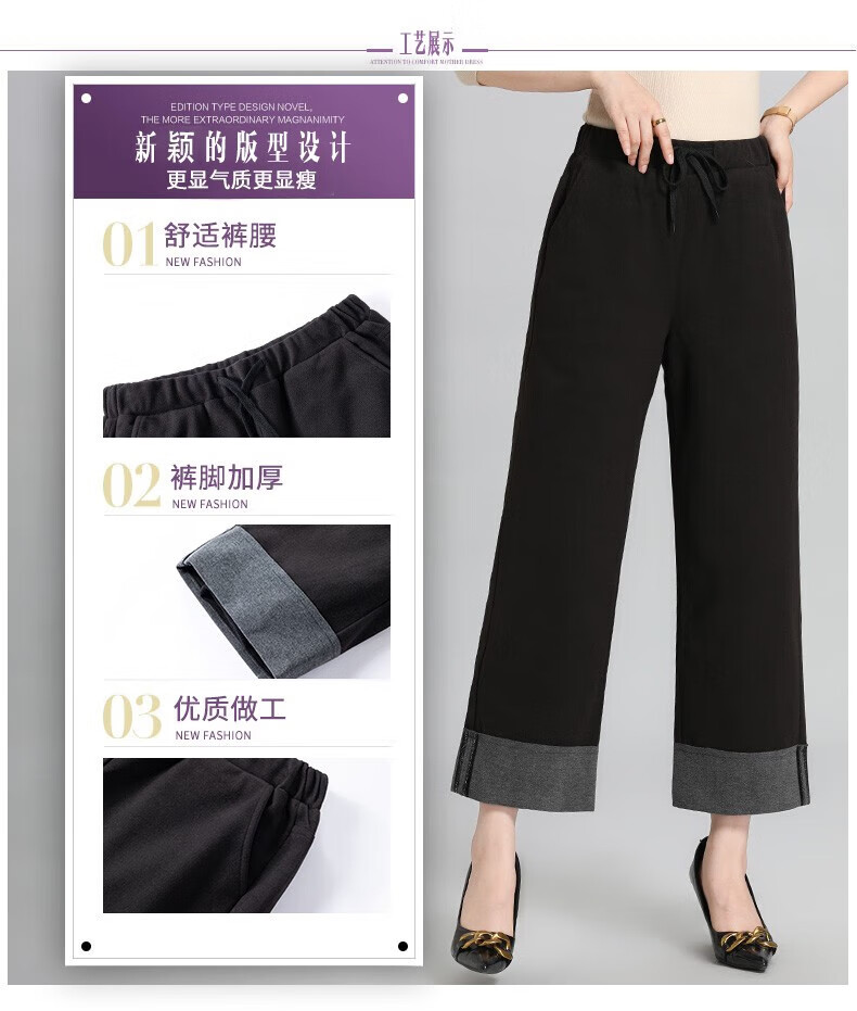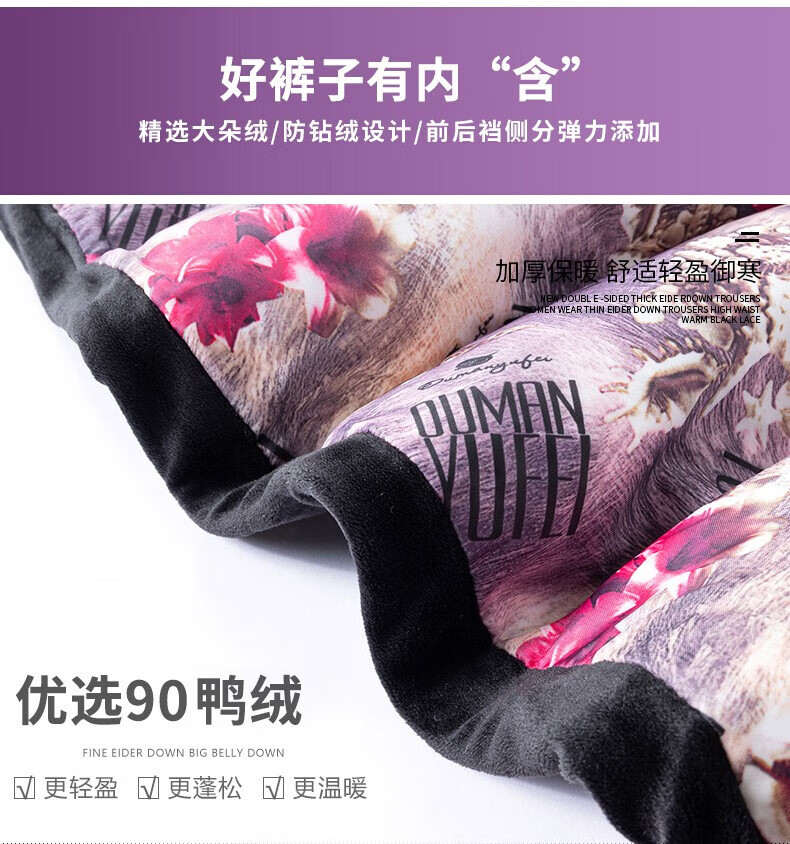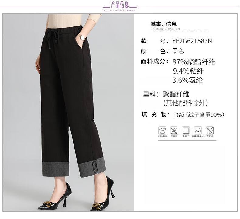 Duck down pants outer wear nine-point pants loose wide-leg pants straight winter warm and thickened XY black XL