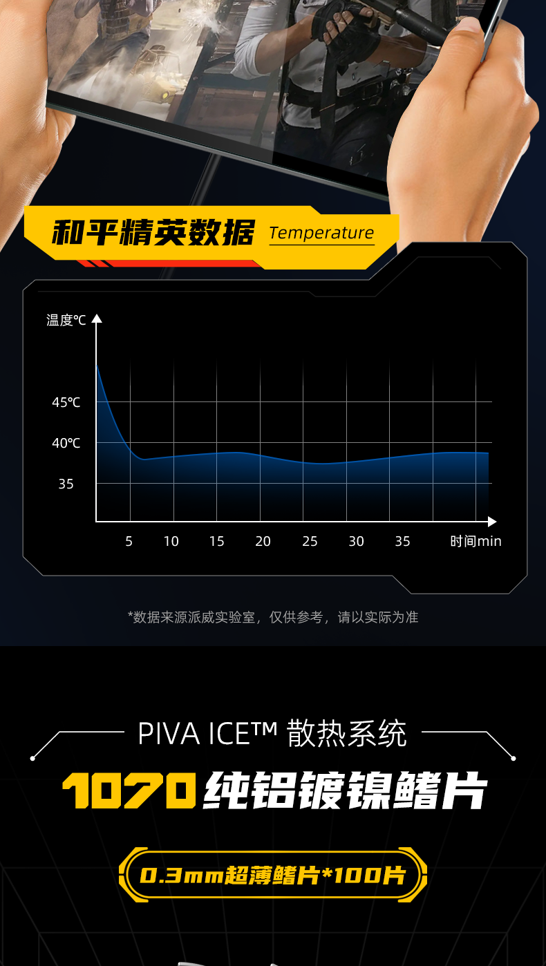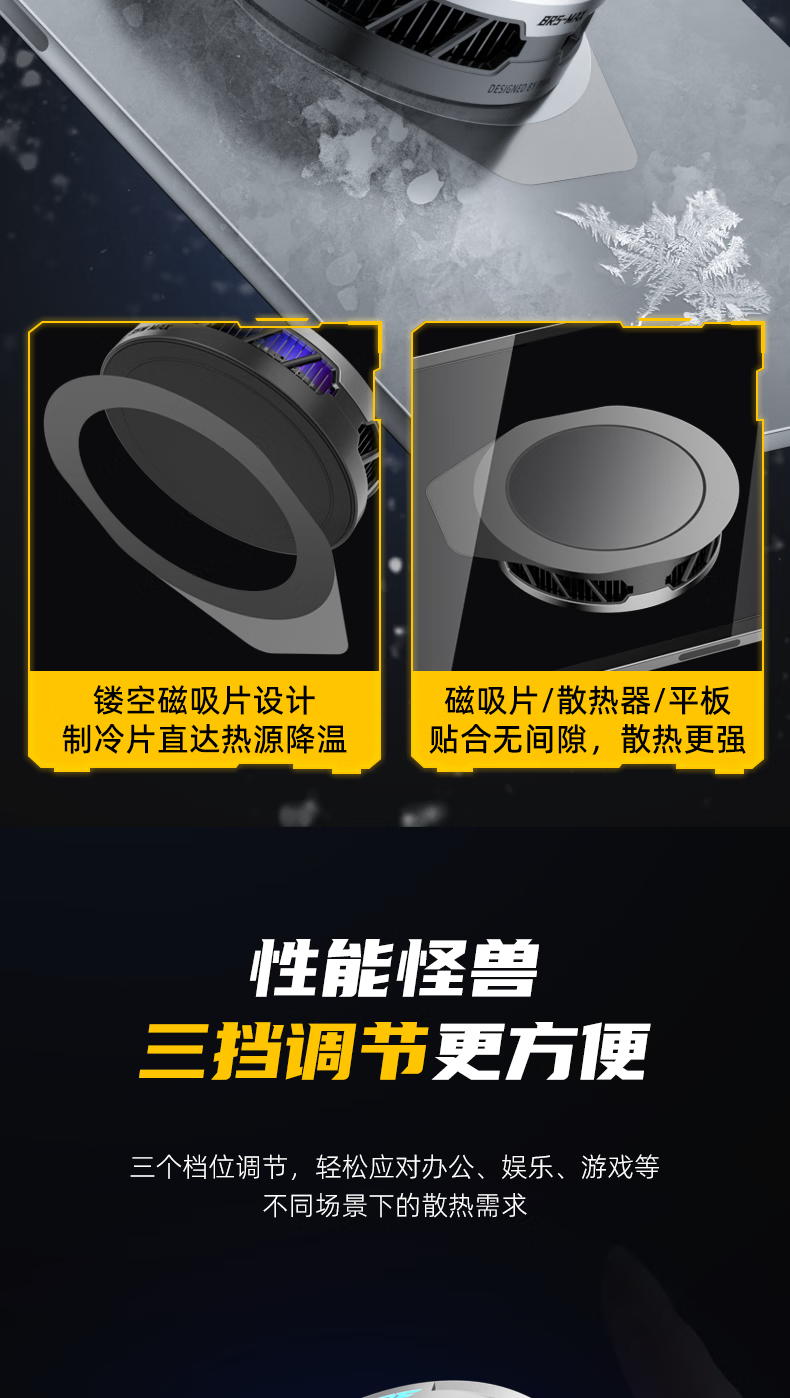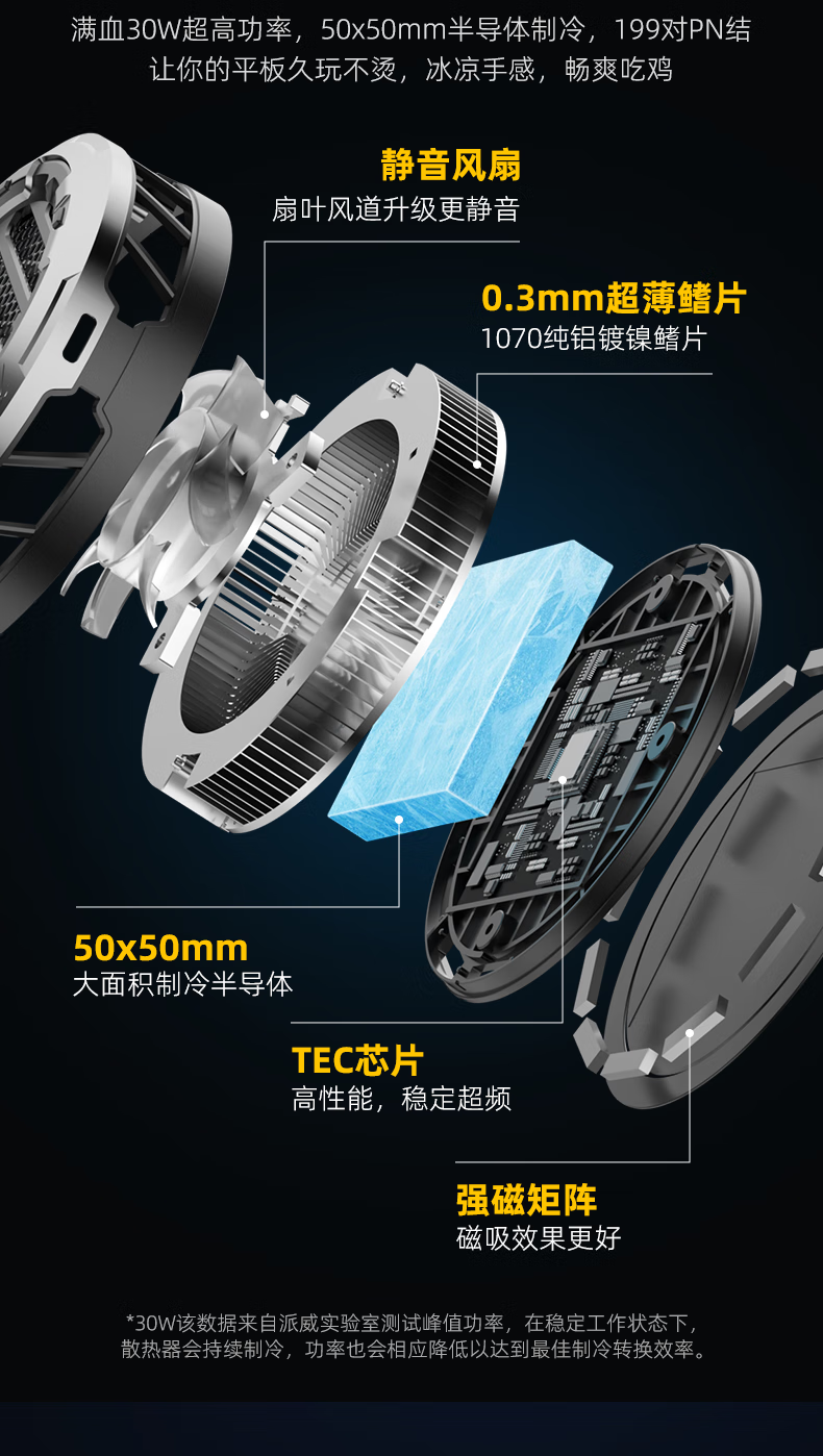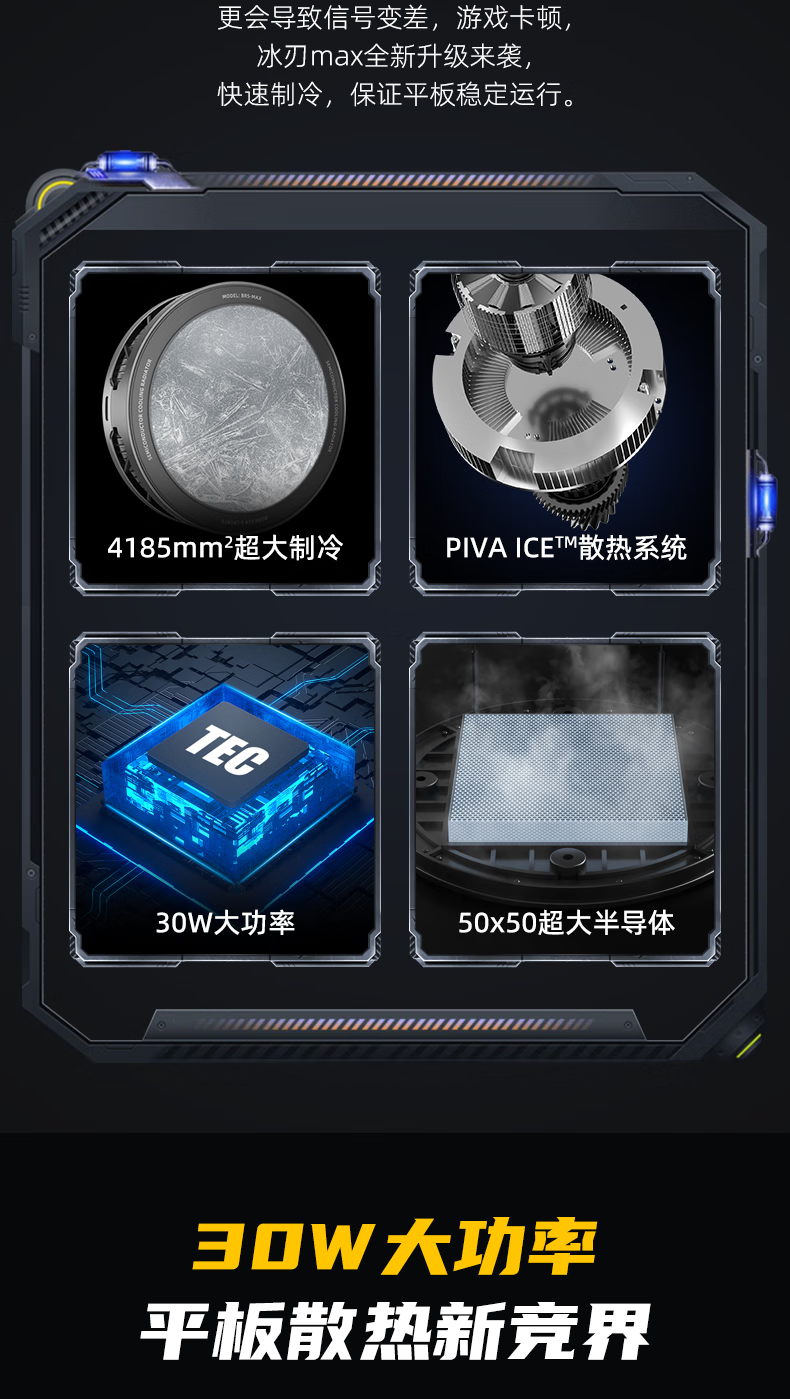 Piva Paiwei Ice Blade Max tablet radiator magnetic heat dissipation semiconductor refrigeration cooling artifact ipad chicken game b2max is suitable for Apple Xiaomi Huawei oppo cooling area upgrade Ice Blade MAX tablet model requires the use of a 45-watt PD charging head to achieve full power