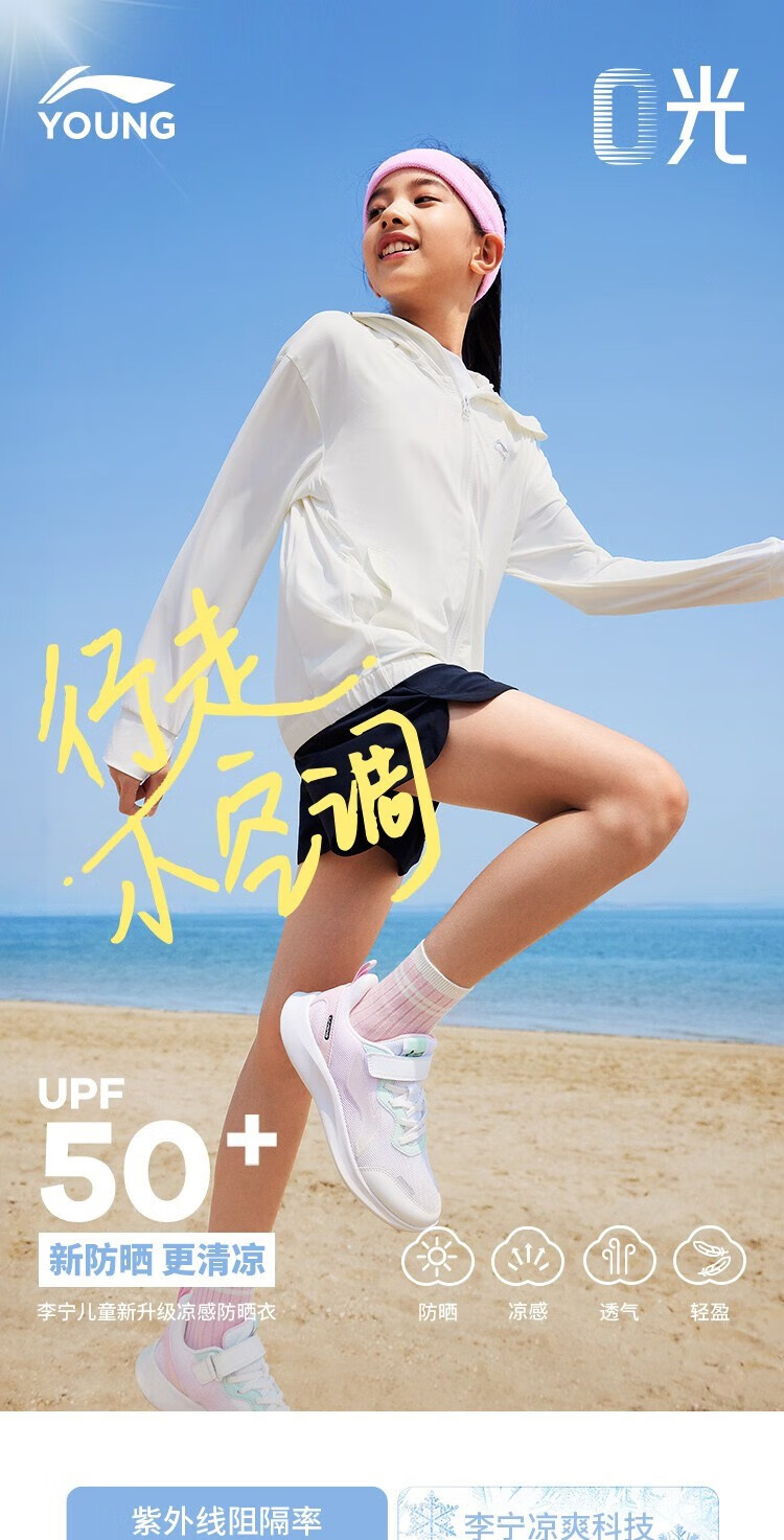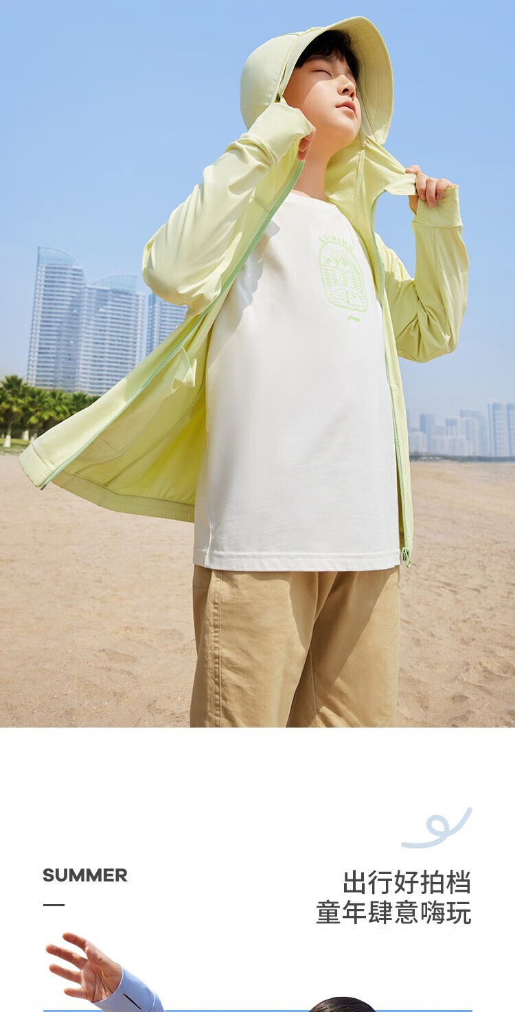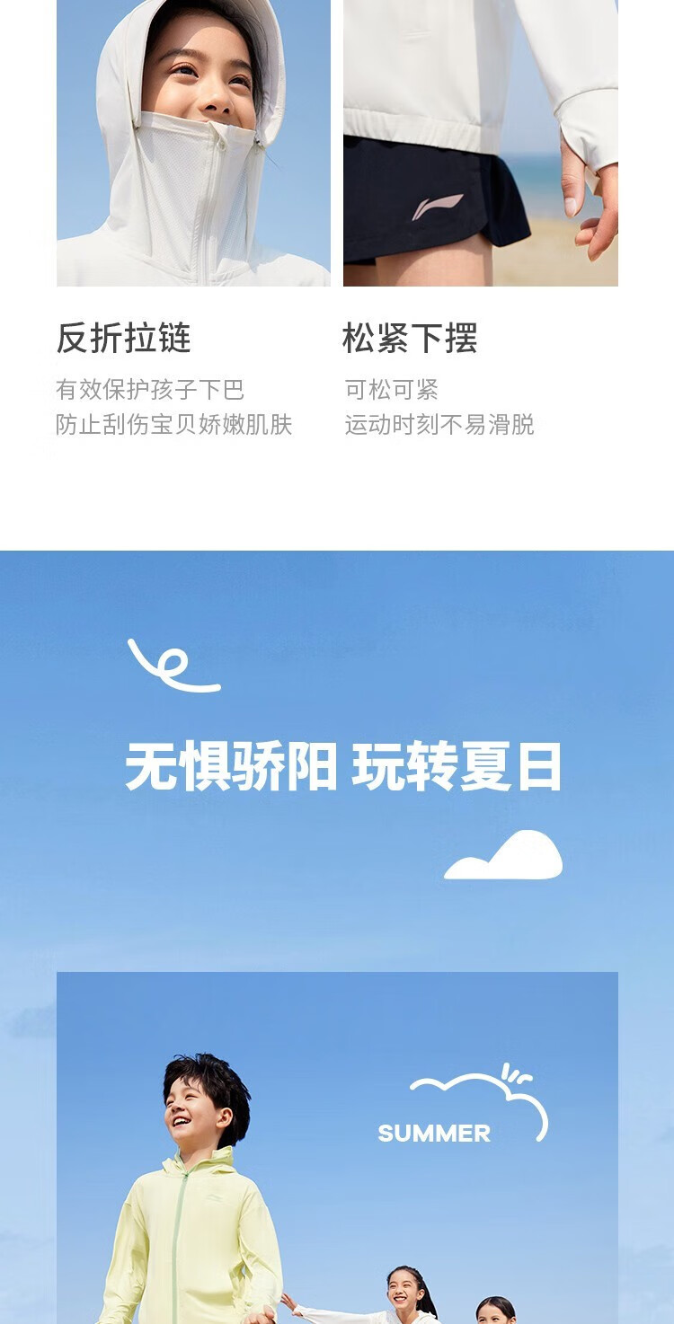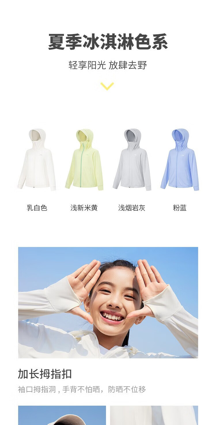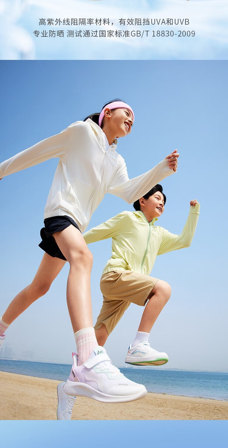 Li Ning (LI-NING) children's clothing, children's skin clothing, summer new sports cardigan, men's and women's hooded lightweight sun protection clothing, milky white-1 120
