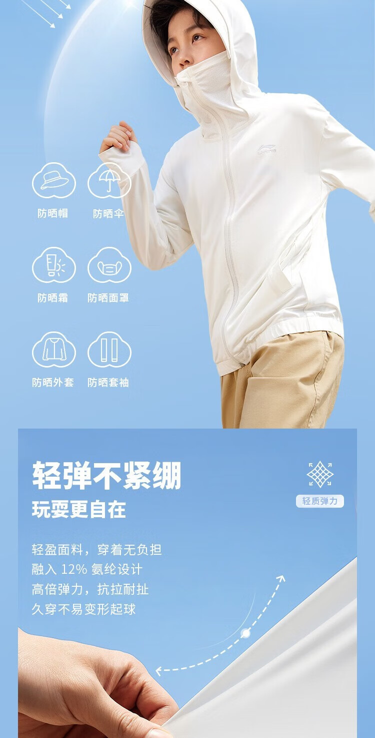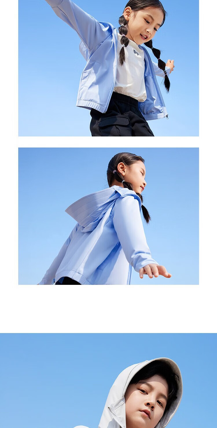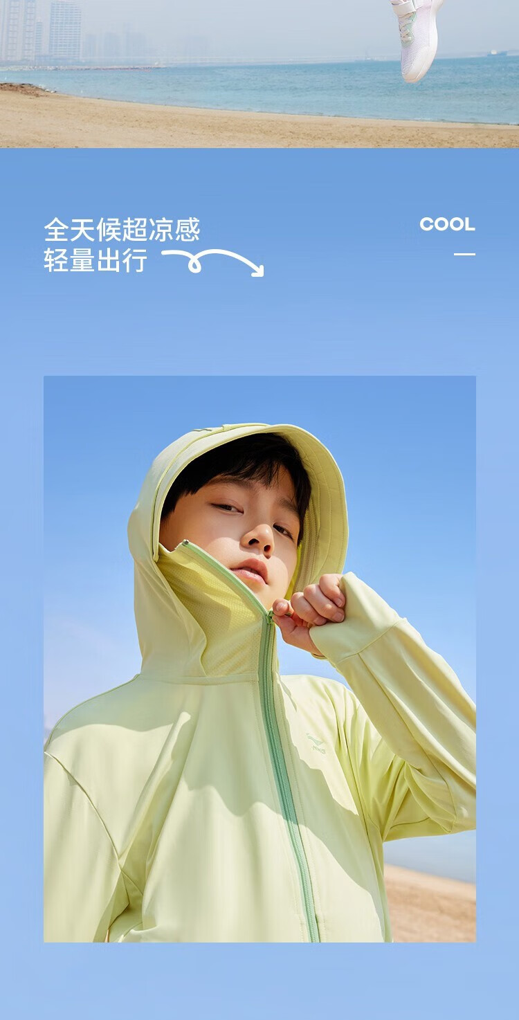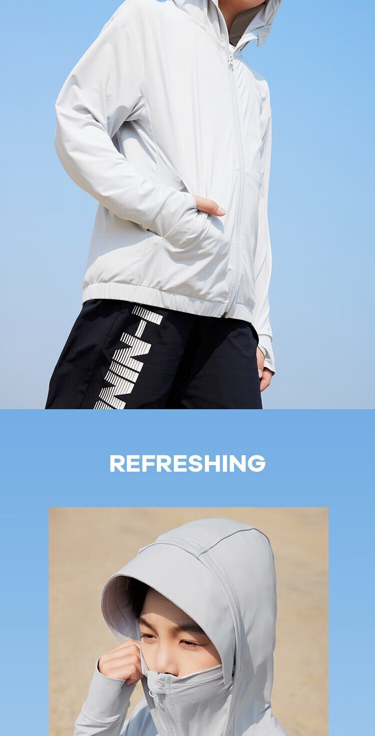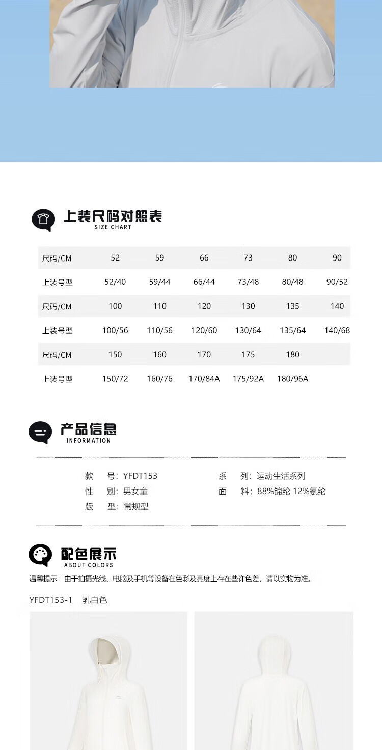 Li Ning (LI-NING) children's clothing, children's skin clothing, summer new sports cardigan, men's and women's hooded lightweight sun protection clothing, milky white-1 120