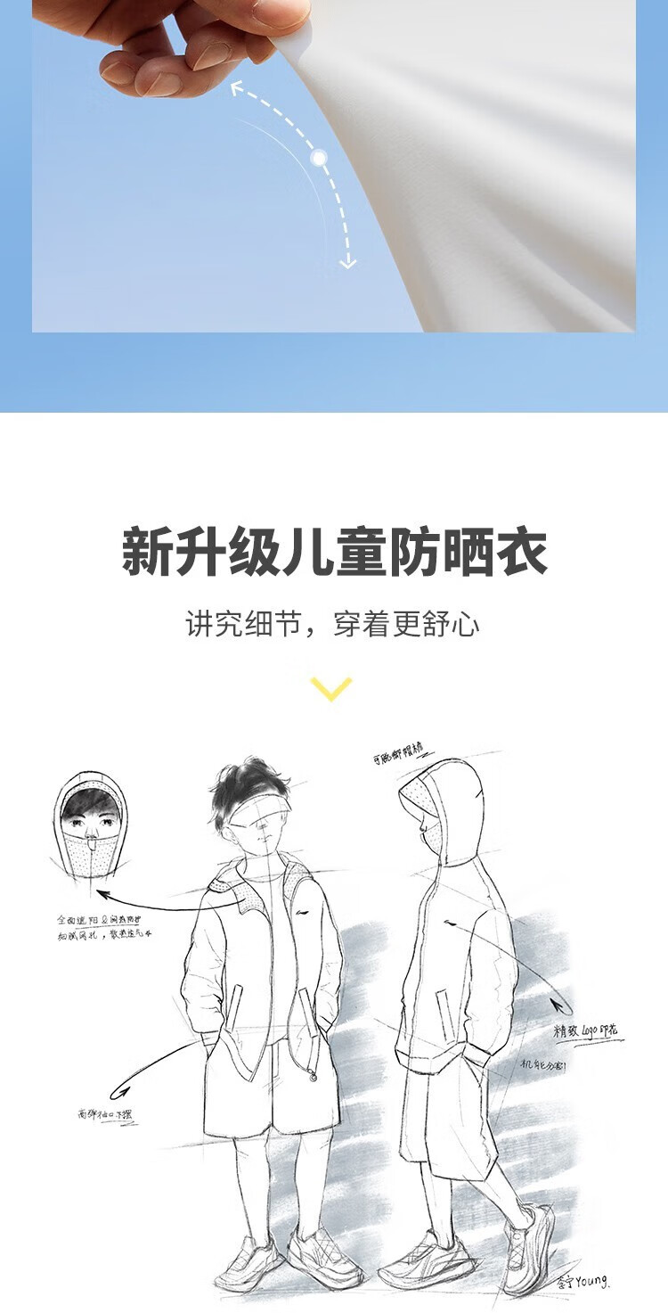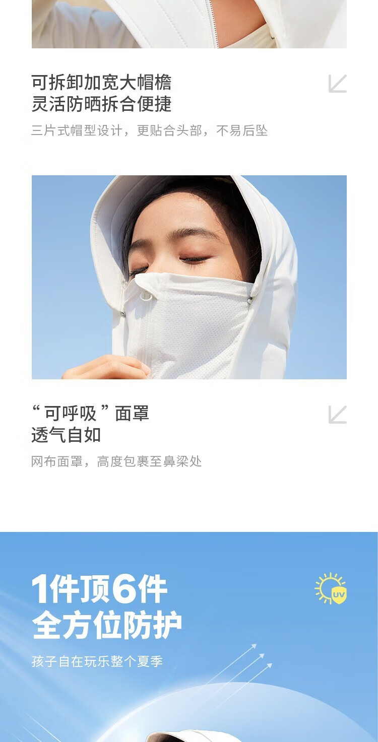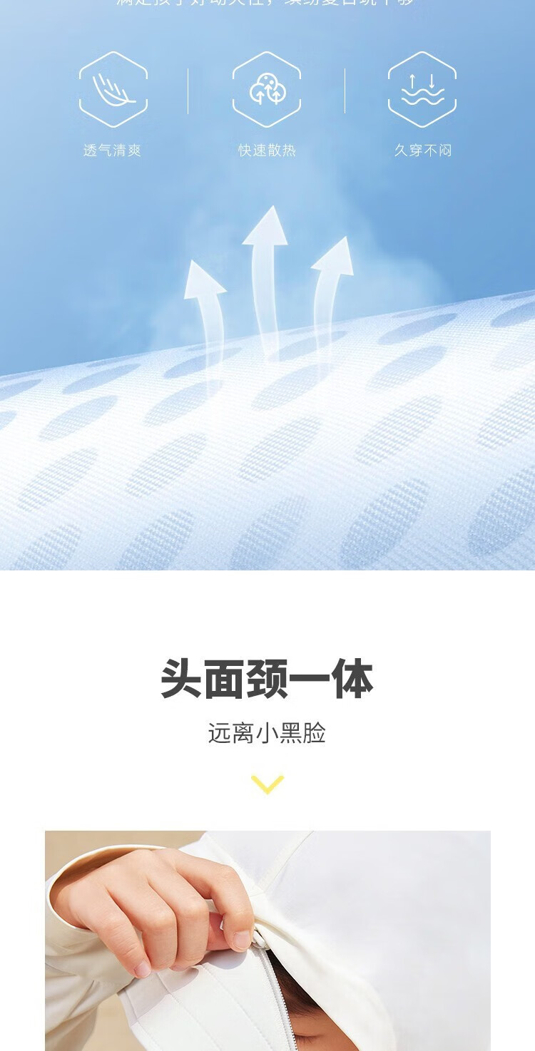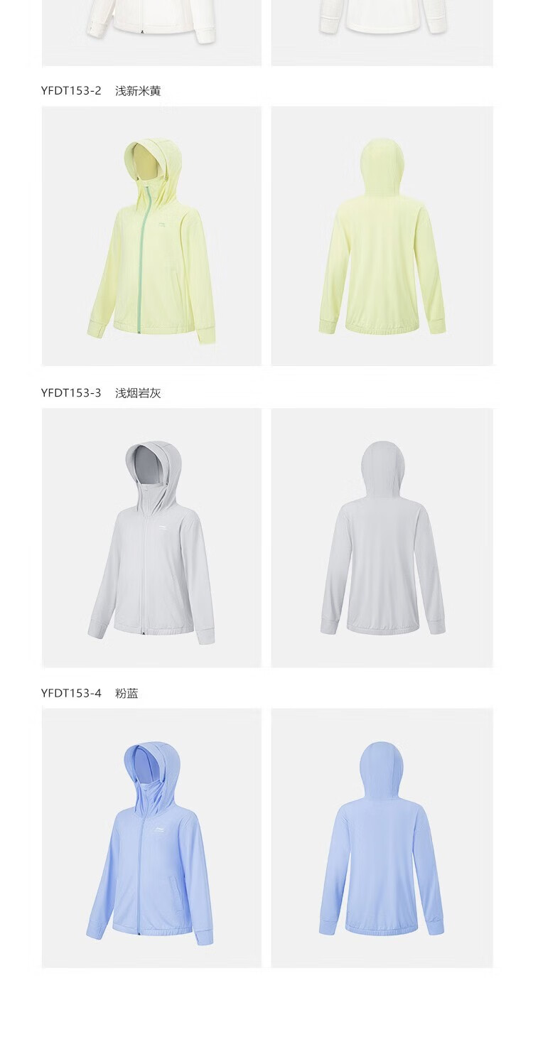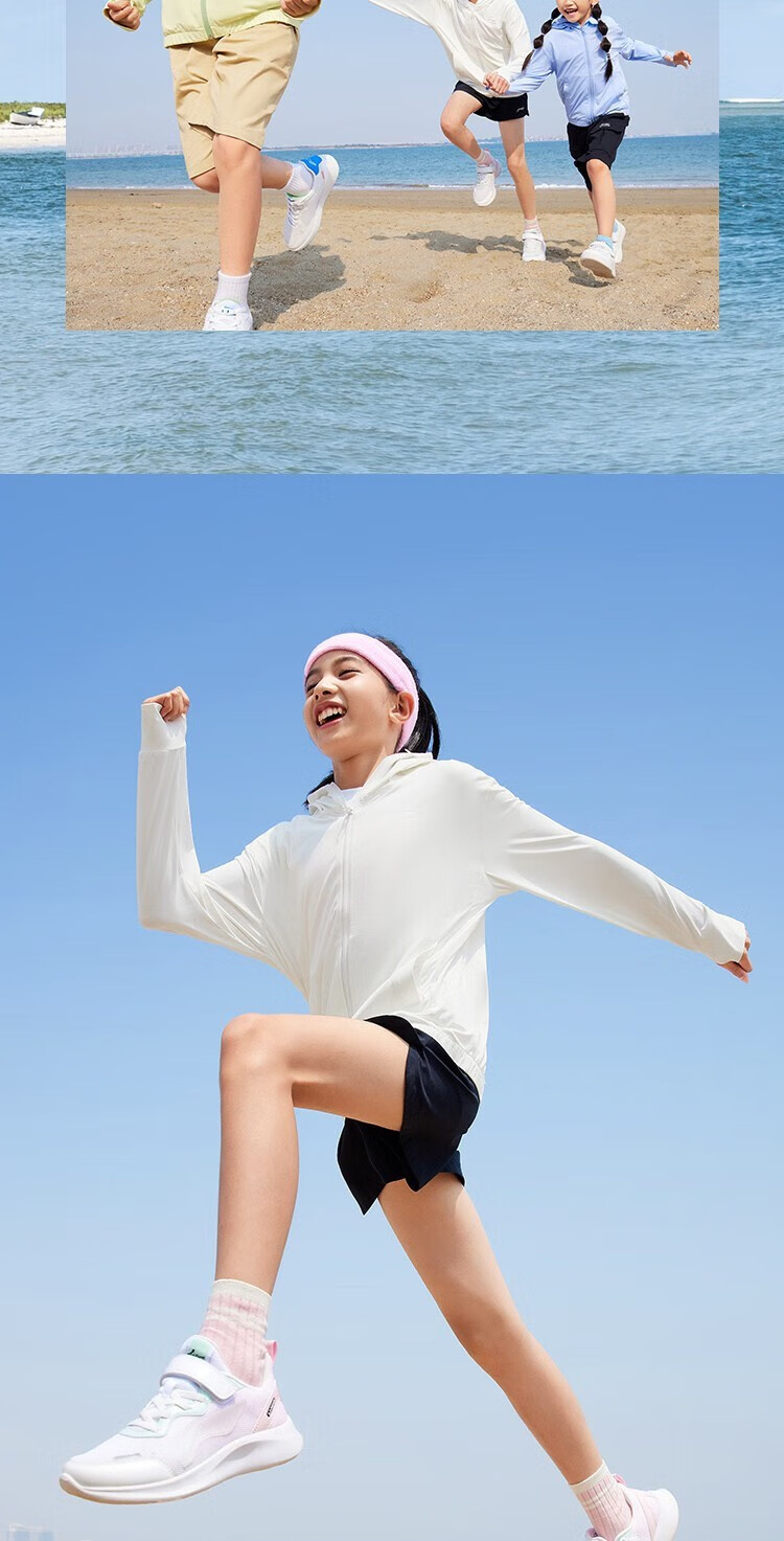 Li Ning (LI-NING) children's clothing, children's skin clothing, summer new sports cardigan, men's and women's hooded lightweight sun protection clothing, milky white-1 120