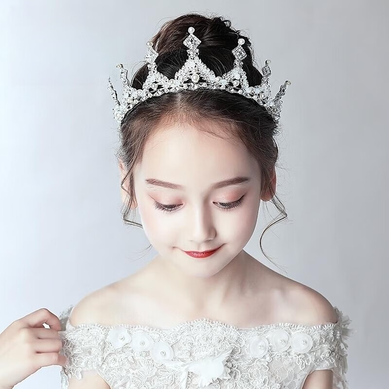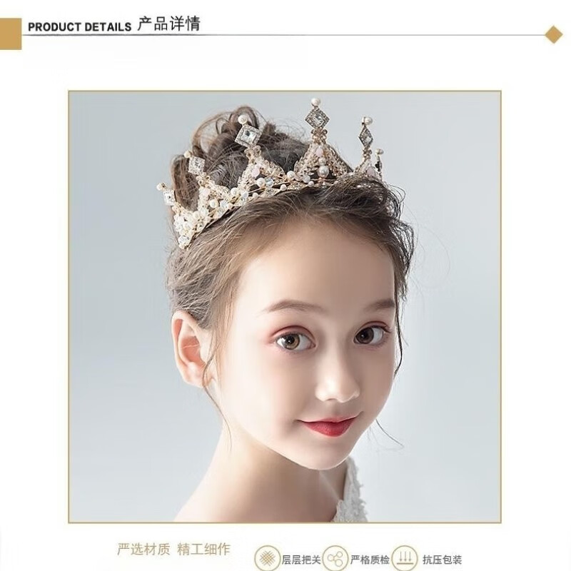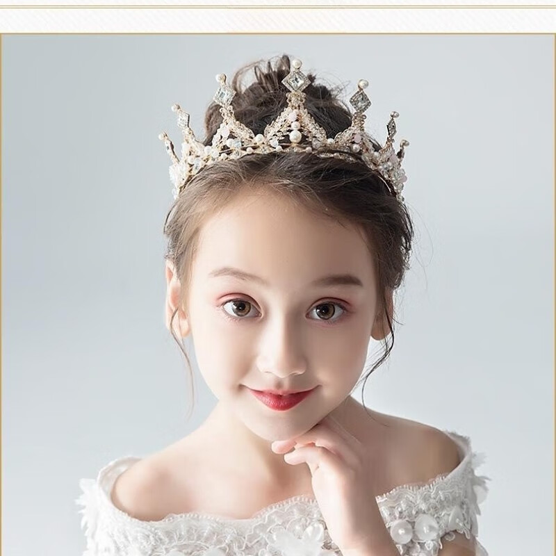 St. Xian Children's Day Performance Birthday Crown Girls Headwear Children's Princess Crown Girls Princess Crown Hair Accessories Headband 1 Golden Pearl Crown
