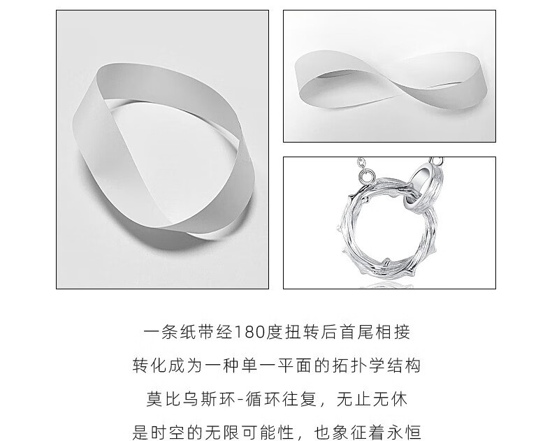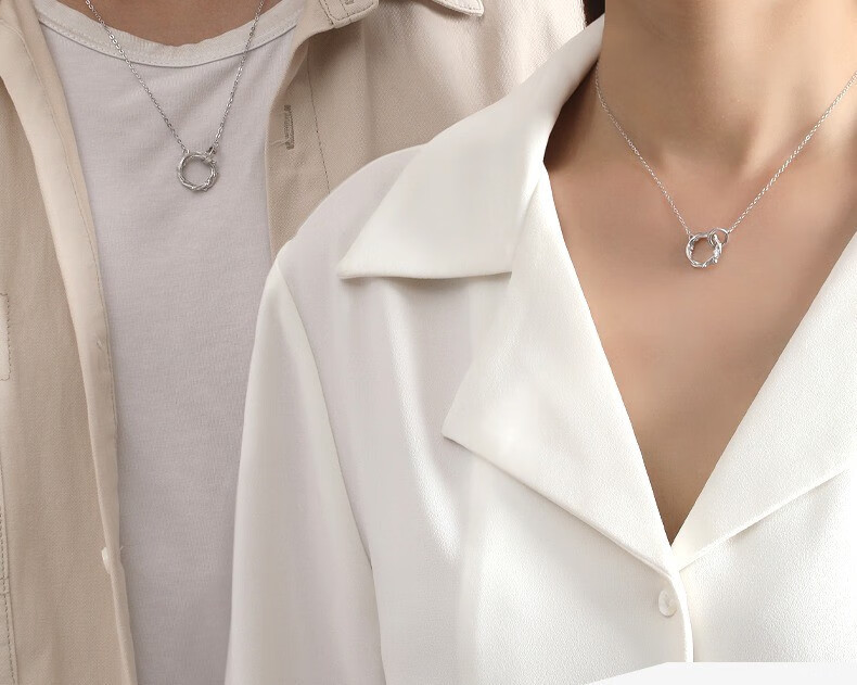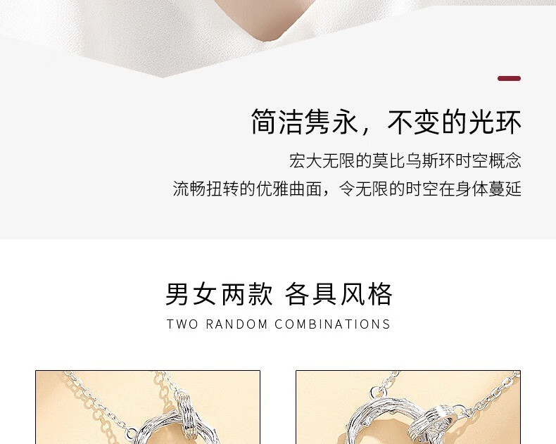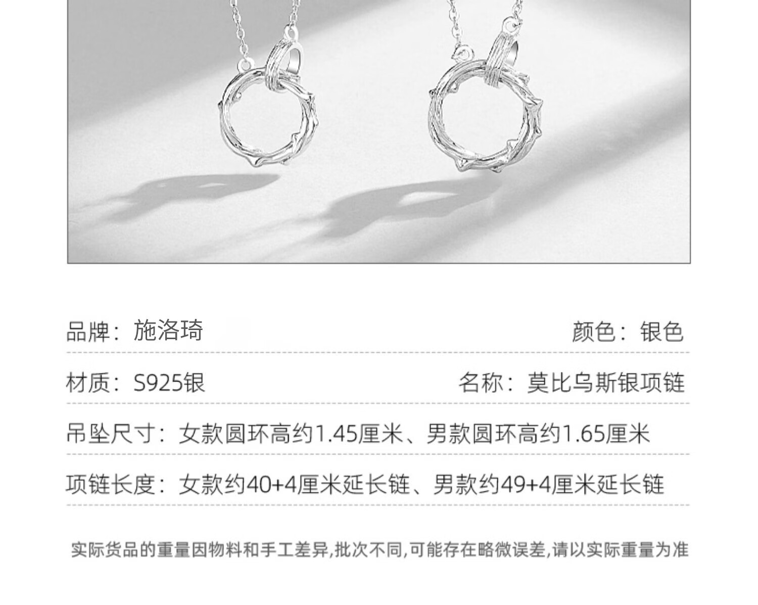 A pair of Möbius strip couple necklaces, S925 silver couple style, high-end, half-engraved commemorative gift for one person, S925 silver, a pair of ring of thorns necklaces, exquisite gift box