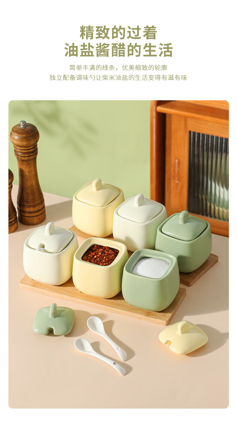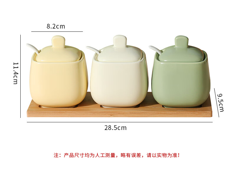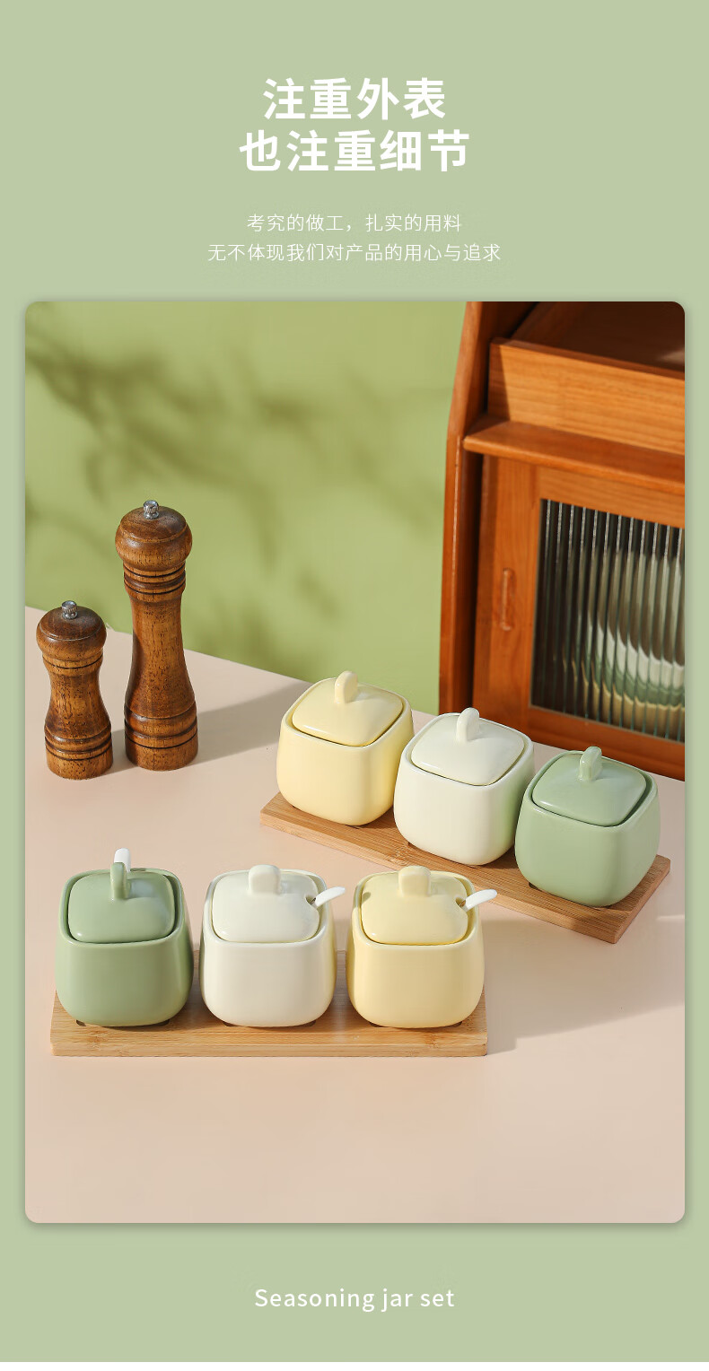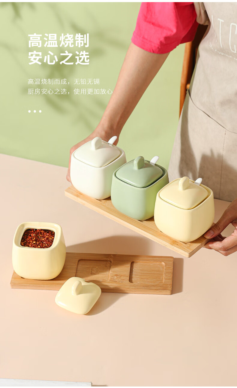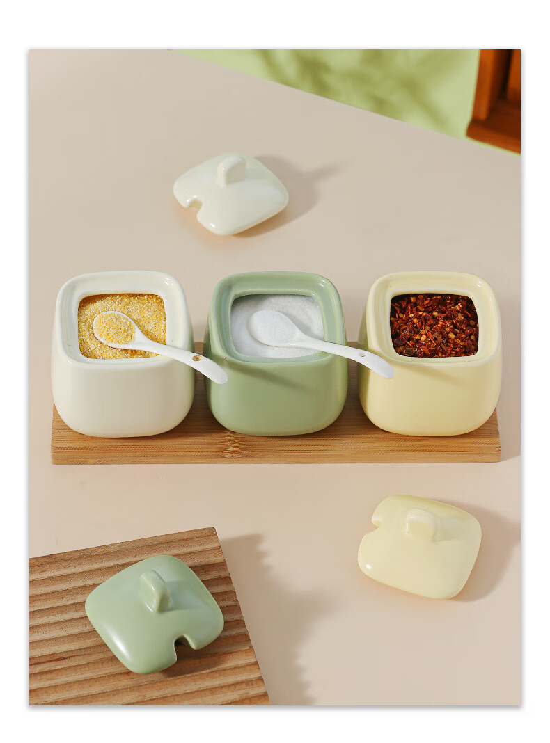 SUMEIJI salt shaker kitchen seasoning jar salt shaker ceramic Japanese seasoning jar combination household seasoning bottle small jar light luxury seasoning box three-color 3-pack seasoning jar tray with spoon