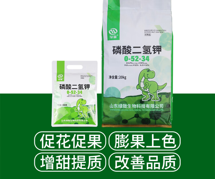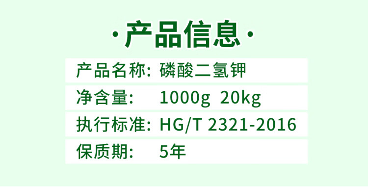 Greenlong Potassium Dihydrogen Phosphate Foliar Fertilizer Flower Fertilizer Rice Fruit Tree Promotes Flowering and Fruit Agricultural Universal Phosphorus-Potassium Fertilizer Instant Type 20kg*1 Big Bag