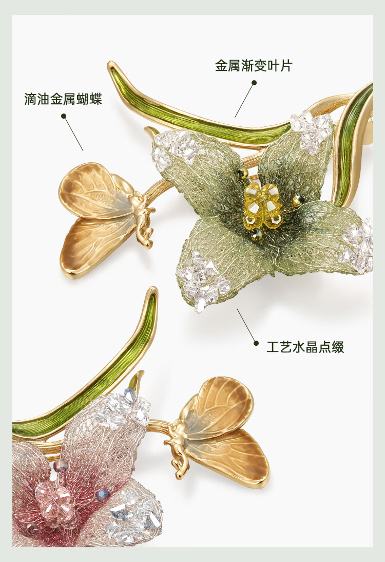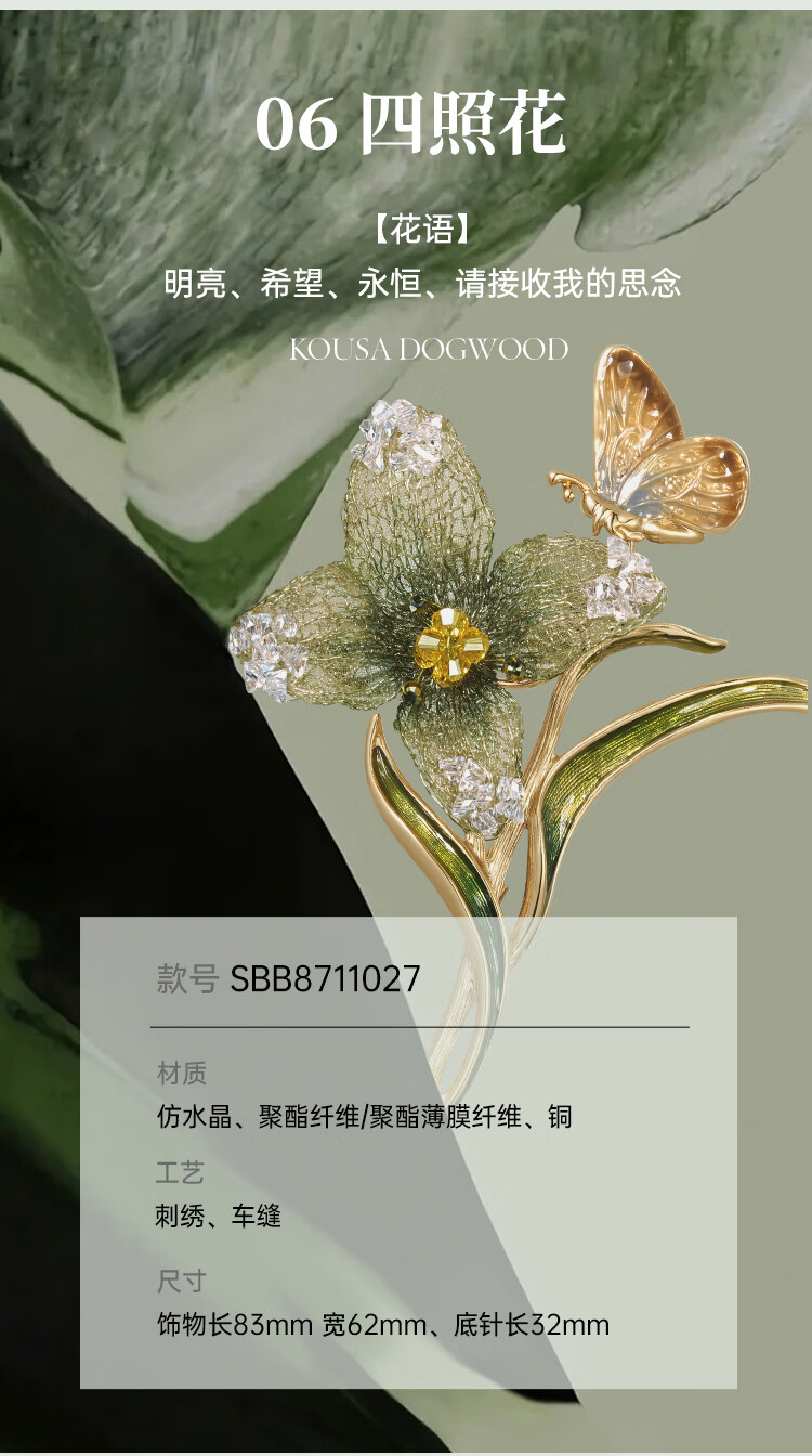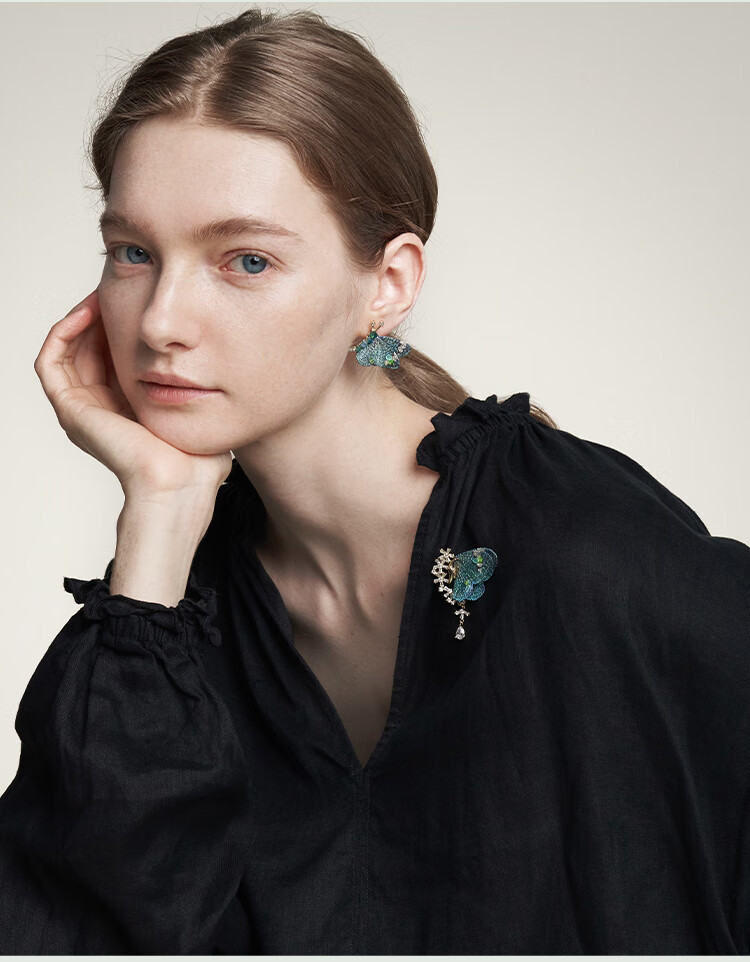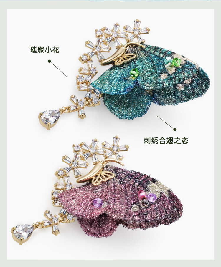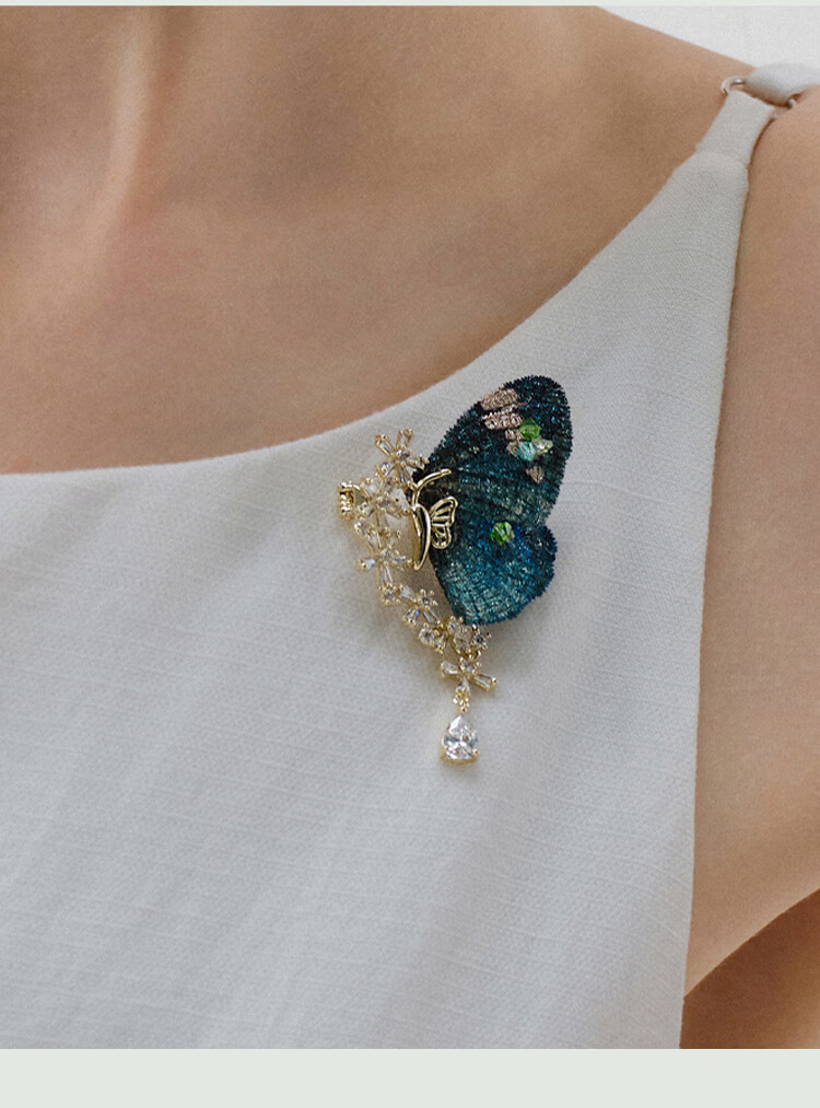 She s Qianzi celebrity style embroidered butterfly brooch high-end exquisite corsage pin silk scarf buckle birthday gift for women dark blue dark green SBB8701232C0
