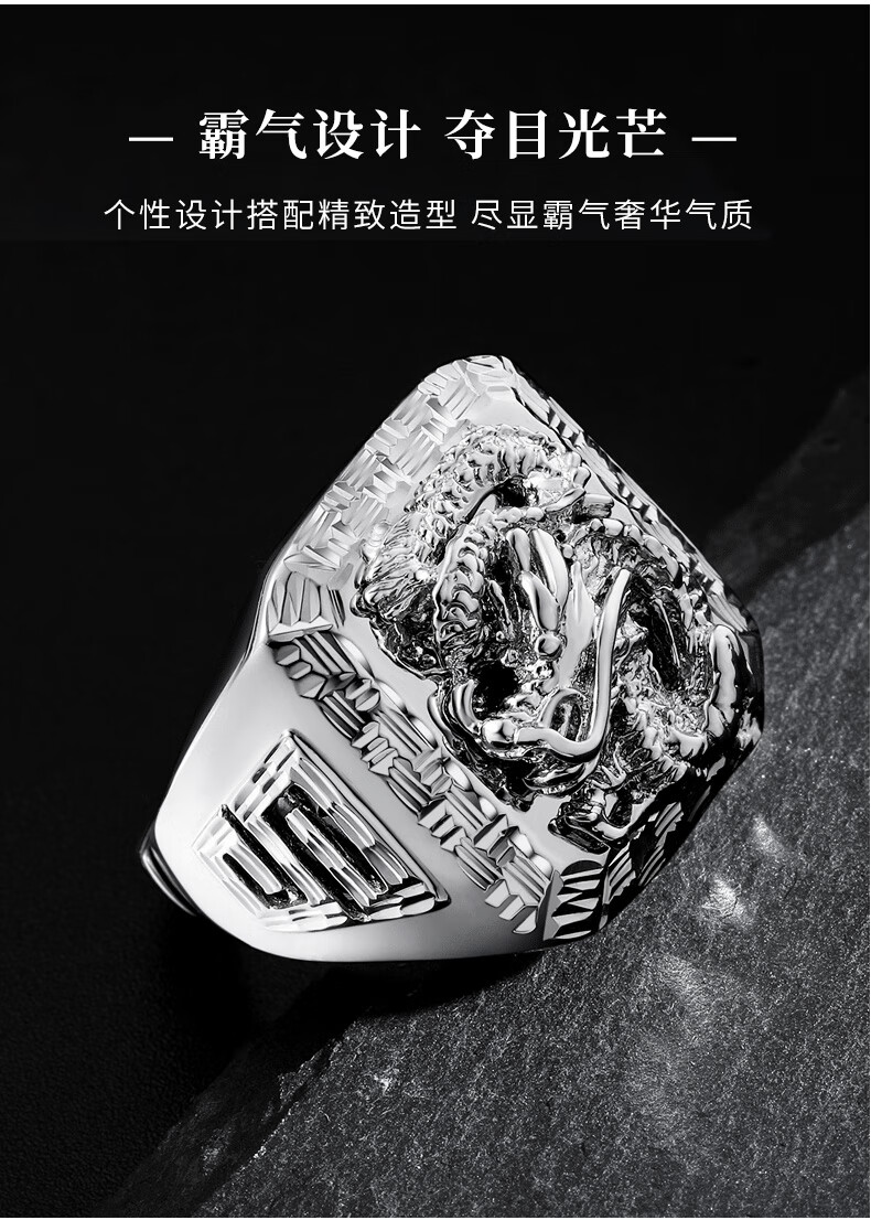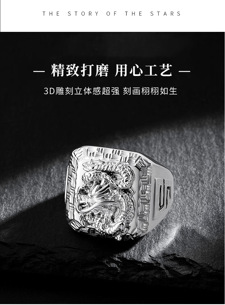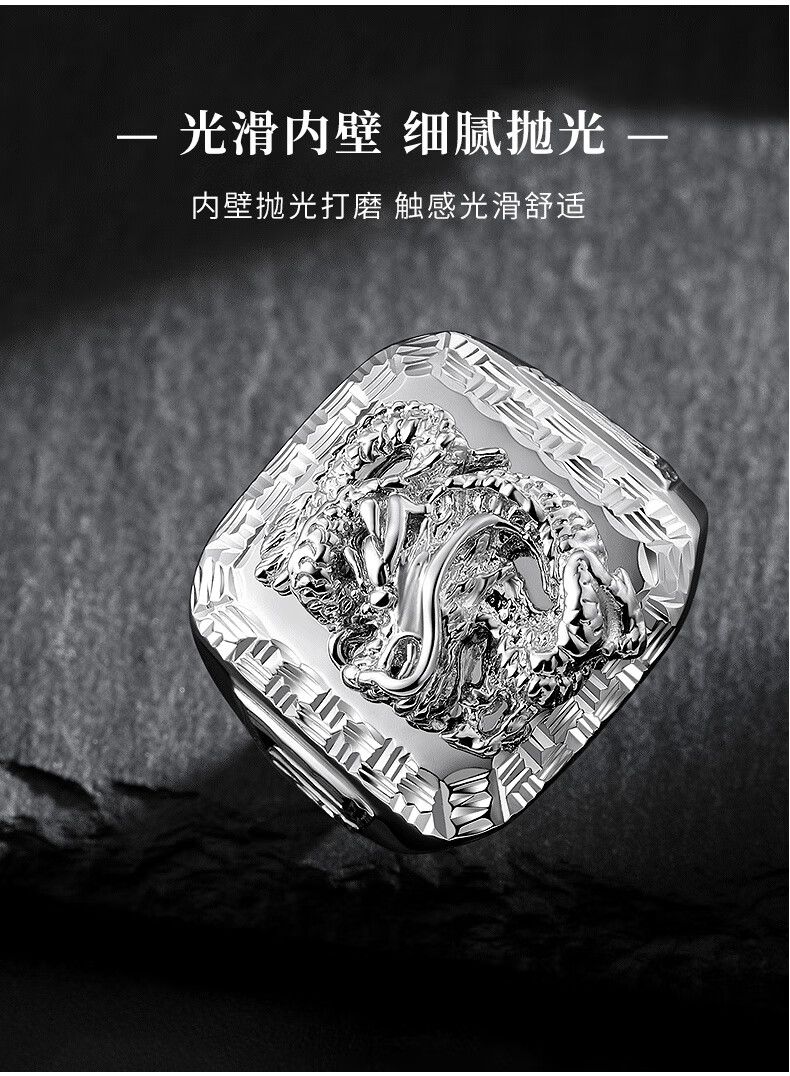 Miss JuJu platinum dragon ring men's pt950 atmospheric platinum solid wide face thick ring live adjustable style in stock weighing 24.98 grams