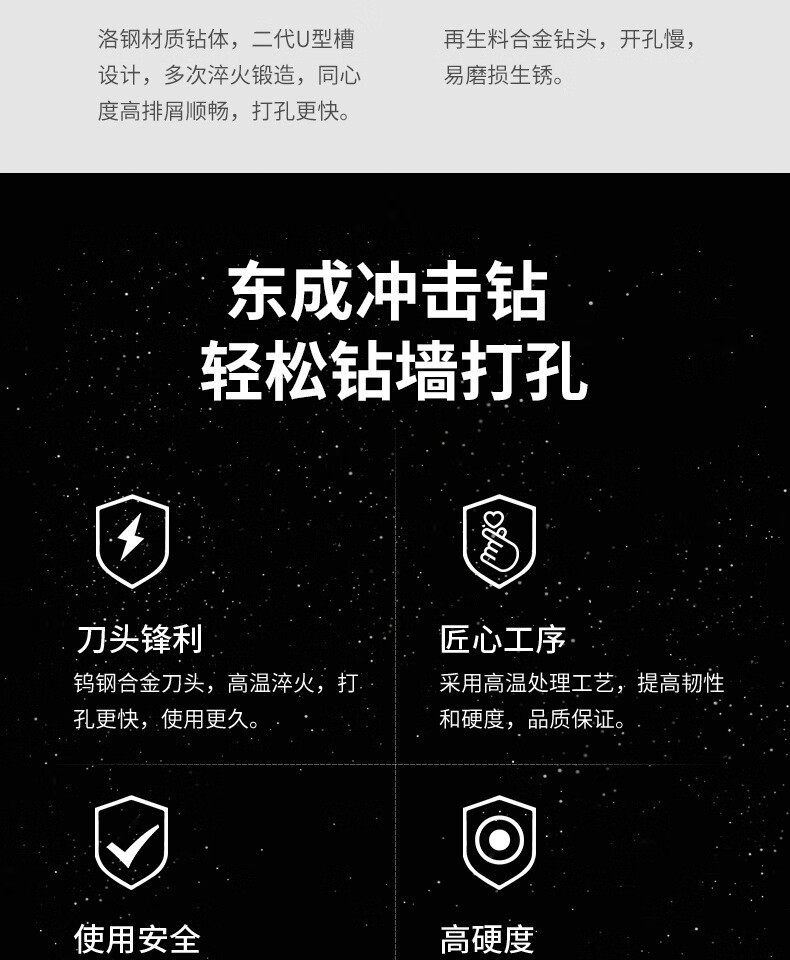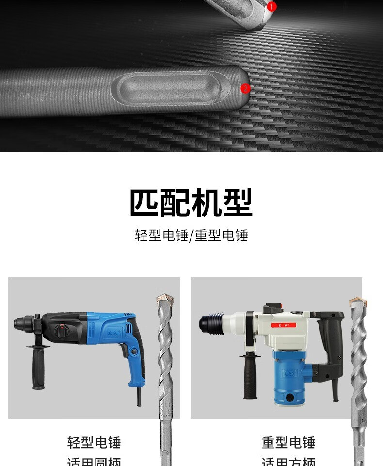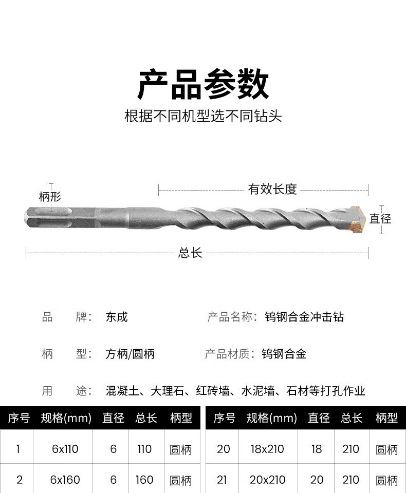 Dongcheng impact electric hammer drill bit round handle square handle four-pit concrete drilling alloy drill bit through wall impact drill bit round 6-length 160mm