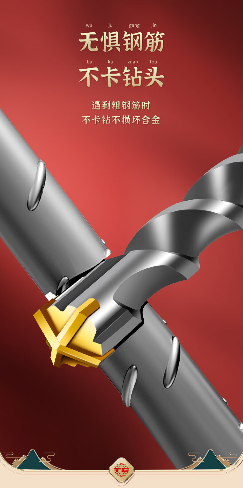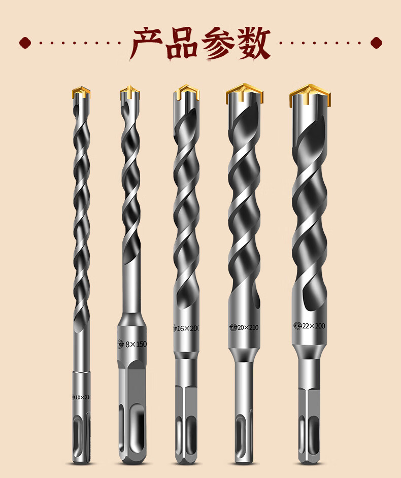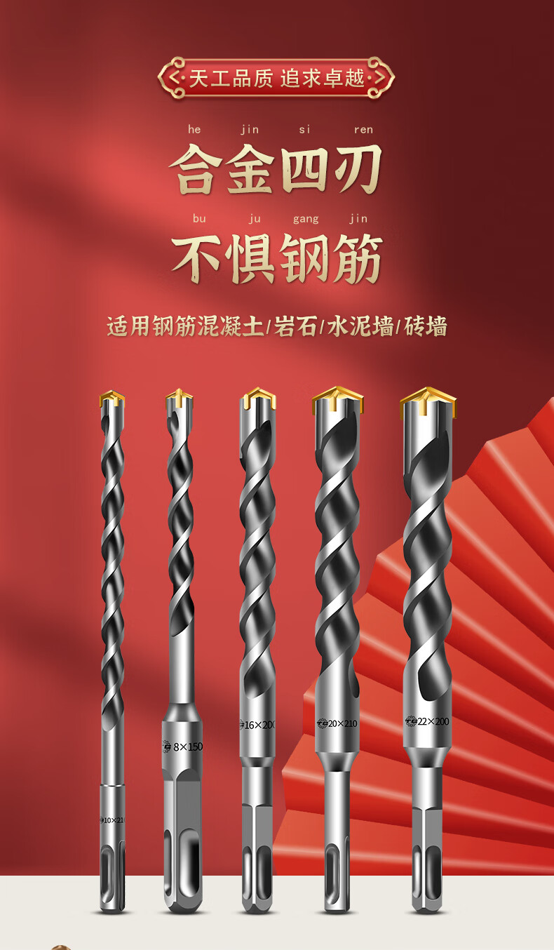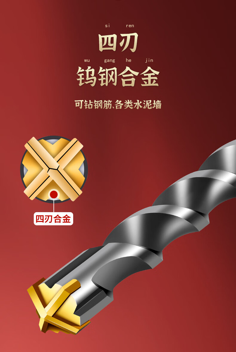TIANGONG cross impact drill bit high hardness electric hammer for concrete hand electric drill drill tip steel bar universal drilling drill bit 6x110 round shank