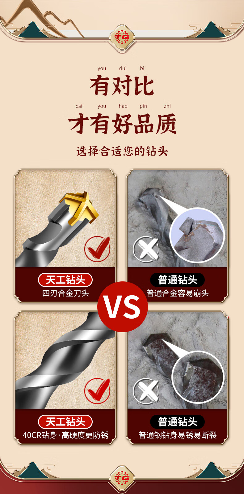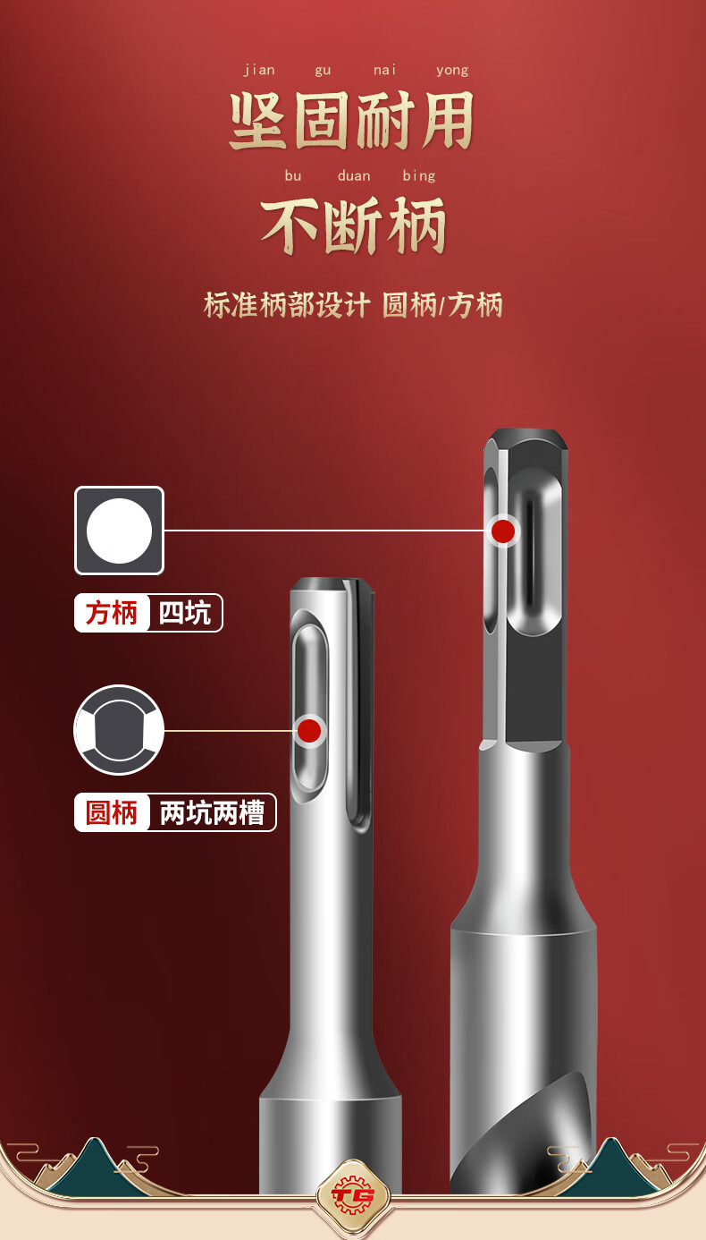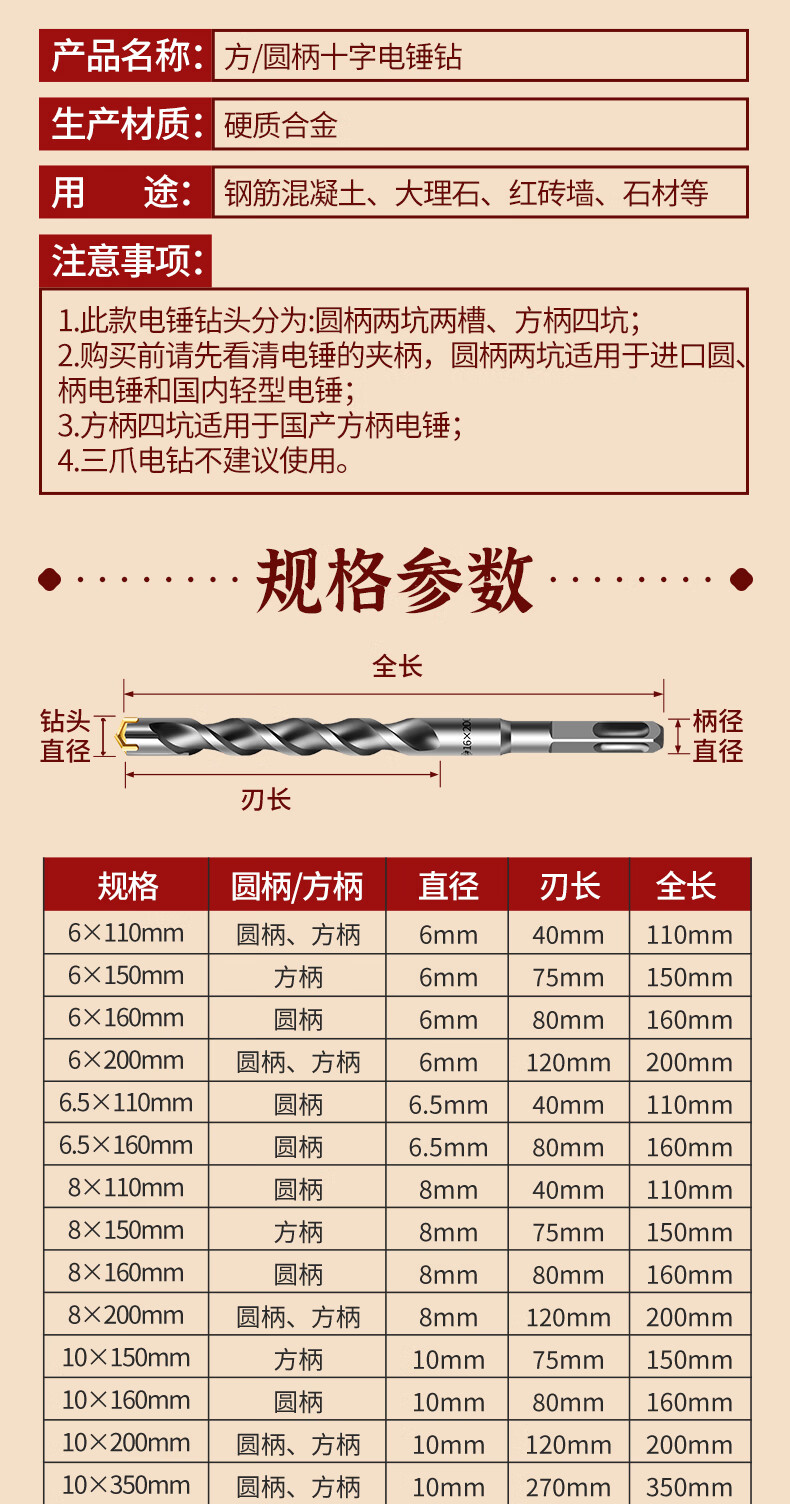 TIANGONG cross impact drill bit high hardness electric hammer for concrete hand electric drill drill tip steel bar universal drilling drill bit 6x110 round shank